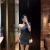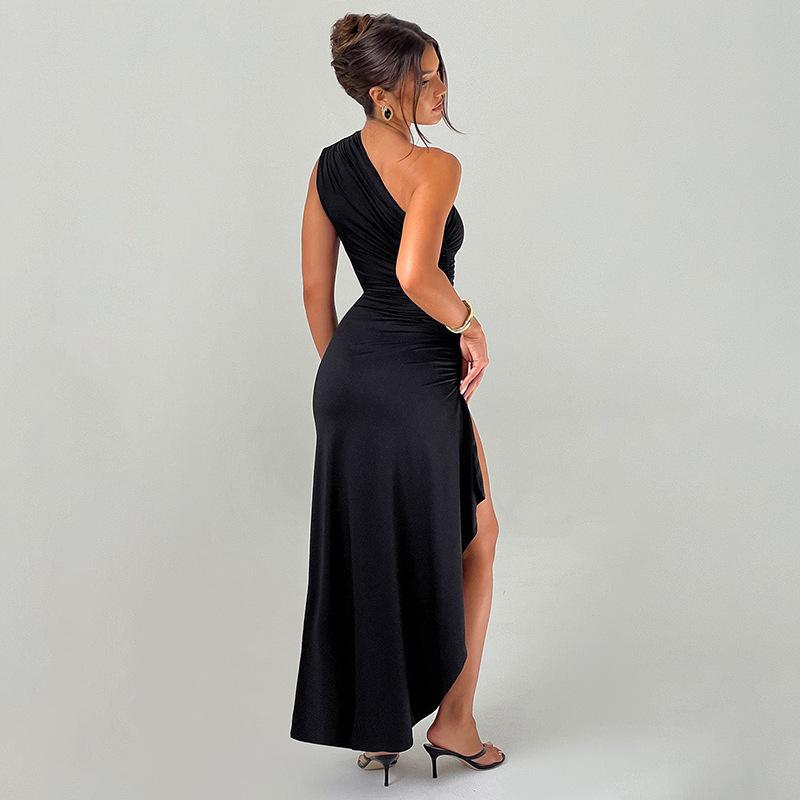 Vestido elegante y sexy con hombros descubiertos, plisado, elástico y sin mangas, para mujer, verano 2024