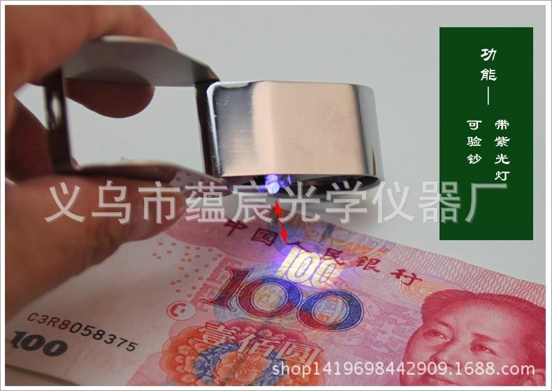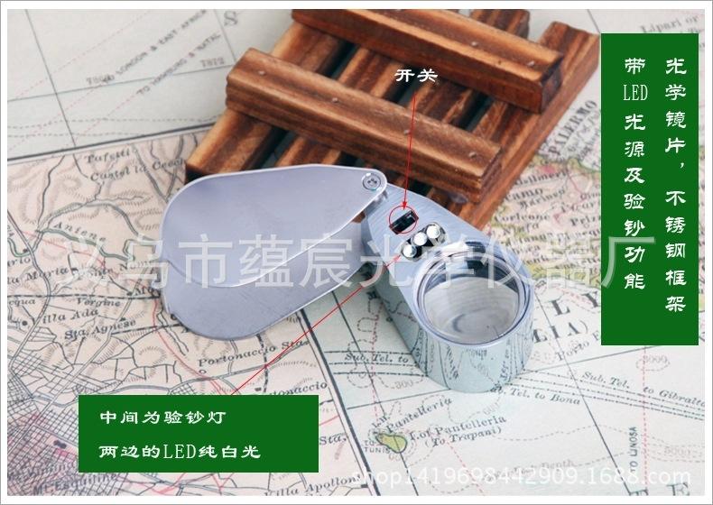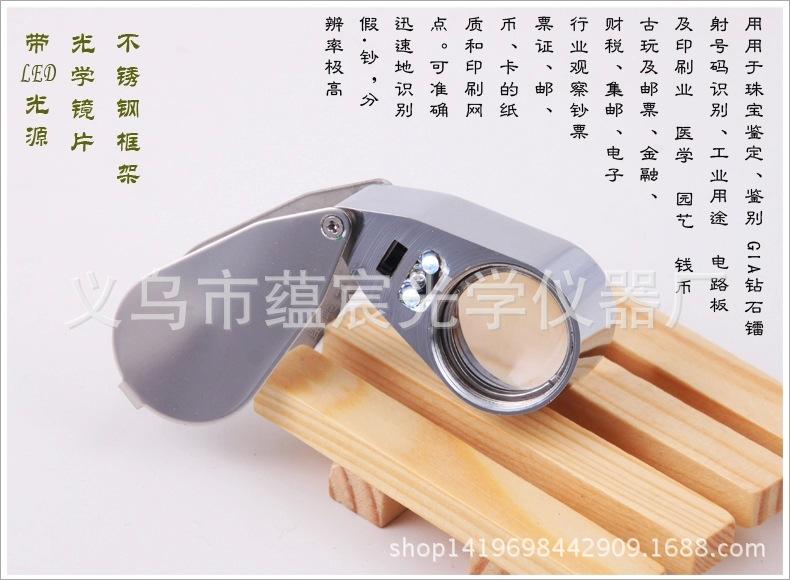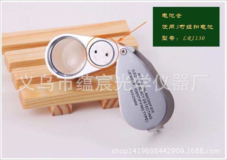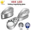 Lupa Metálica de 40 Aumentos 25 mm LED Plegable Identificación Joyería Lupa con Luz UV 9890