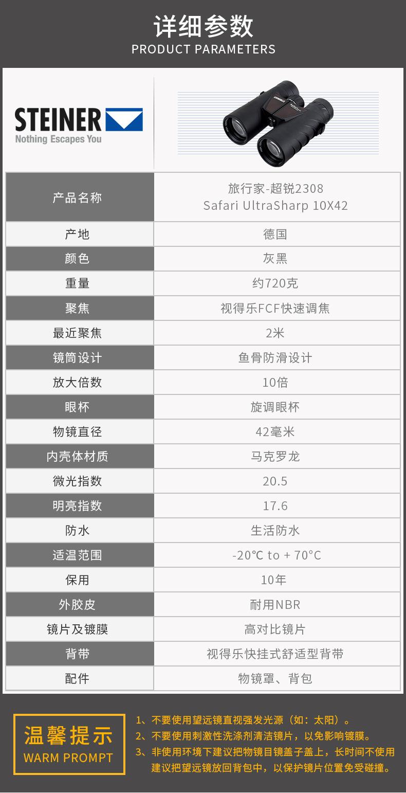 Visión alemana STEINER telescopio de 10 aumentos alta potencia HD 10X42 enfoque rápido camping al aire libre 2308