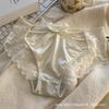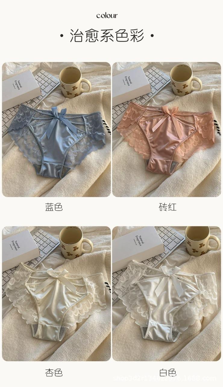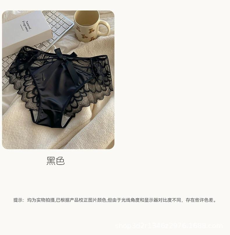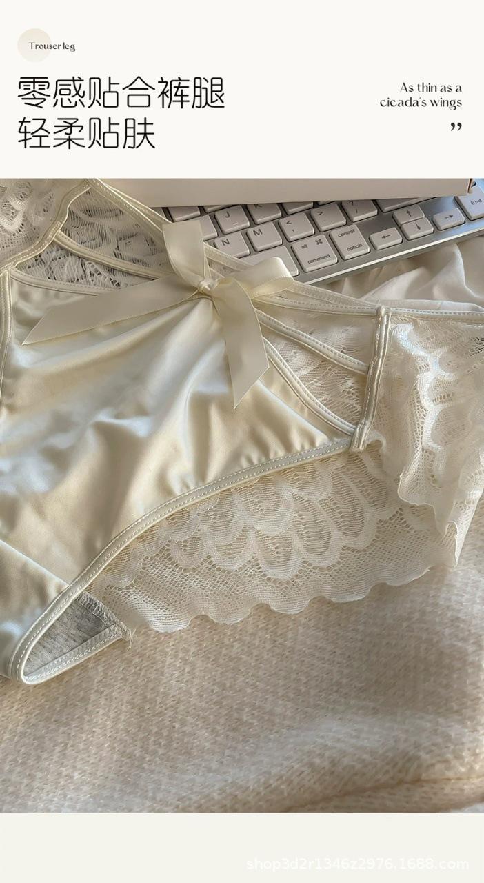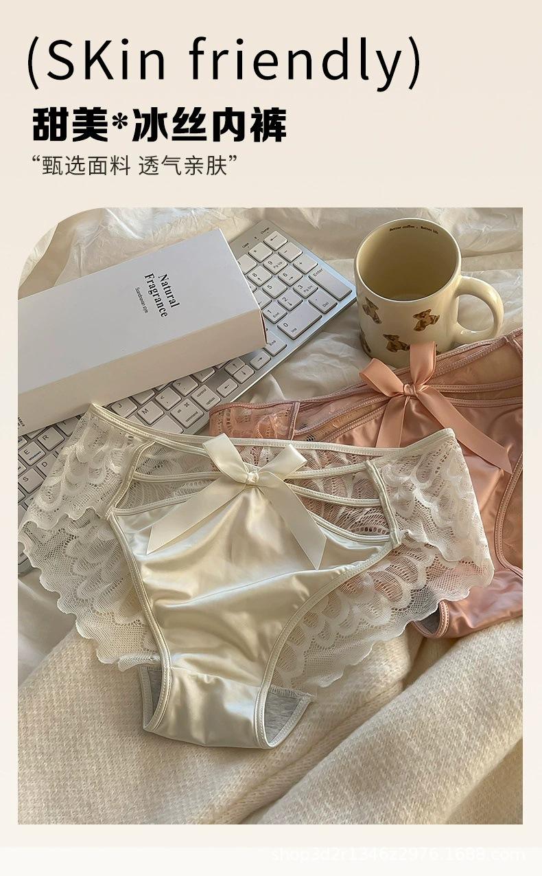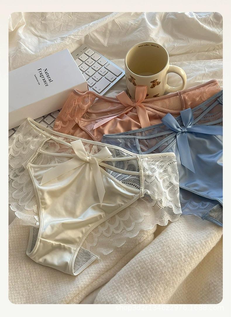 Ropa interior sexy de encaje con lazo y tirantes cruzados para mujer, de algodón puro, con entrepierna baja, transpirable, estilo puro