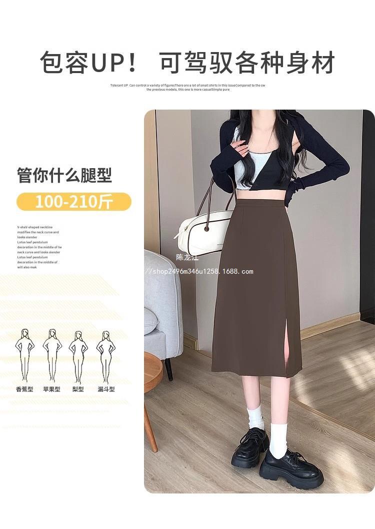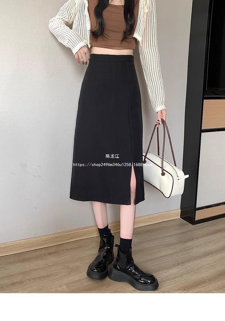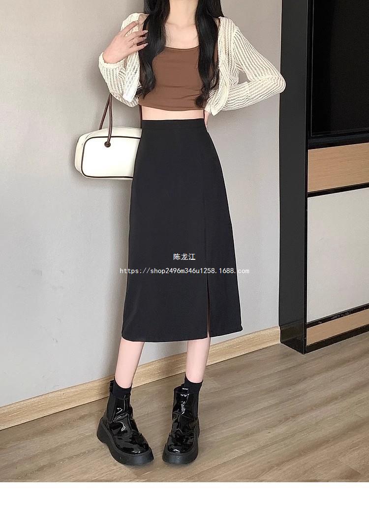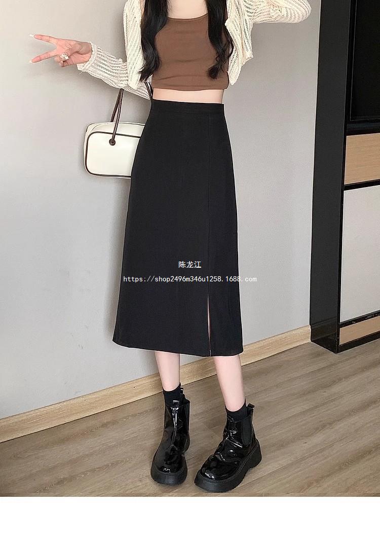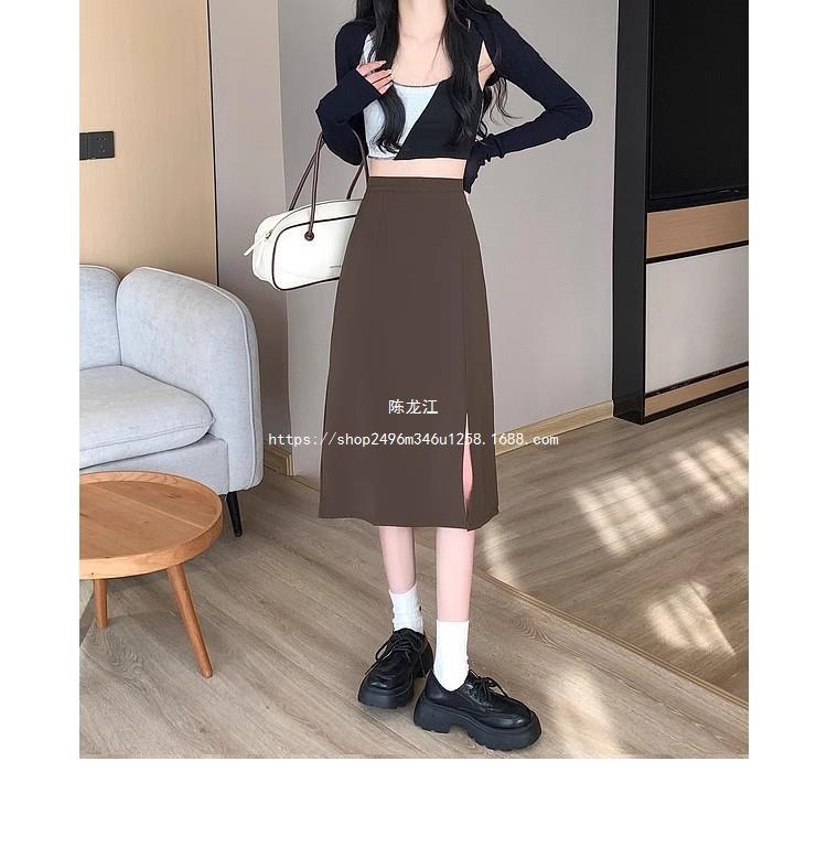 Falda de verano 2024 de longitud media hasta la cadera, falda de un solo paso, nueva falda de línea A, falda dividida de cintura alta para mujer