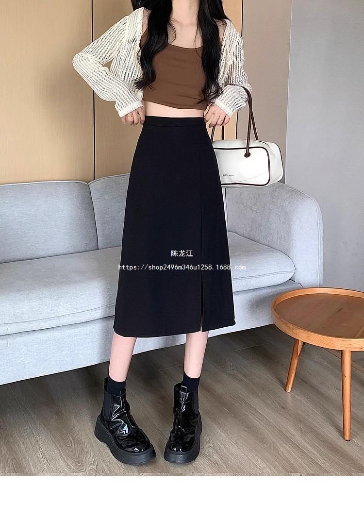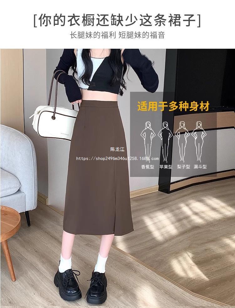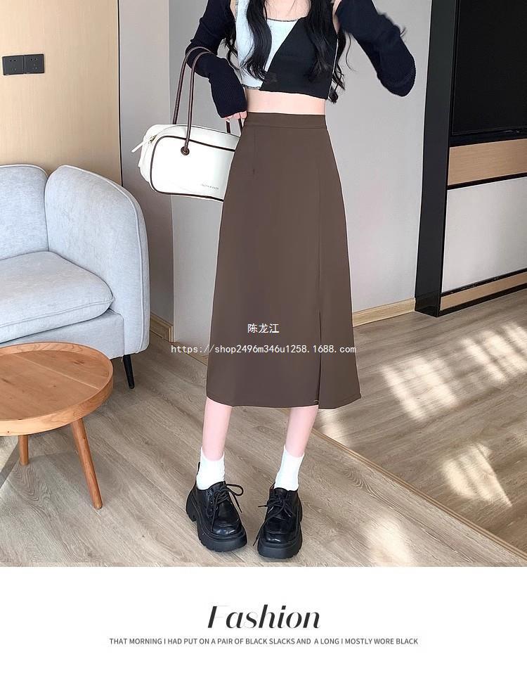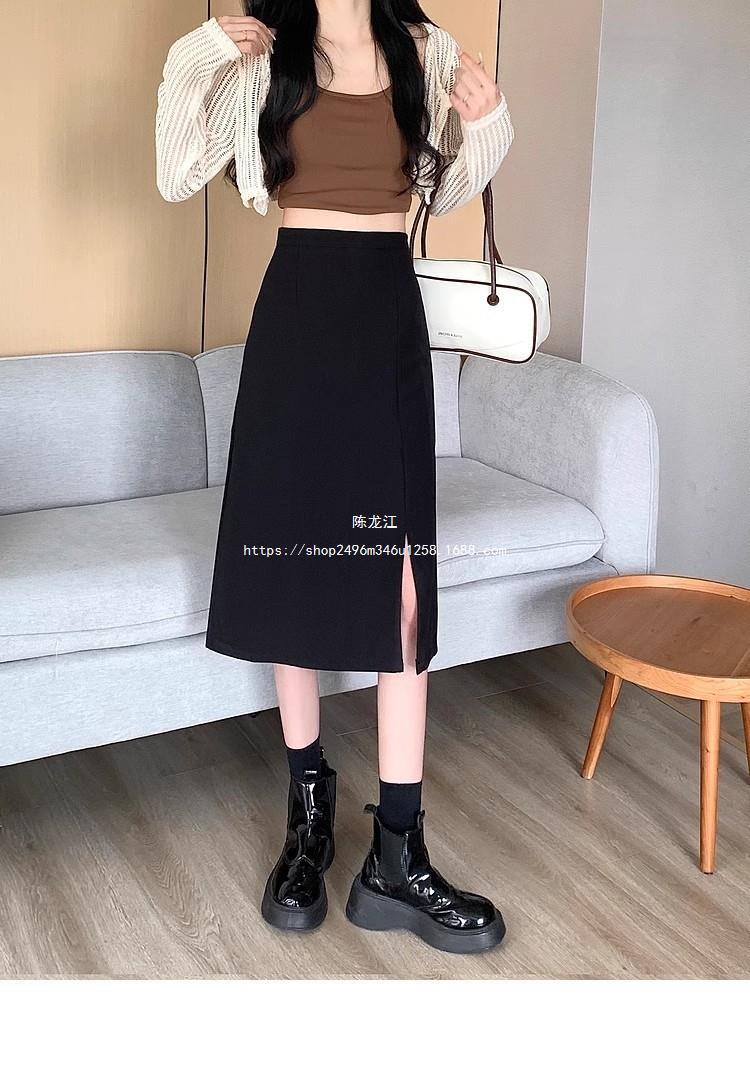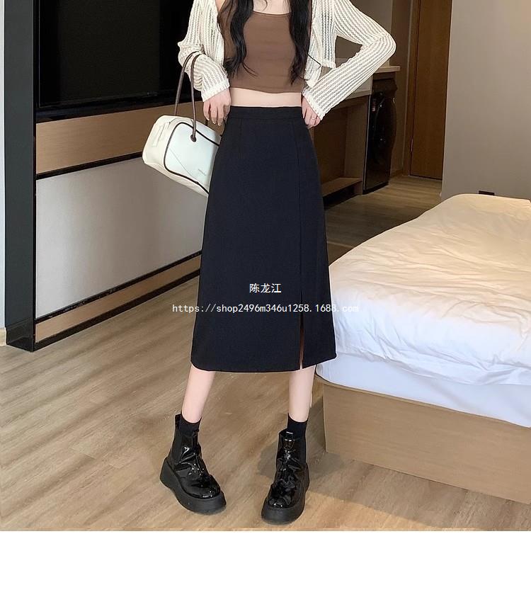 Falda de verano 2024 de longitud media hasta la cadera, falda de un solo paso, nueva falda de línea A, falda dividida de cintura alta para mujer
