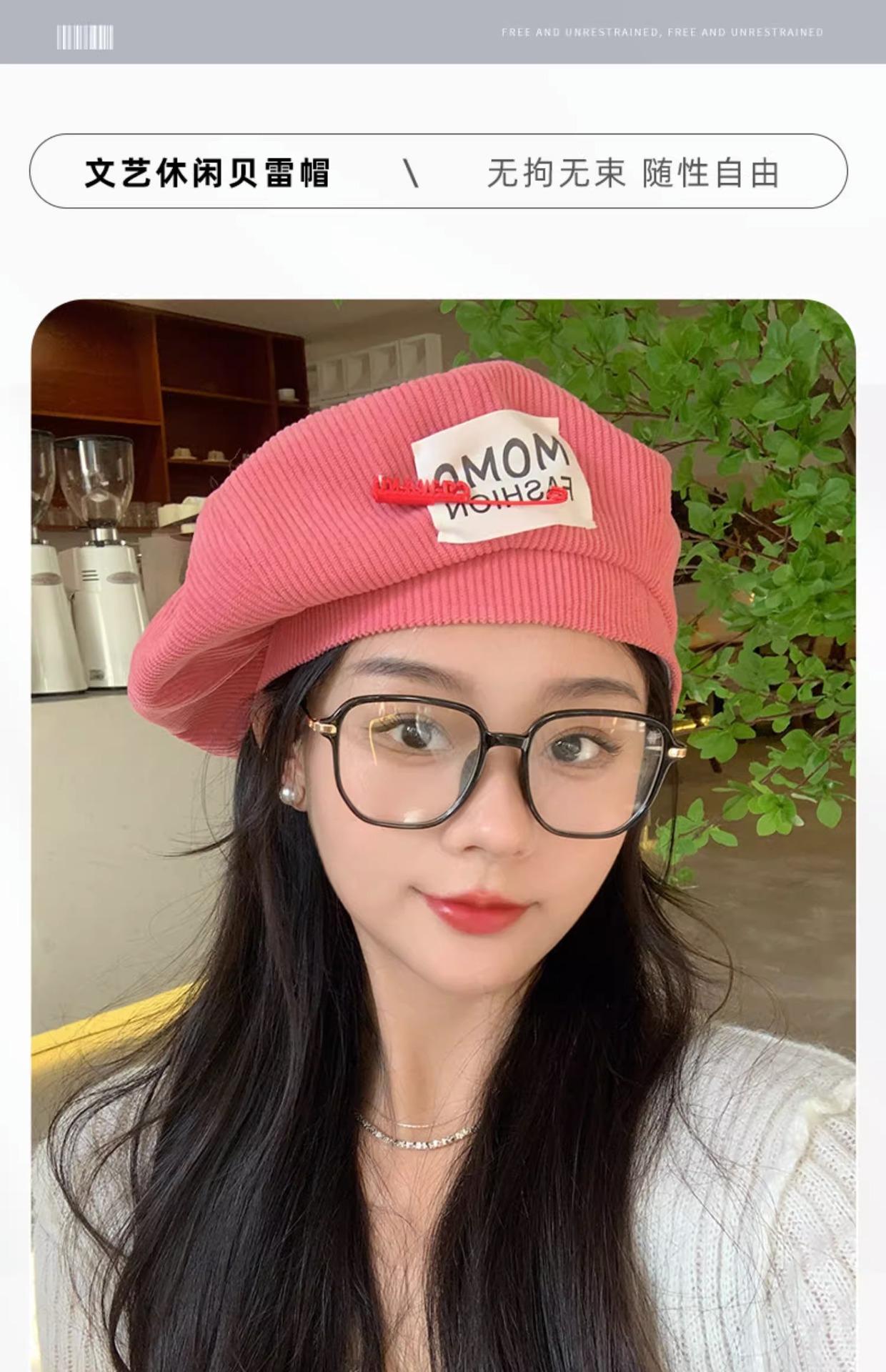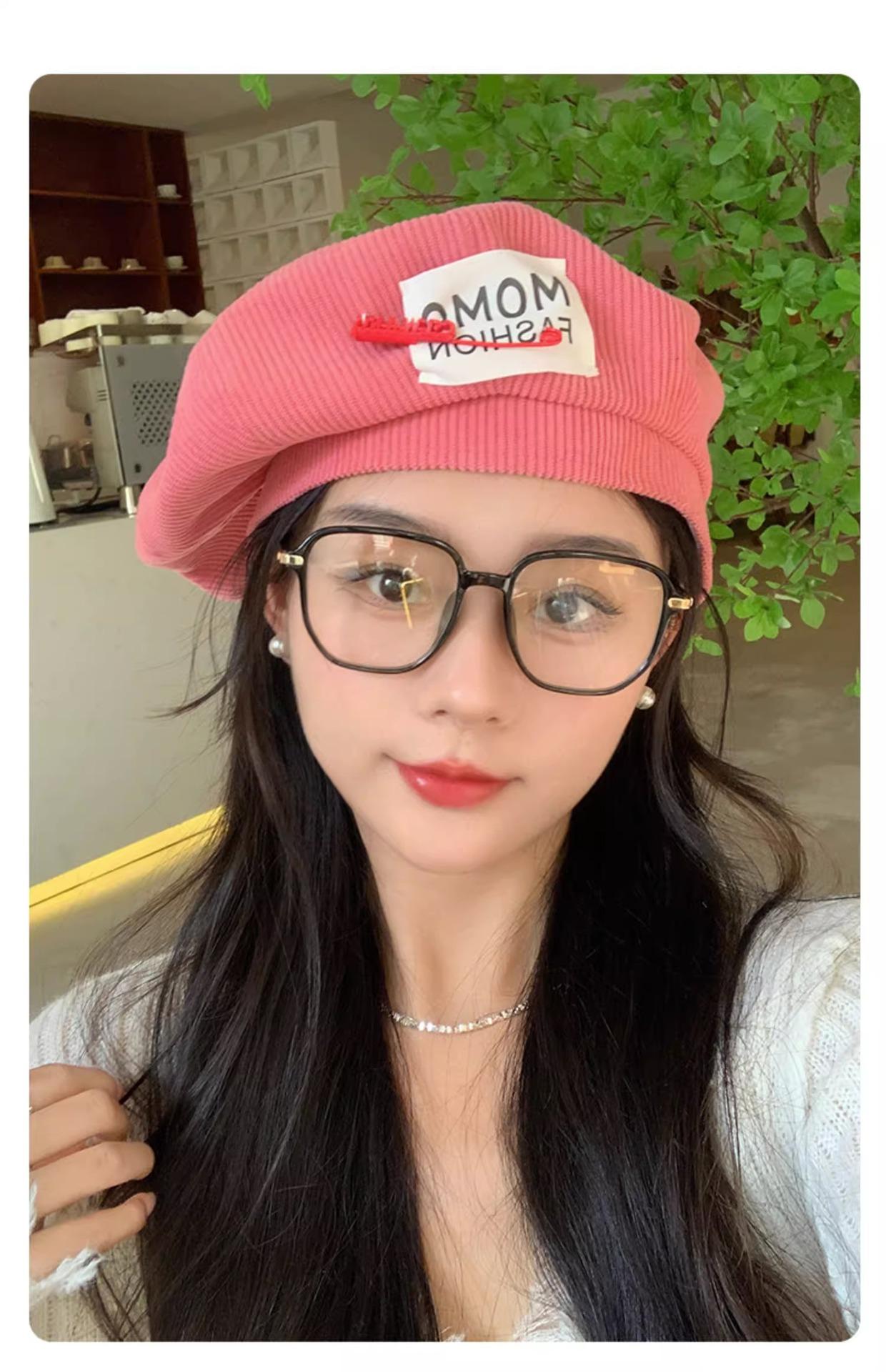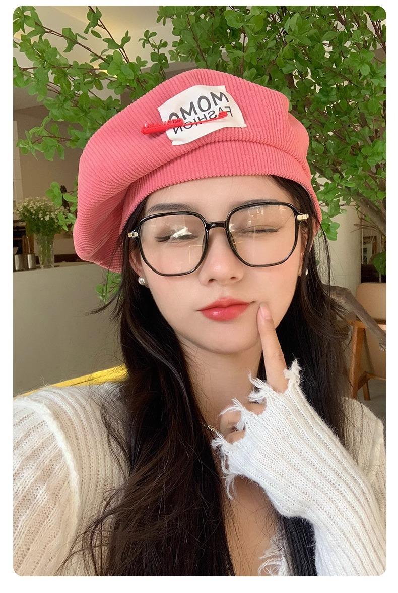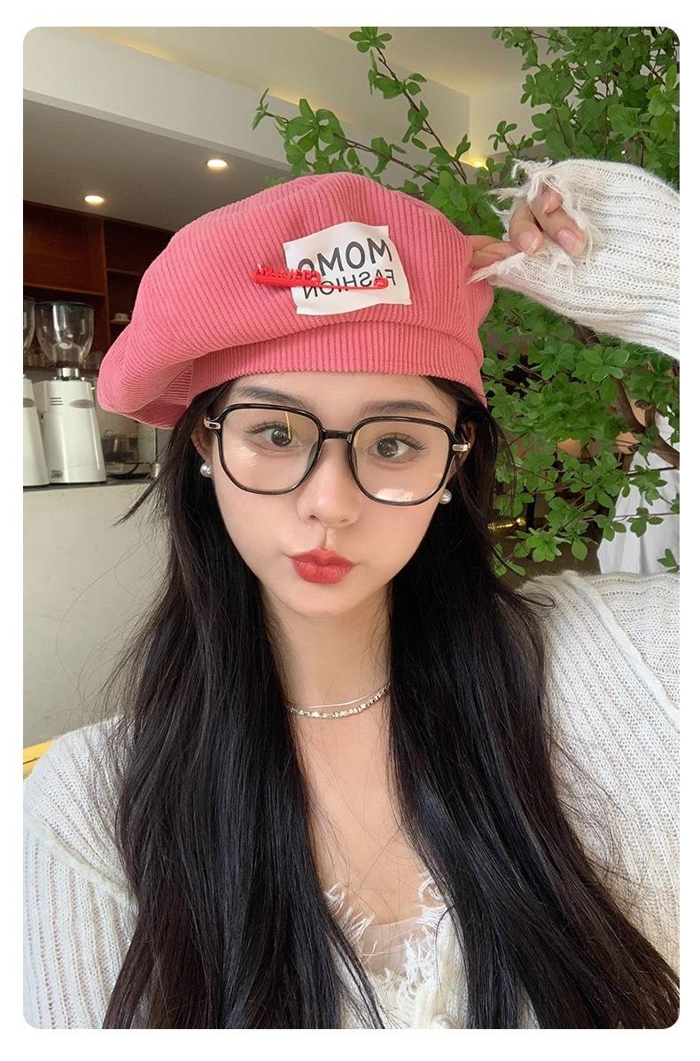 Boina pequeña versátil con parche de letras estilo ins coreano que realza el rostro para mujer, primavera y otoño, temperamento británico, pintor, sombrero octogonal de moda