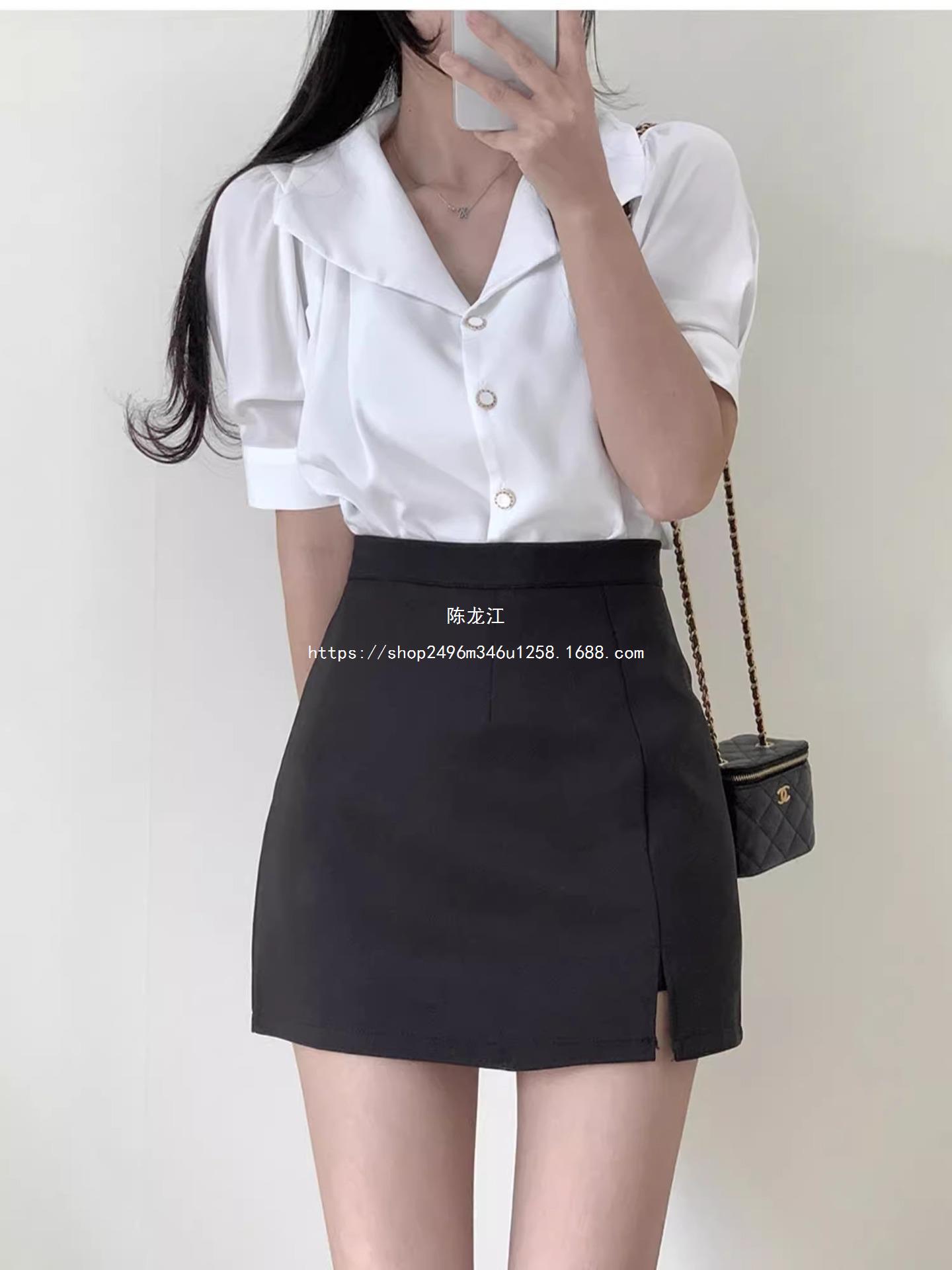Falda Profesional Moldeadora de Cintura Alta 2024 Falda de Cadera Falda Media Longitud Falda Negra Vestido de Color Sólido Falda Clásica para Mujer