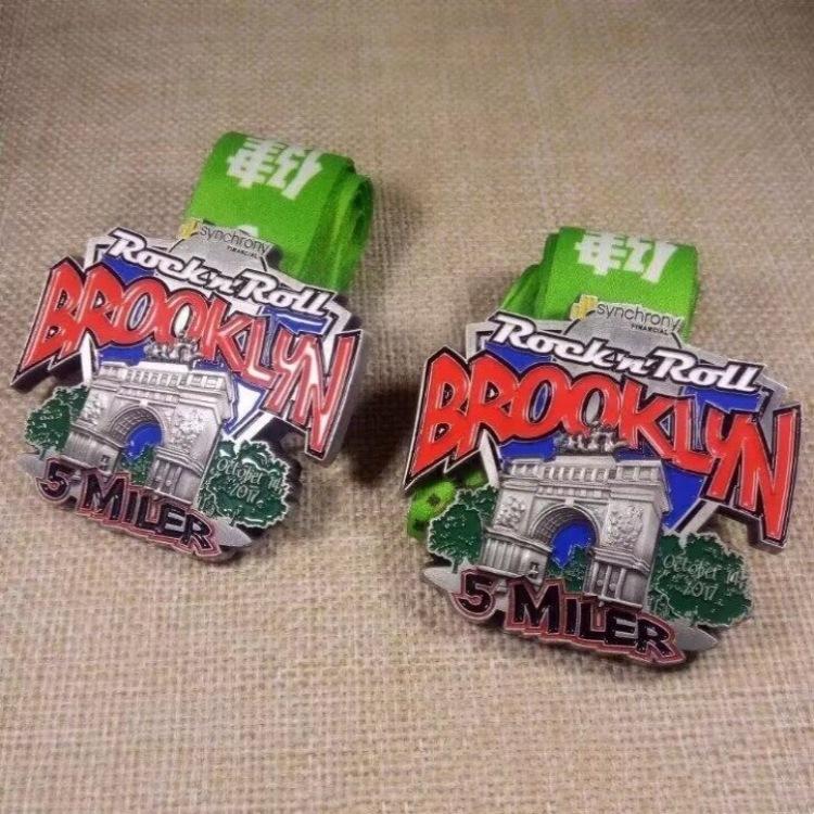 Producción de fábrica medalla de competición de letras huecas bronce vintage medalla con aceite de gota cinta de coser medalla deportiva