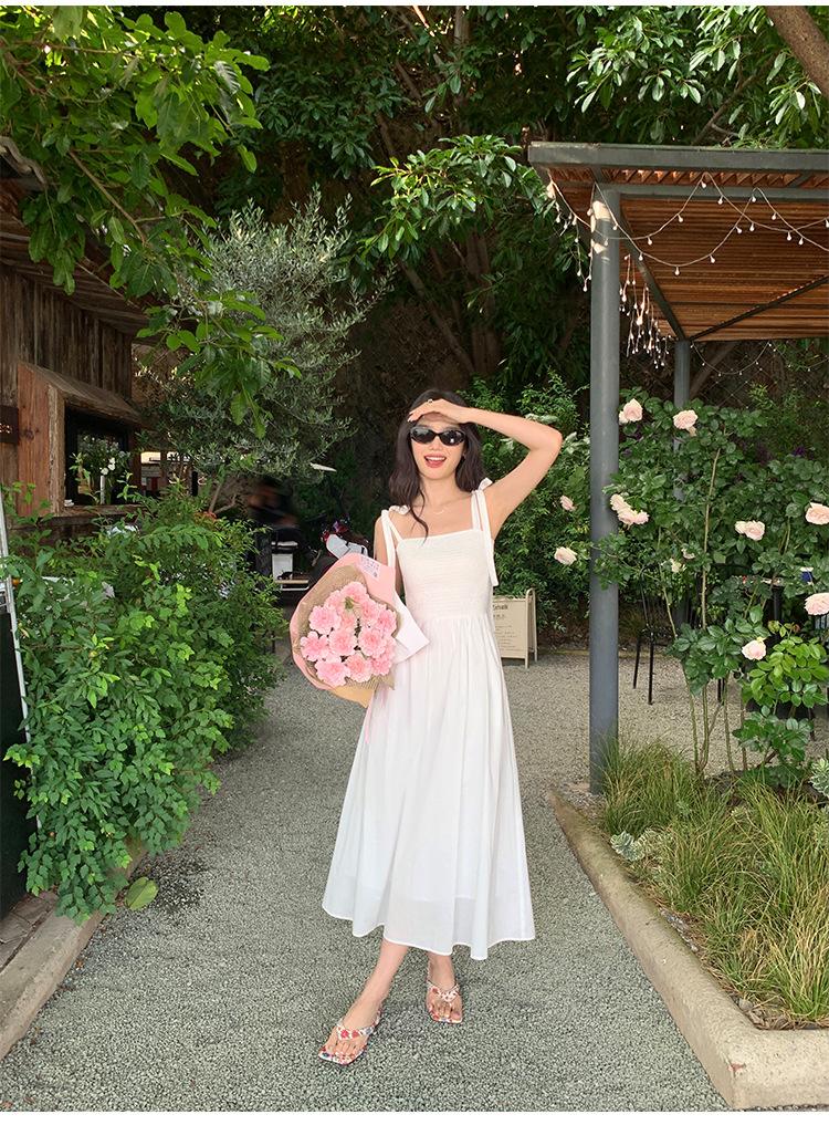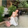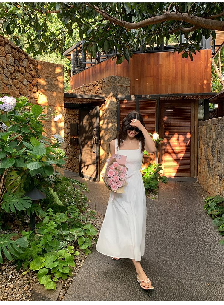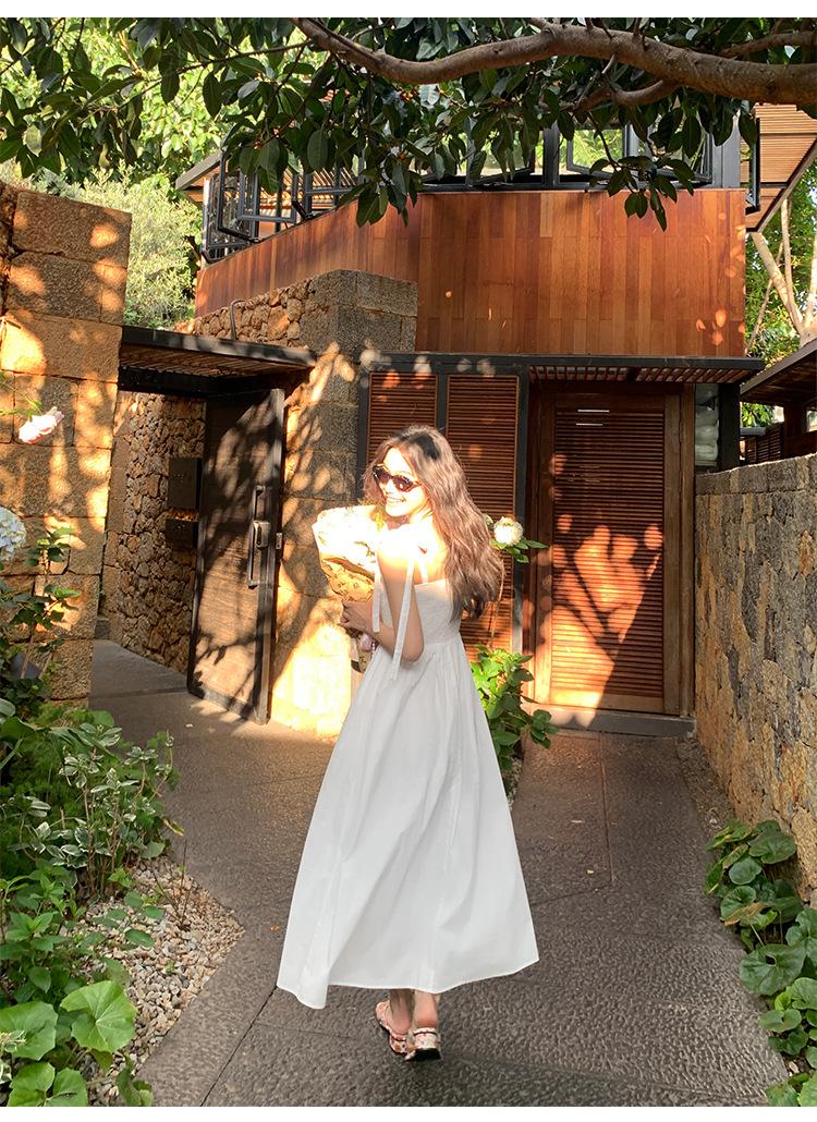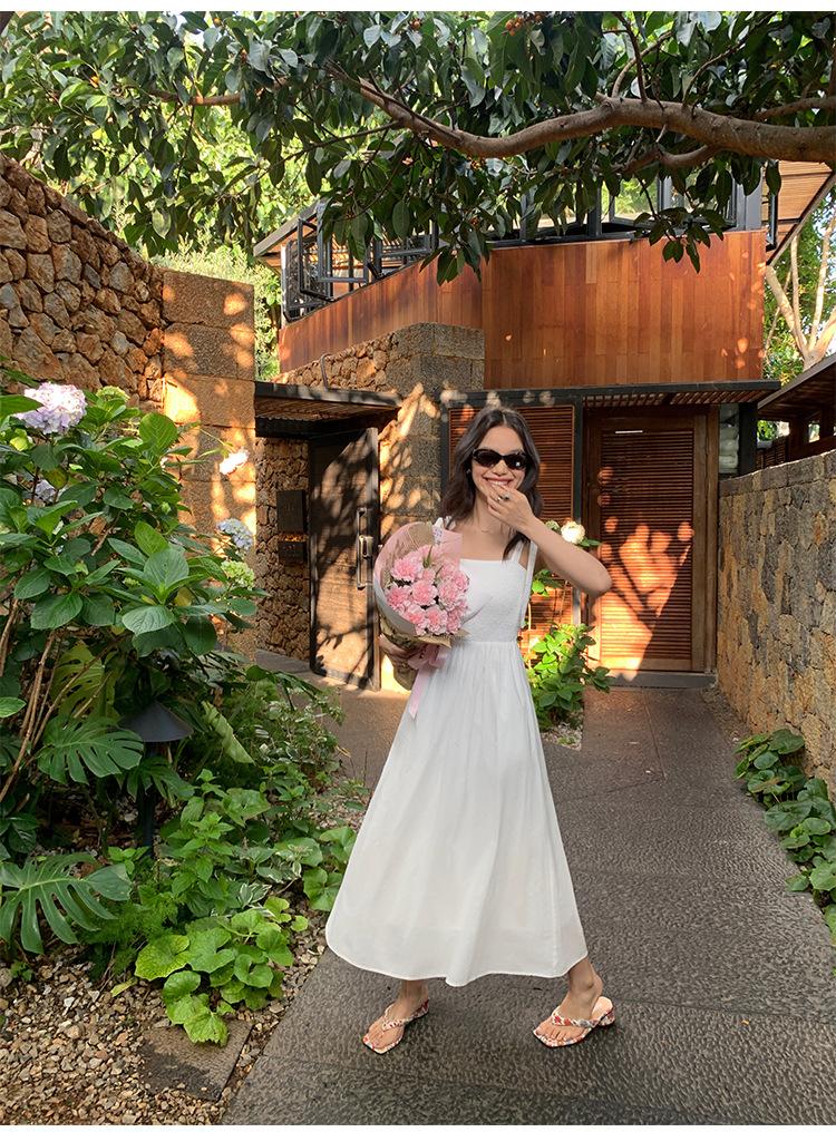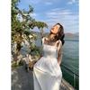 Falda elegante de encaje estilo francés con costuras, vestido de mujer para verano, vacaciones en la playa, cintura amplia, falda larga