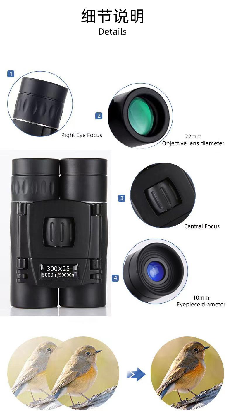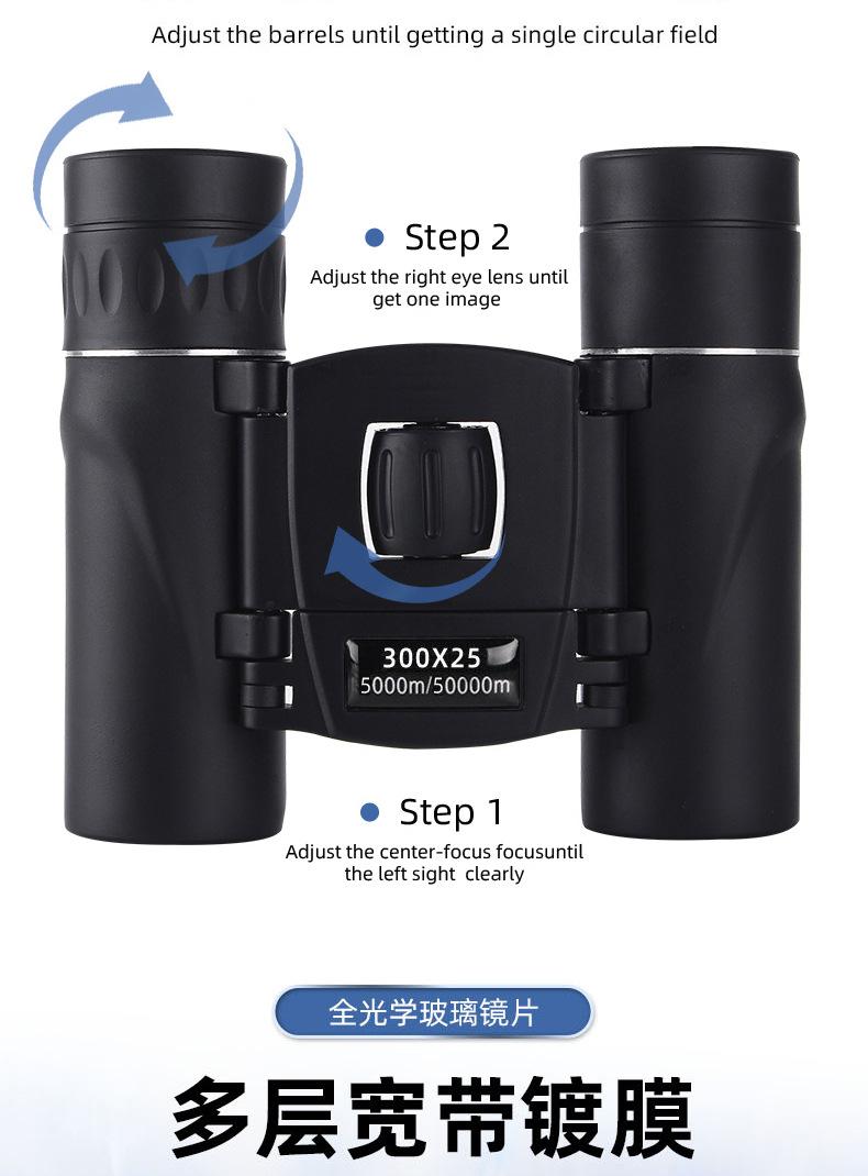 Mini telescopio plegable para exteriores Cross-border 300x25, binoculares portátiles de alta potencia HD para niños