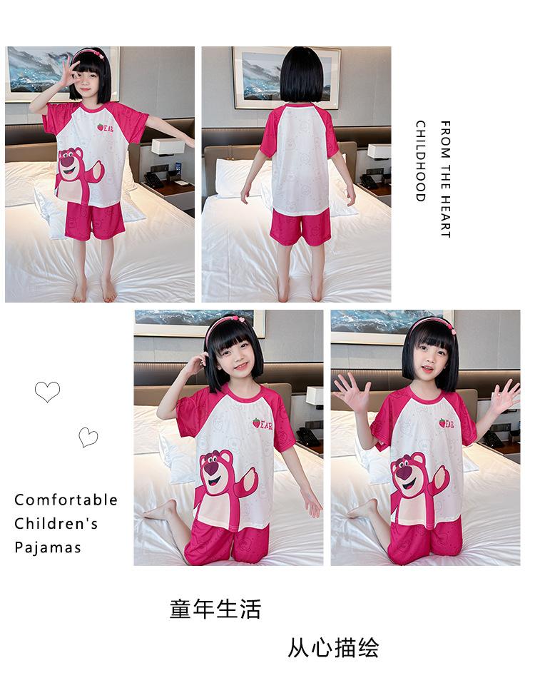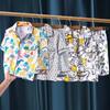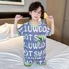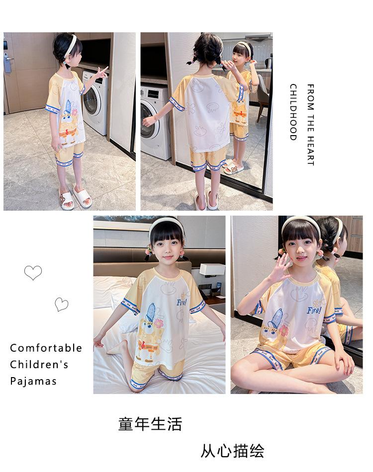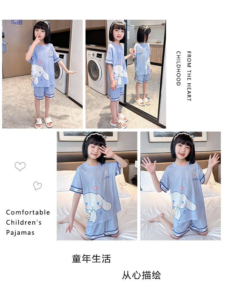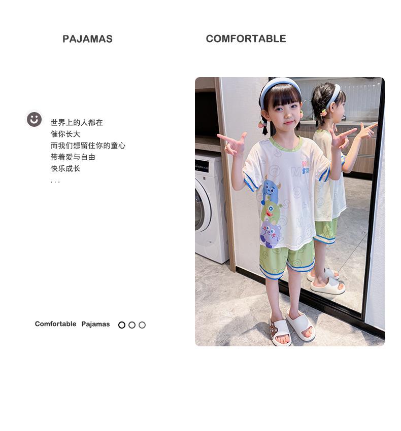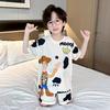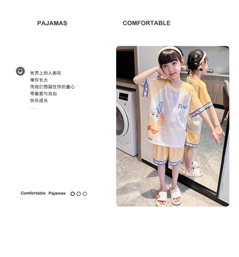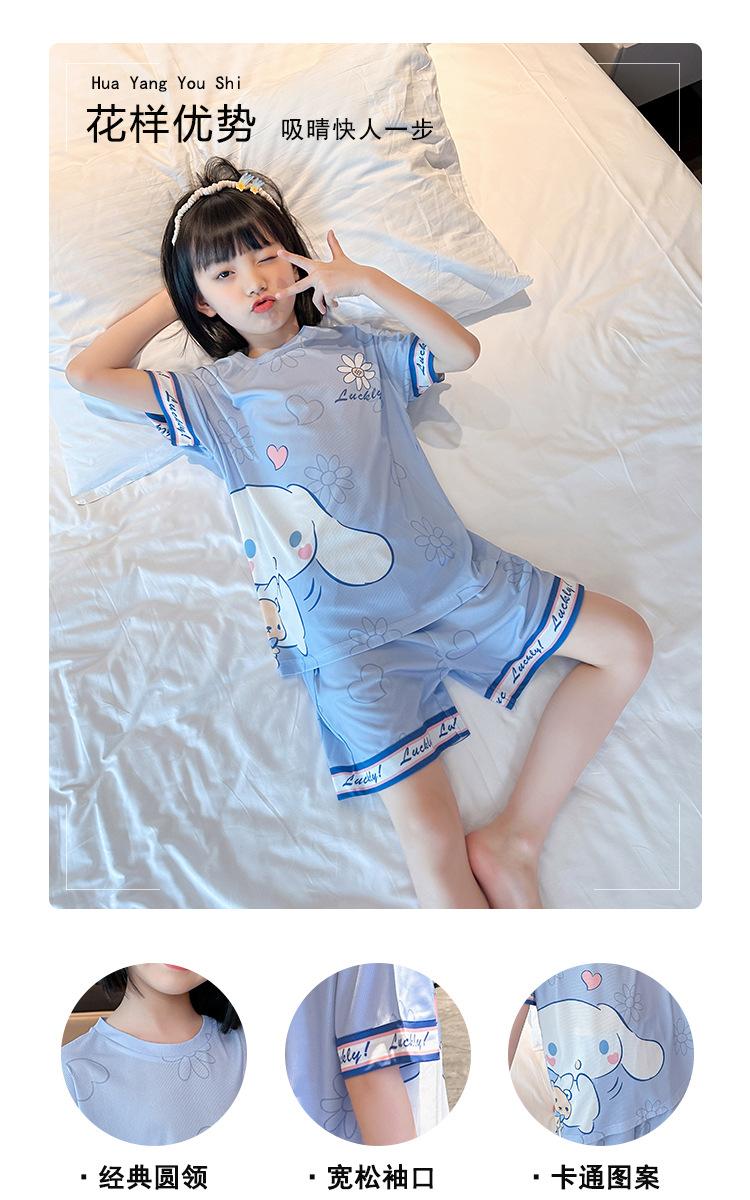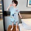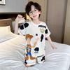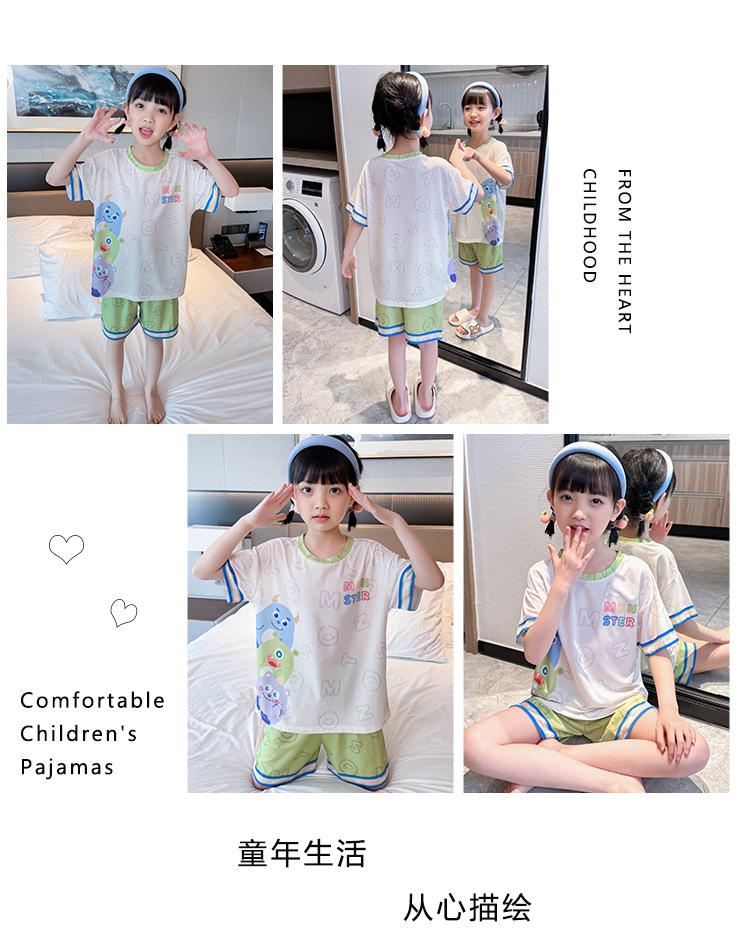 Pijamas de verano para niños y niñas, bonitos dibujos animados, hilo de seda de hielo, cuello redondo, ropa de aire acondicionado para niños, ropa para el hogar
