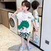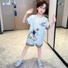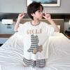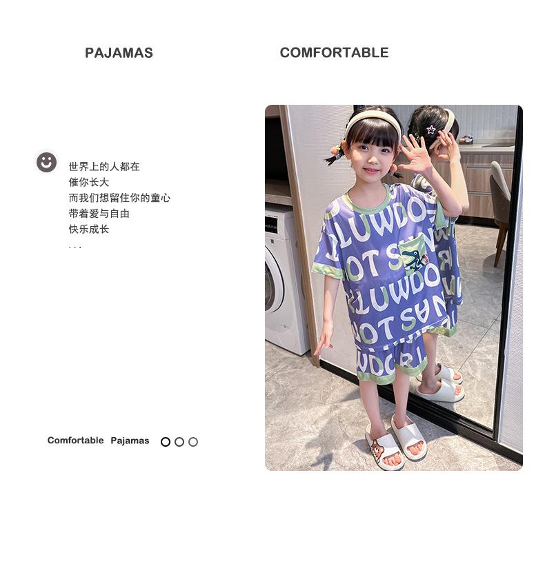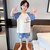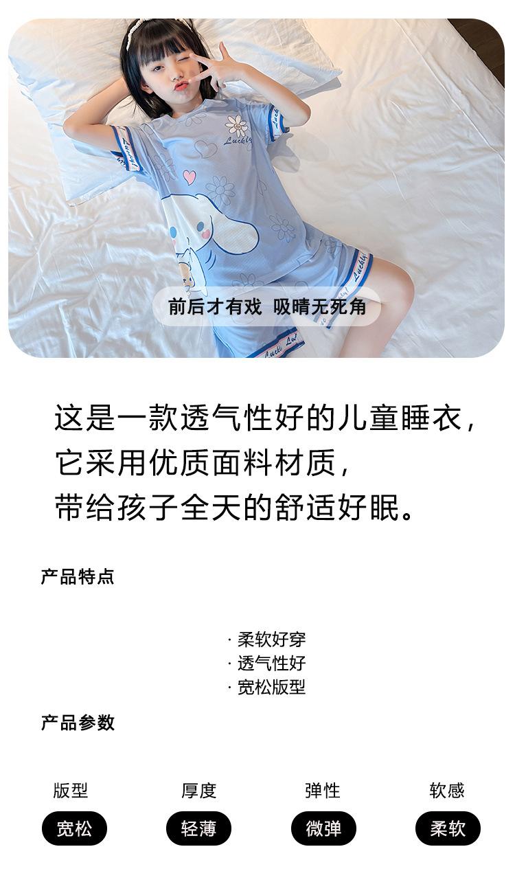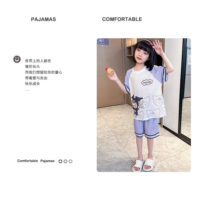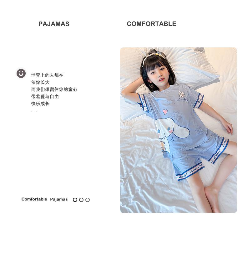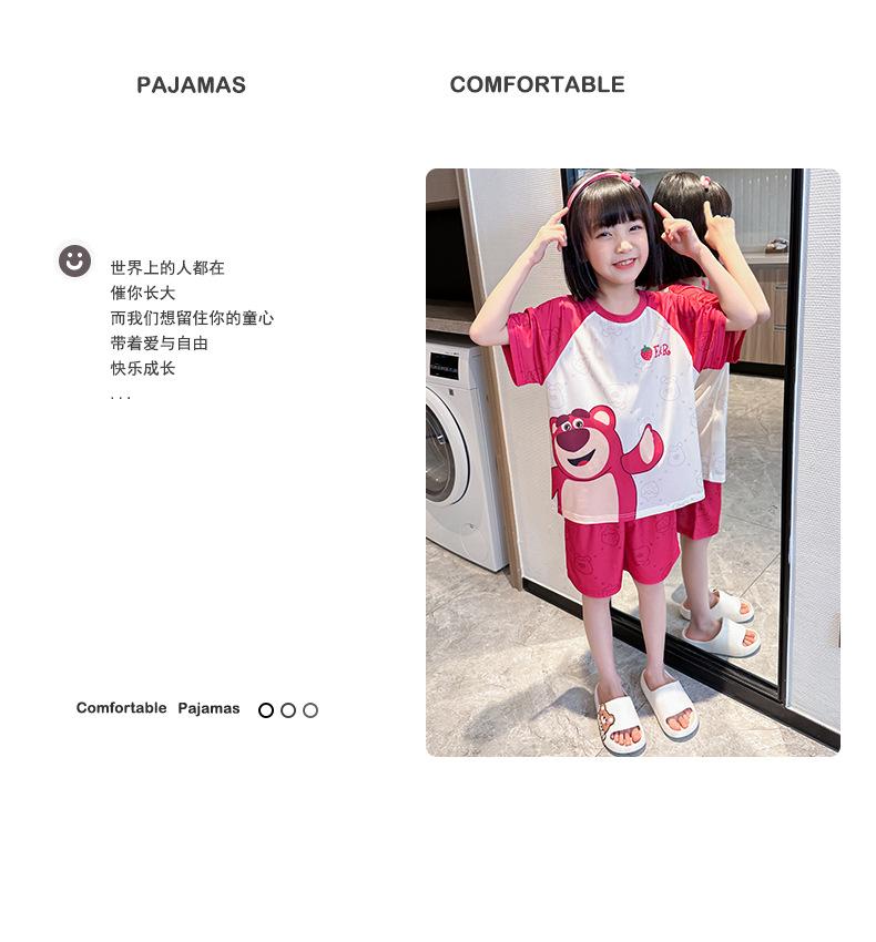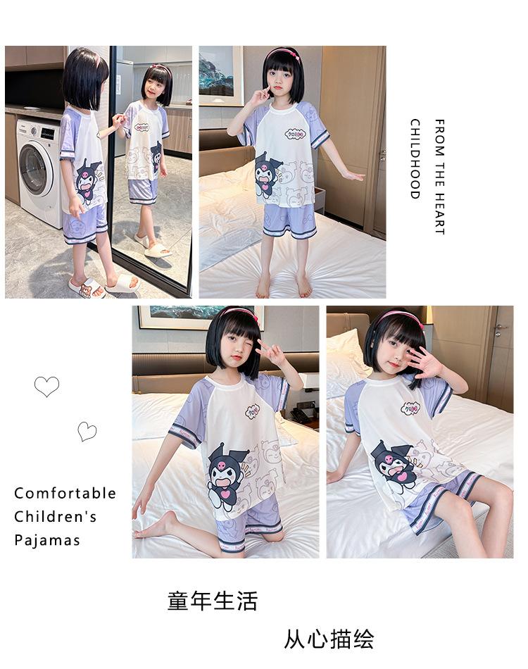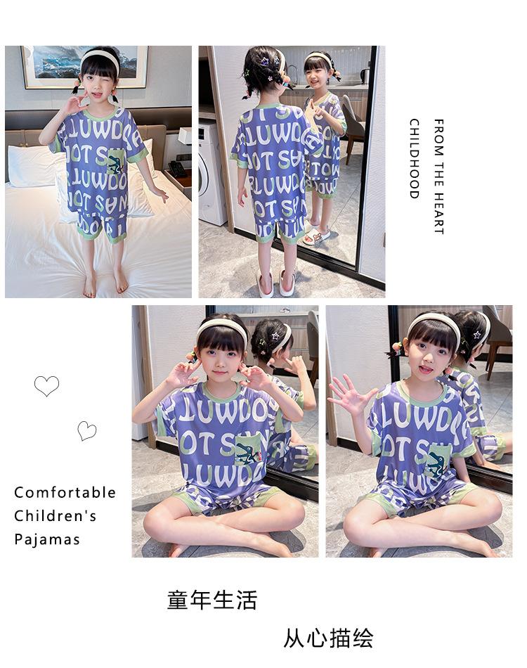 Pijamas de verano para niños y niñas, bonitos dibujos animados, hilo de seda de hielo, cuello redondo, ropa de aire acondicionado para niños, ropa para el hogar