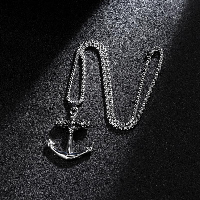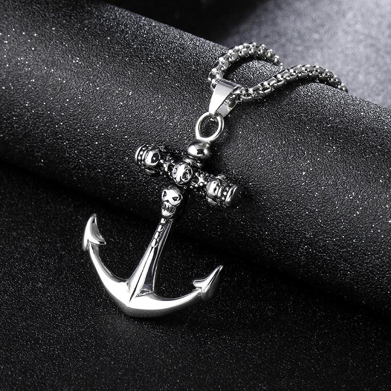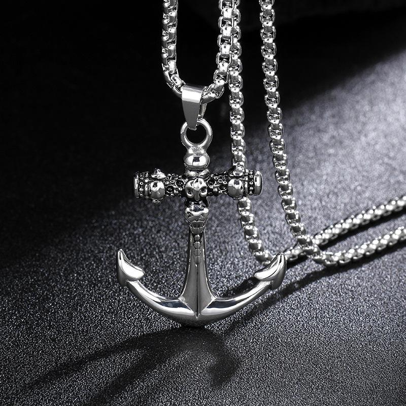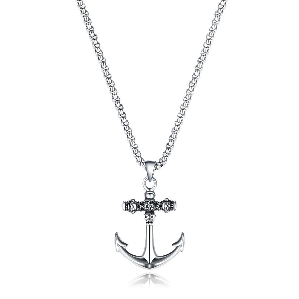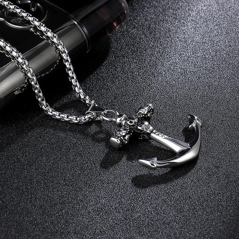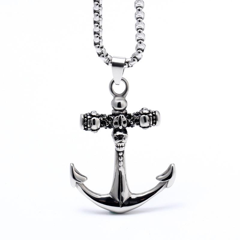 Collar con colgante de ancla de tridente para hombre, estilo hip hop, estilo retro transfronterizo, cadena de acero y titanio.