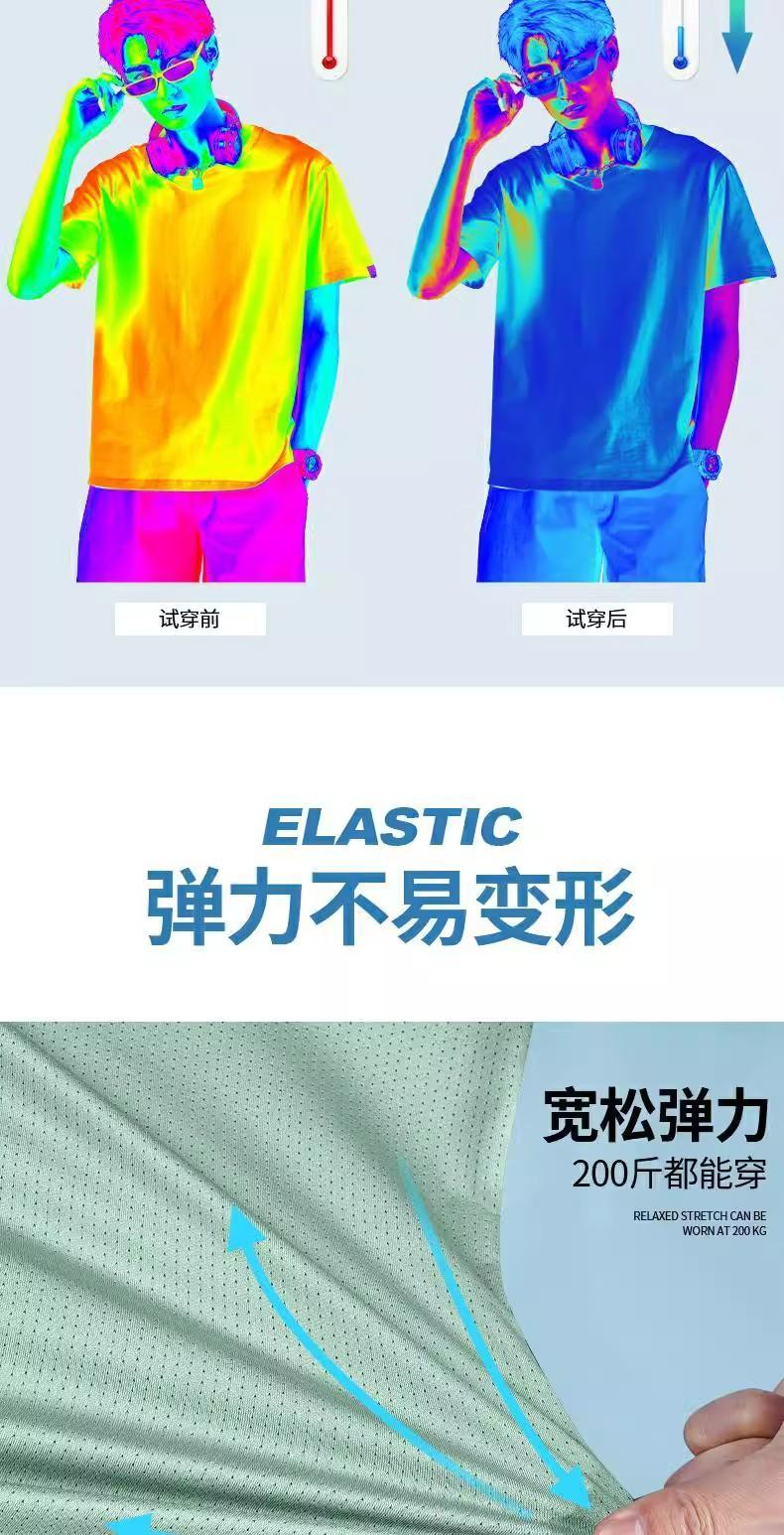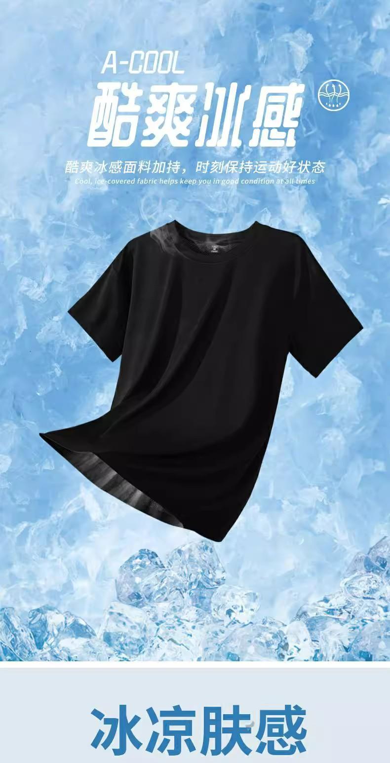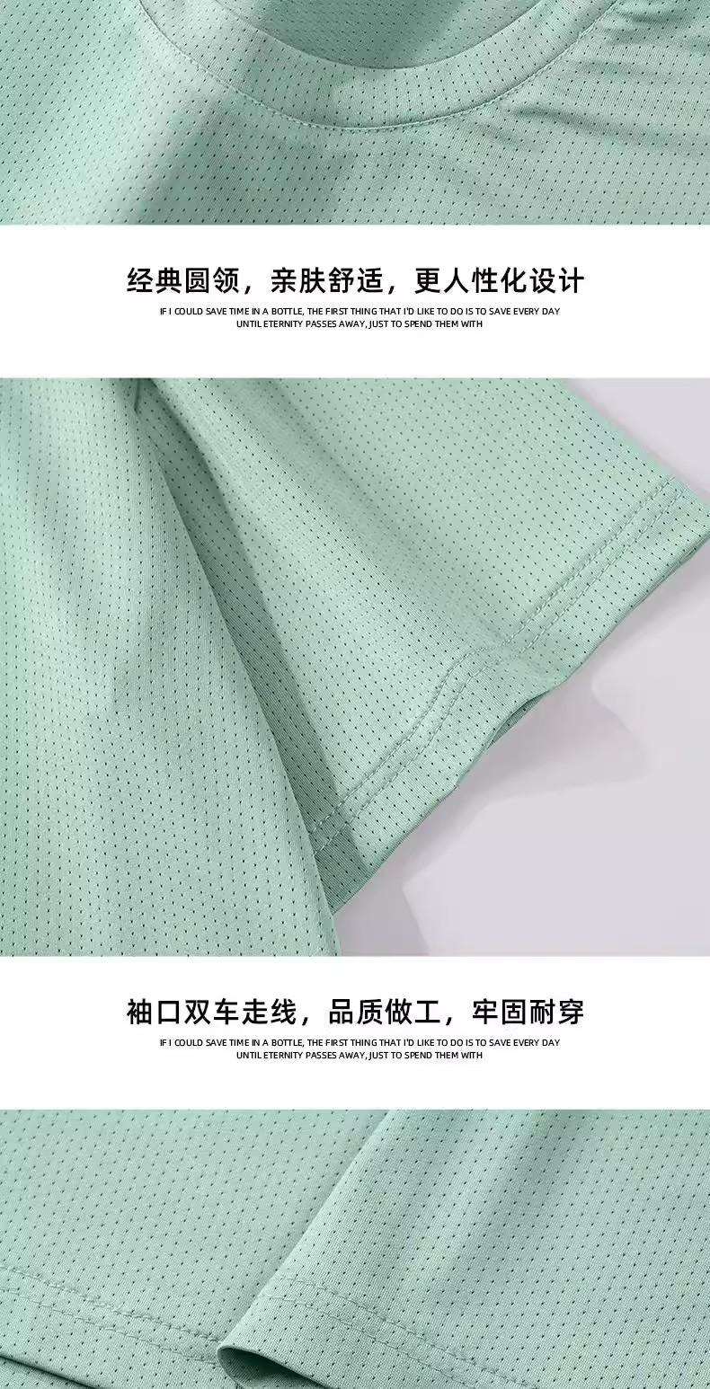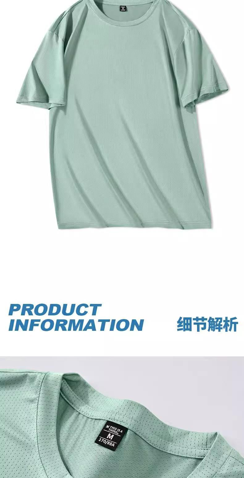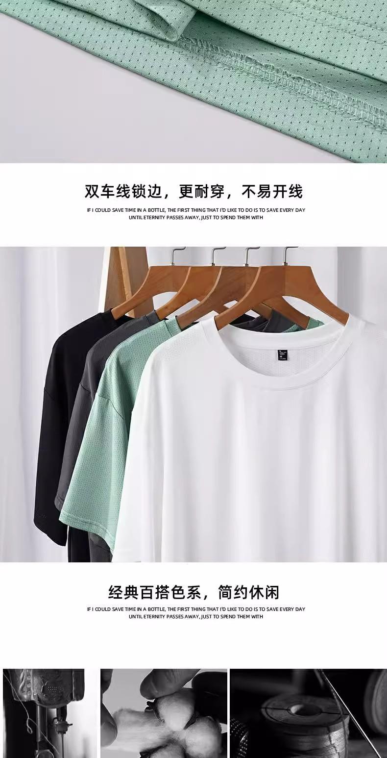 Camiseta de hombre de secado rápido de seda de hielo, de verano, de malla de manga corta, deportiva, de media manga, para correr, talla grande, con cuello redondo