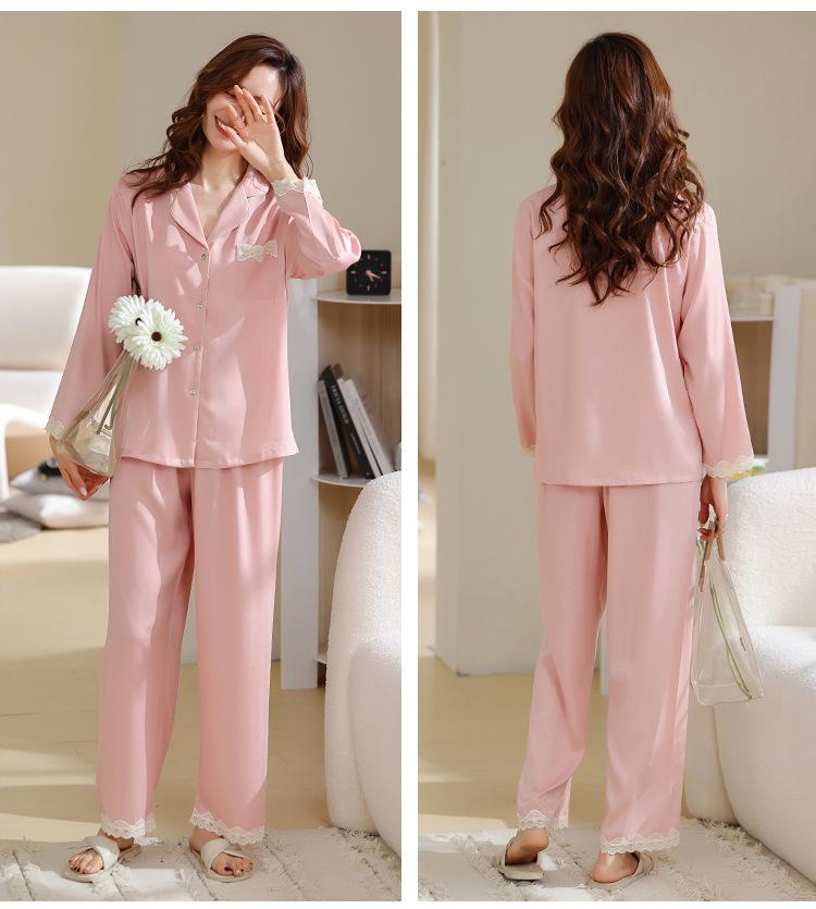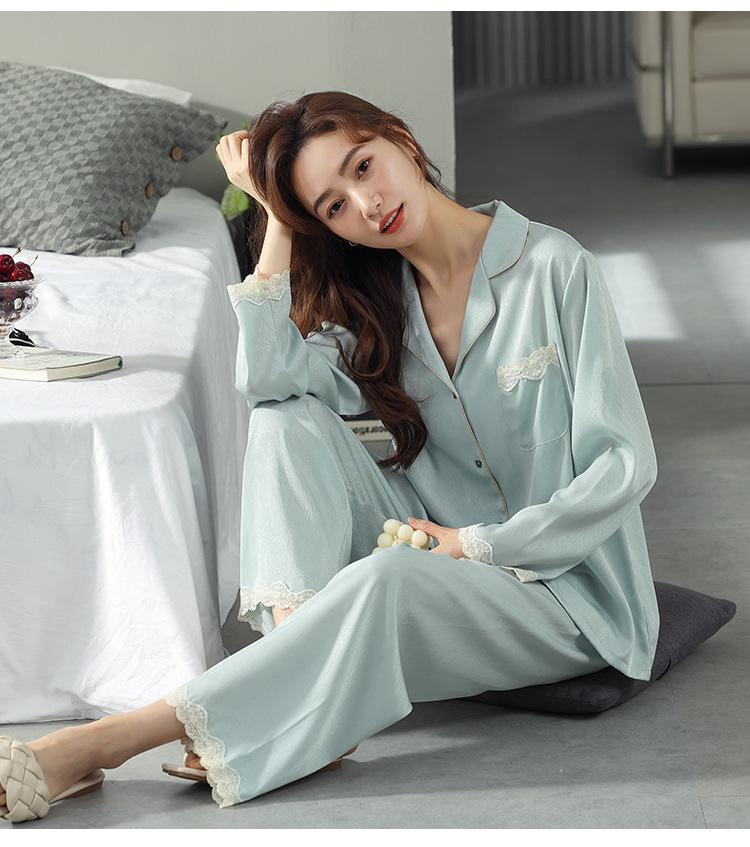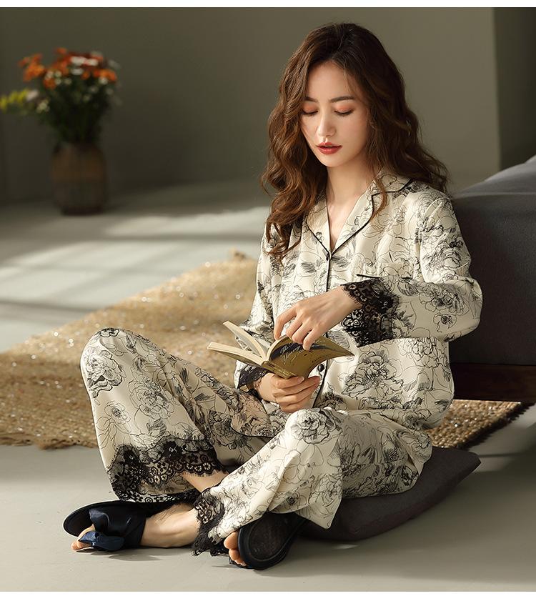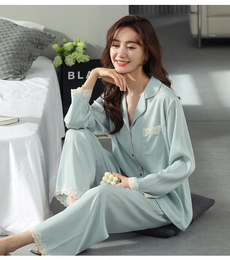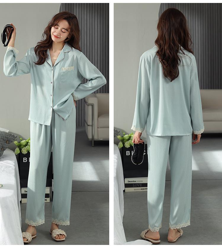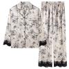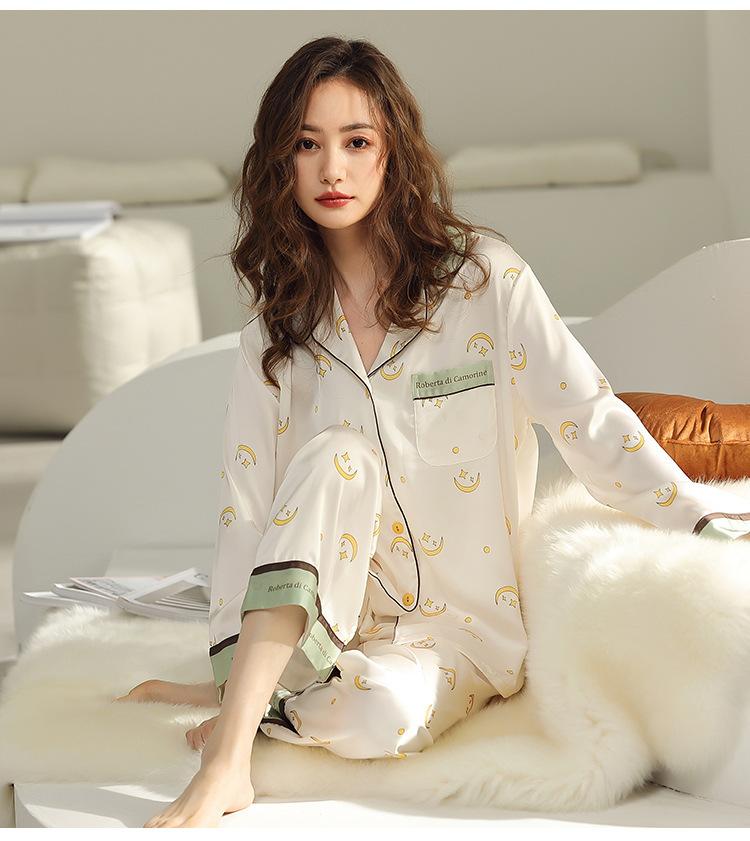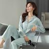 Pijama de mujer de verano de seda de hielo de manga larga de primavera y otoño de alta gama fina similar a la seda ropa de casa traje de dos piezas para mujer