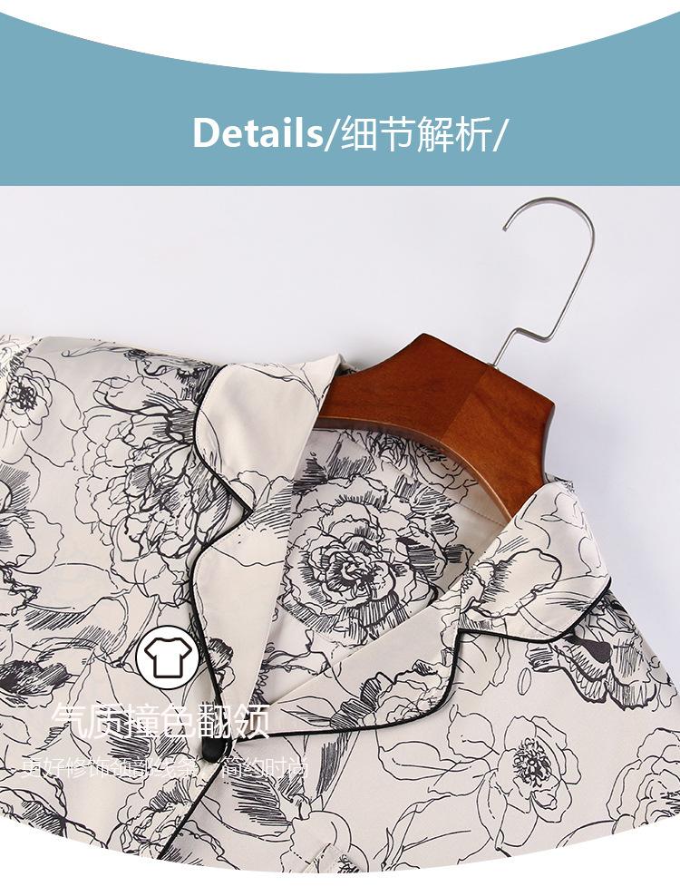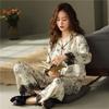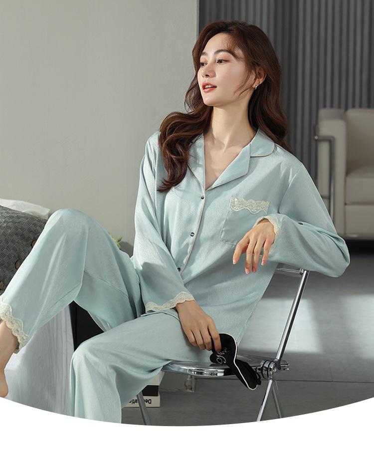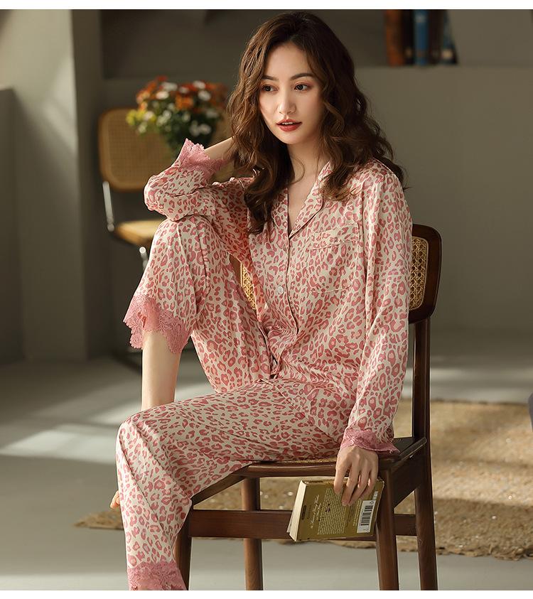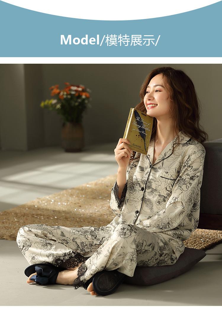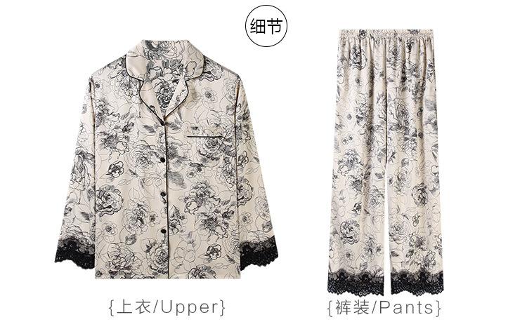Pijama de mujer de verano de seda de hielo de manga larga de primavera y otoño de alta gama fina similar a la seda ropa de casa traje de dos piezas para mujer