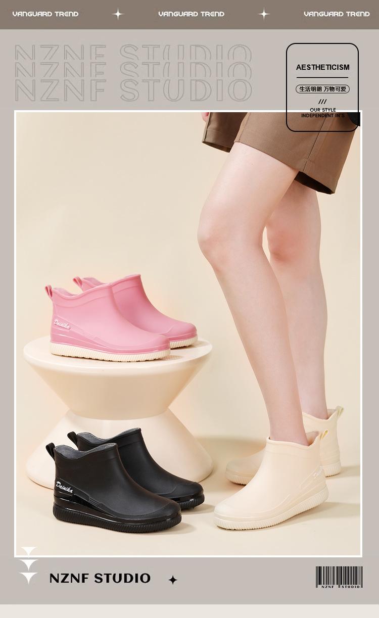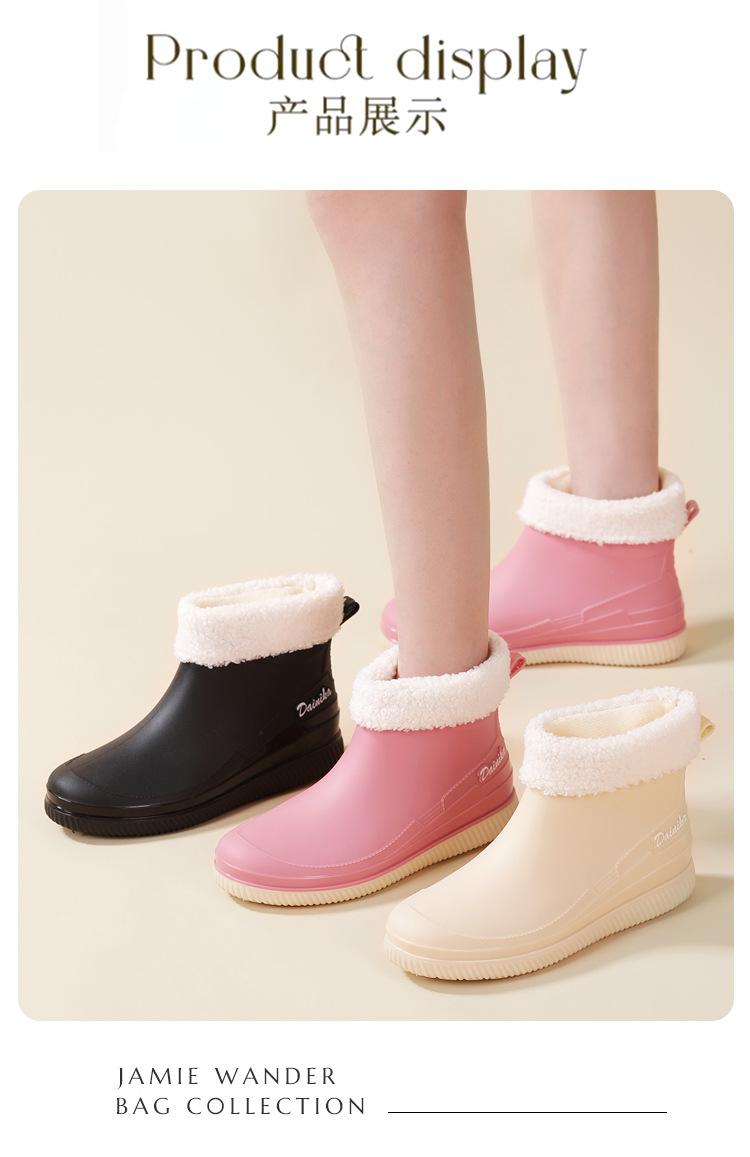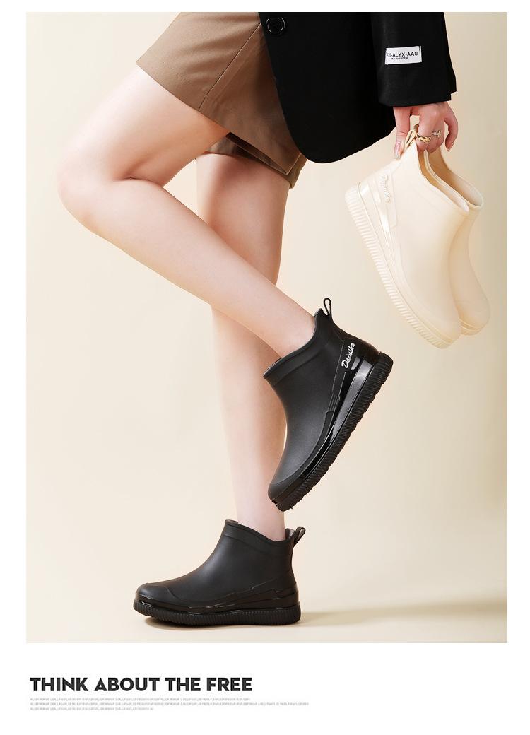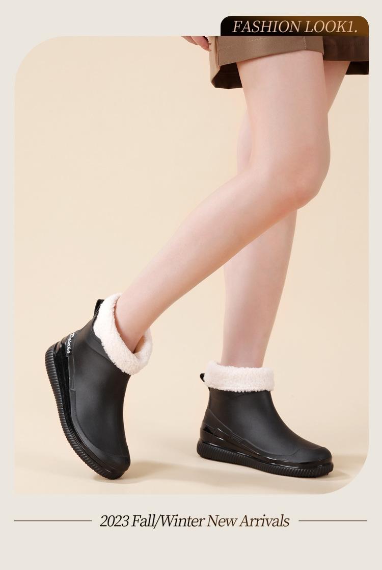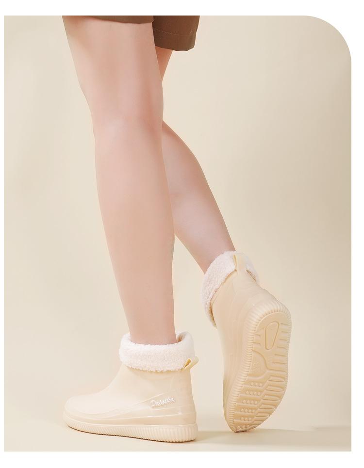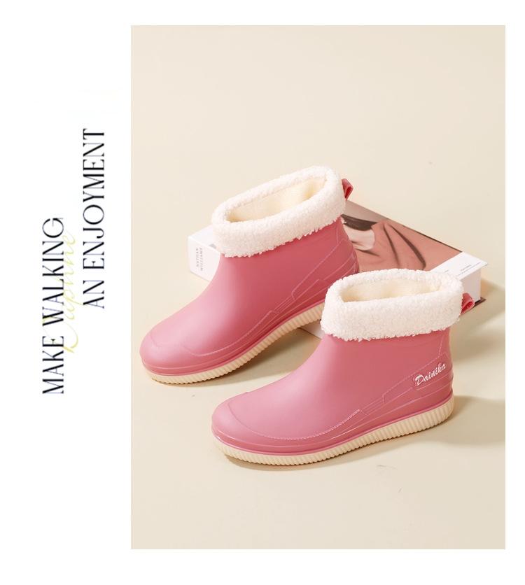 Botas de lluvia transfronterizas, ropa de abrigo de moda para mujer, botas de lluvia de barril corto, zapatos de agua para mujer, antideslizantes, impermeables, zapatos de cocina de goma integrados, cubrezapatos