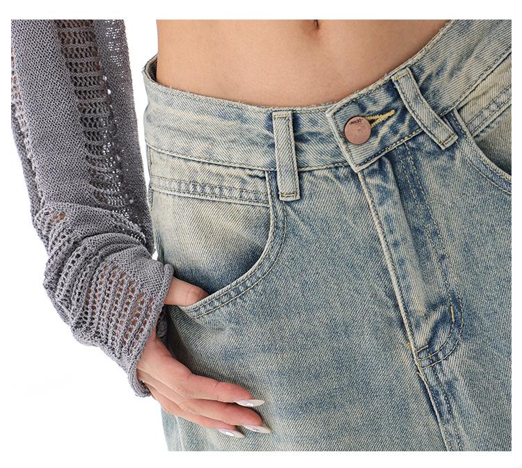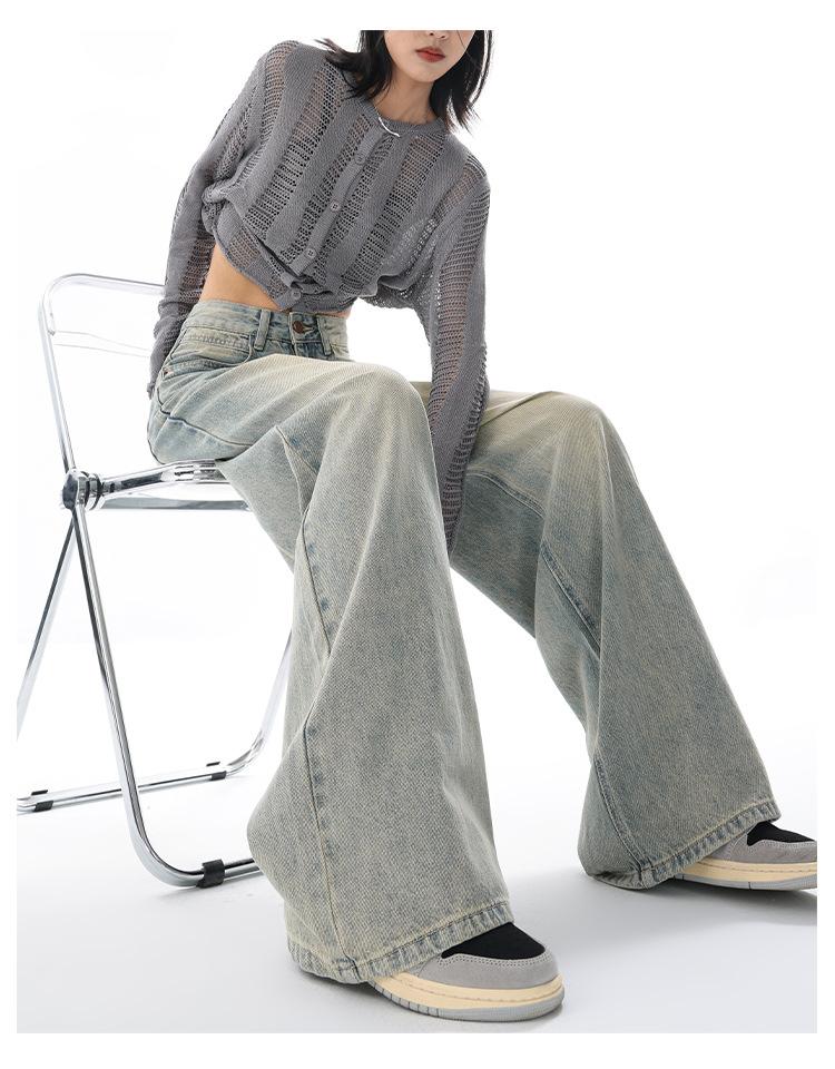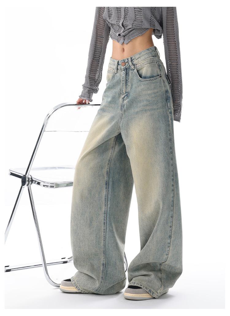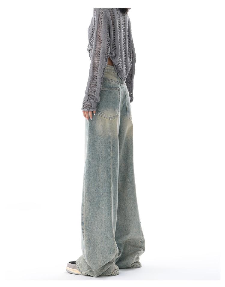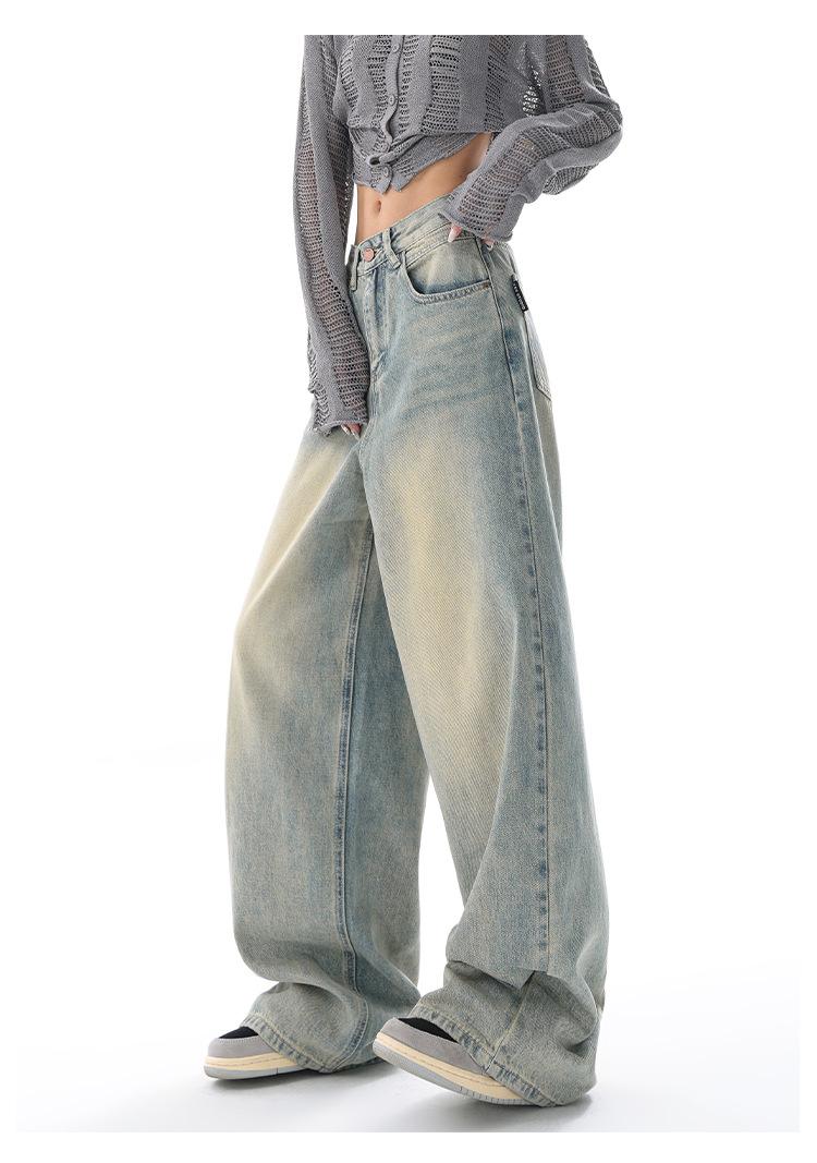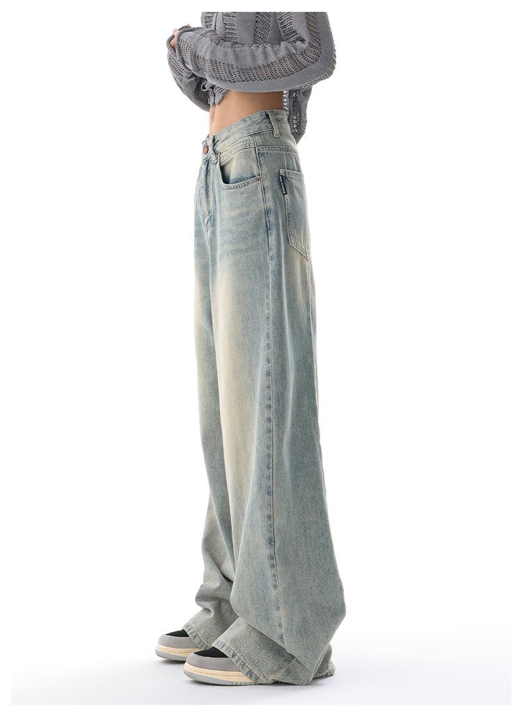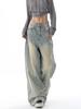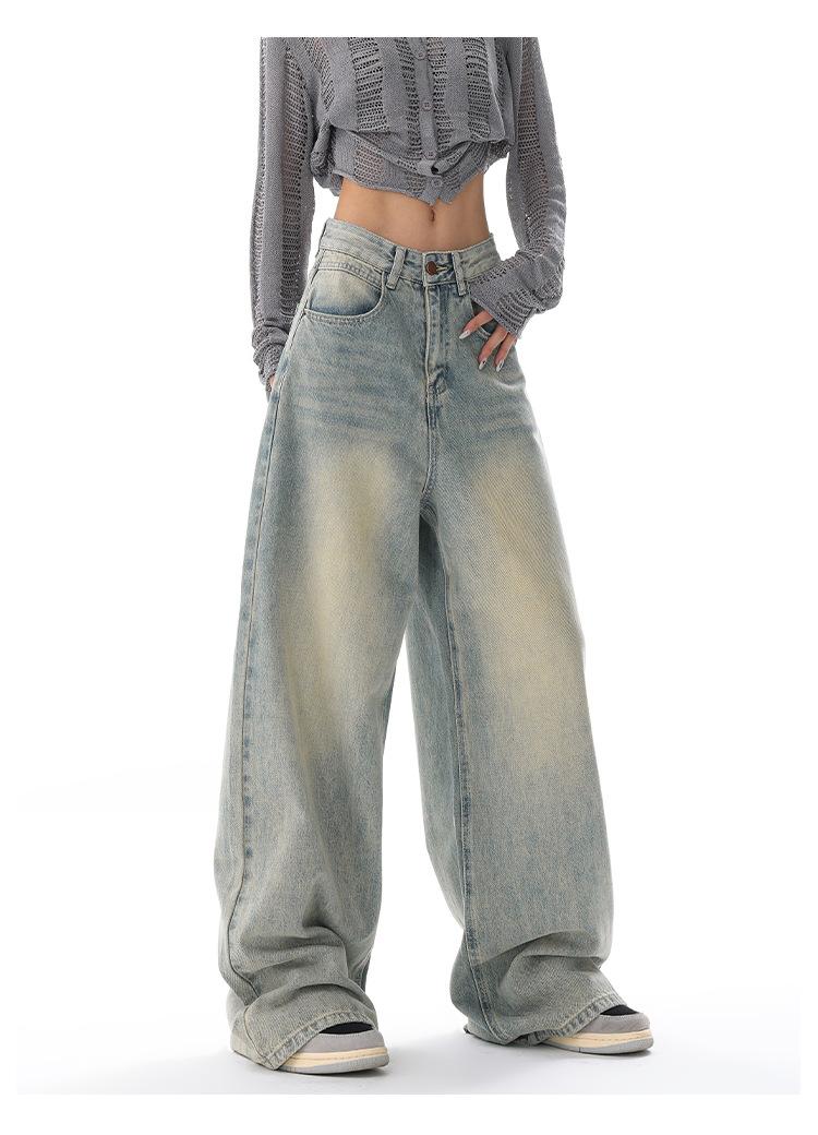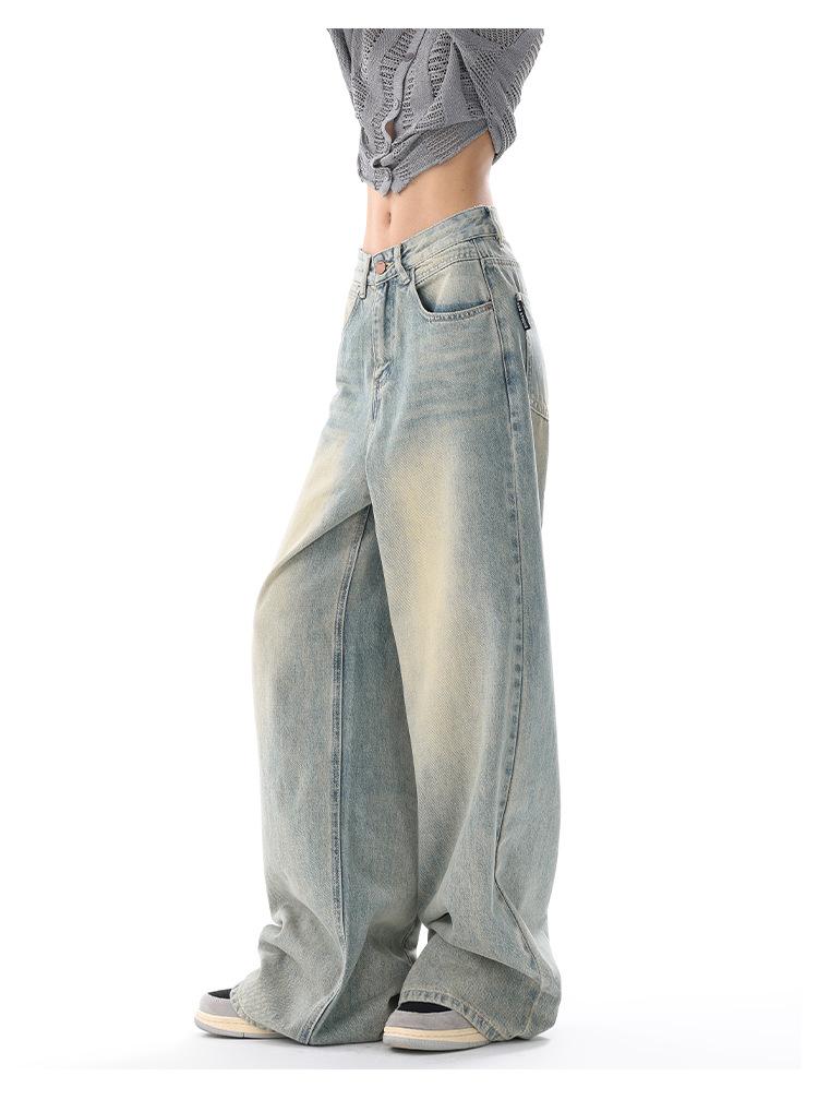 KEN STUDIO Primavera y Verano Nuevos Jeans Retro para Mujer Diseño Americano Suelto Pantalones de Pierna Ancha Ajustados
