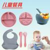 Set de Plato de Cena de Silicona Vajilla Infantil Grado Alimenticio Alimentación Infantil Cangrejo Tazón con Ventosa Vajilla de Silicona de Dibujos Animados
