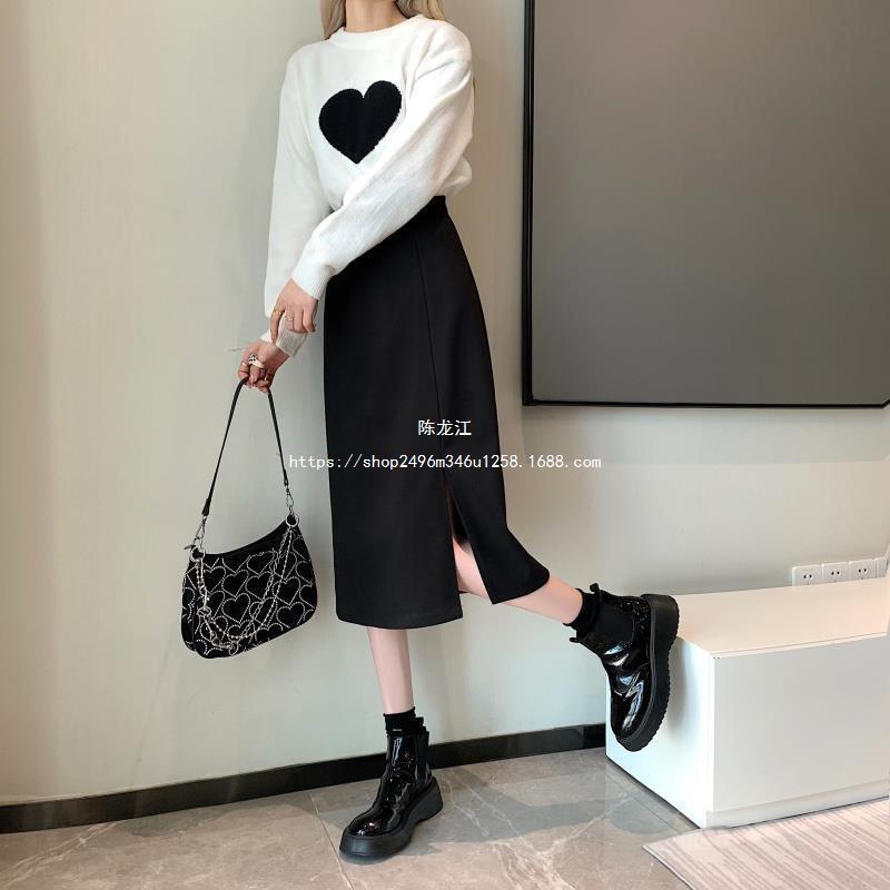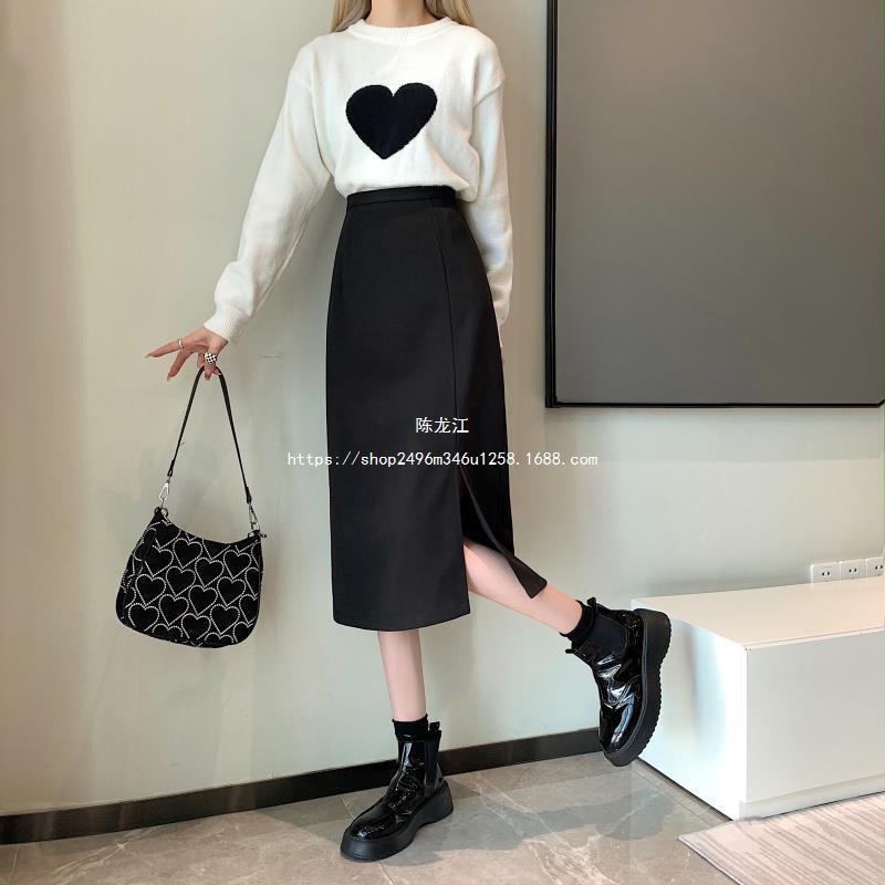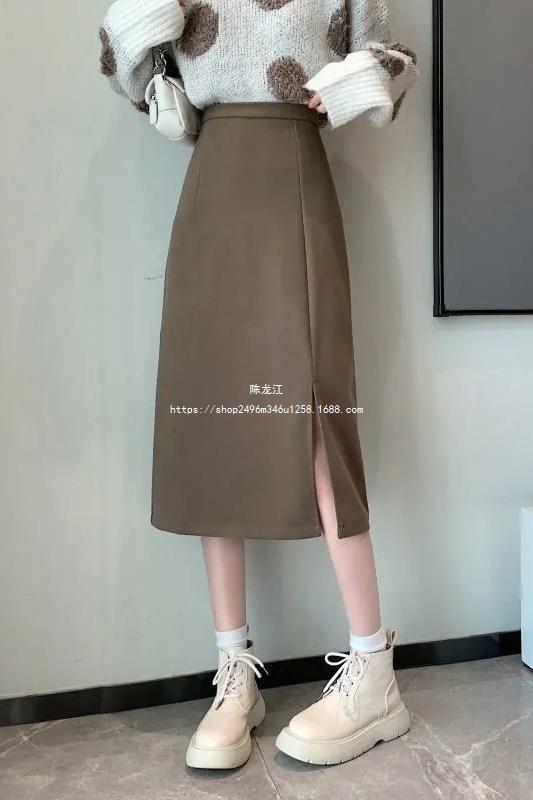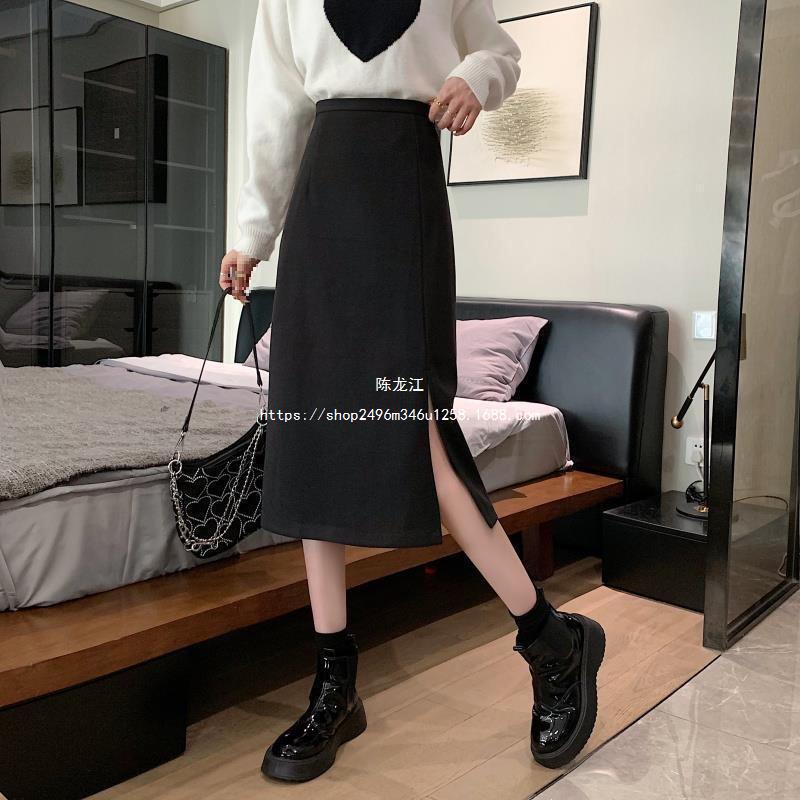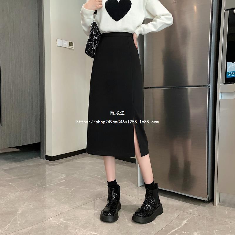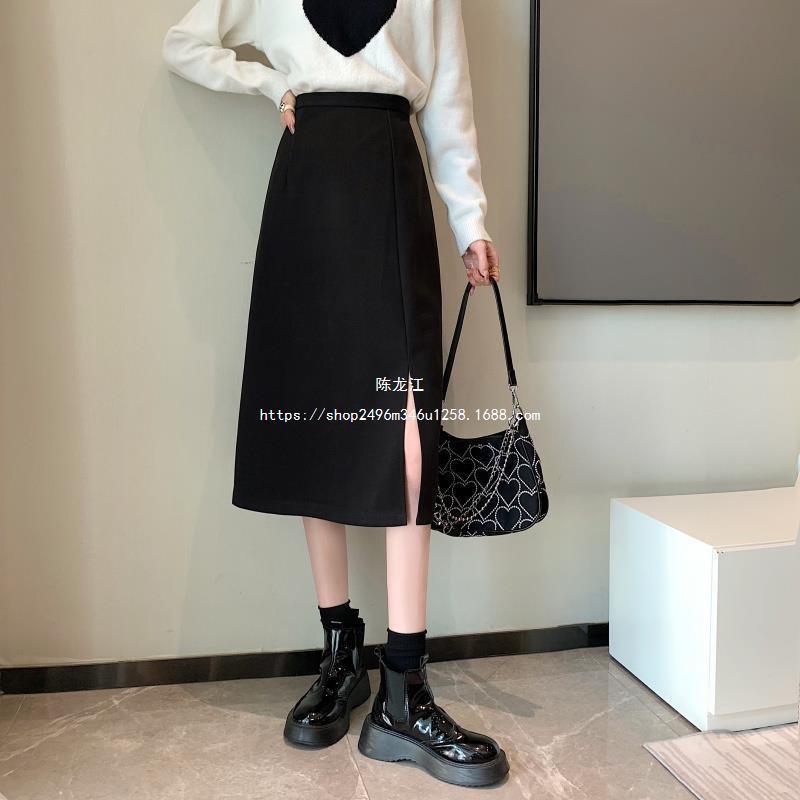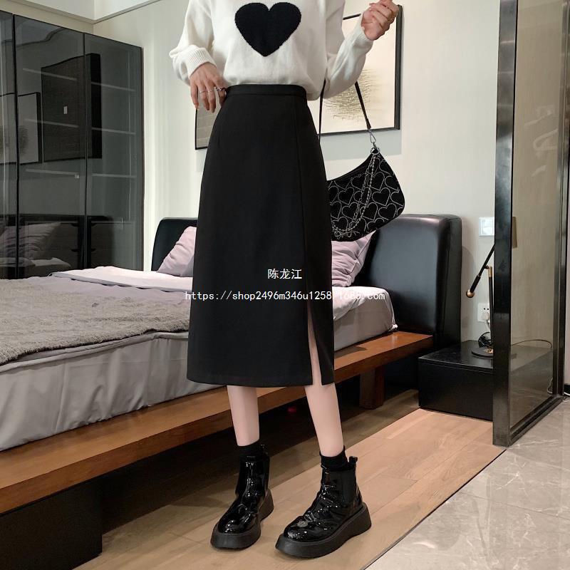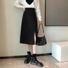 Falda de talla grande, de longitud media, ajustada, para profesora, para verano, para universidad, línea A, con abertura en la cintura, negra, nueva