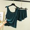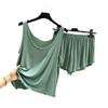 Conjunto de dos piezas de pijama holgado de verano con tirantes finos y cuello redondo sin mangas y tirantes finos.