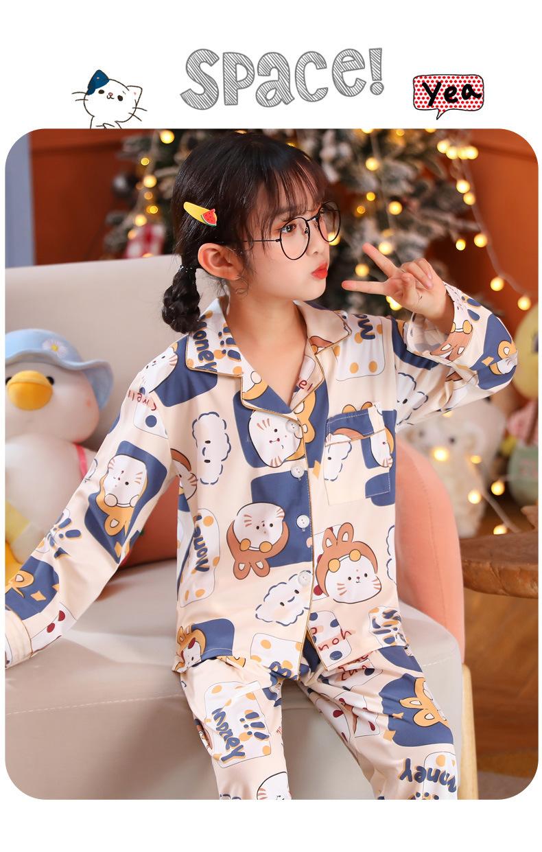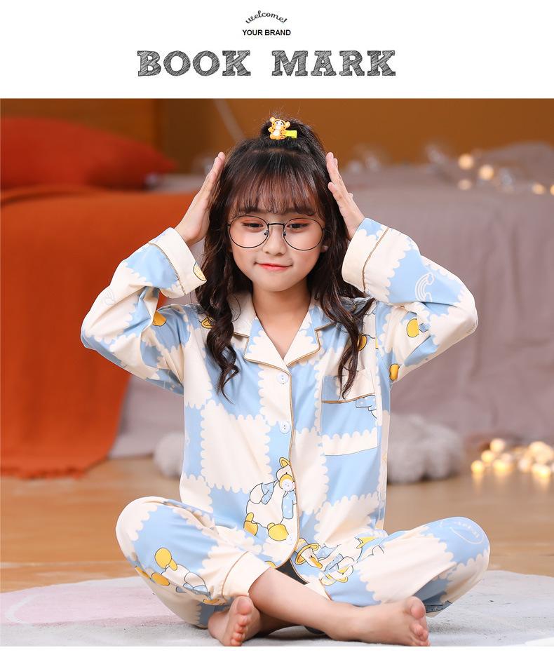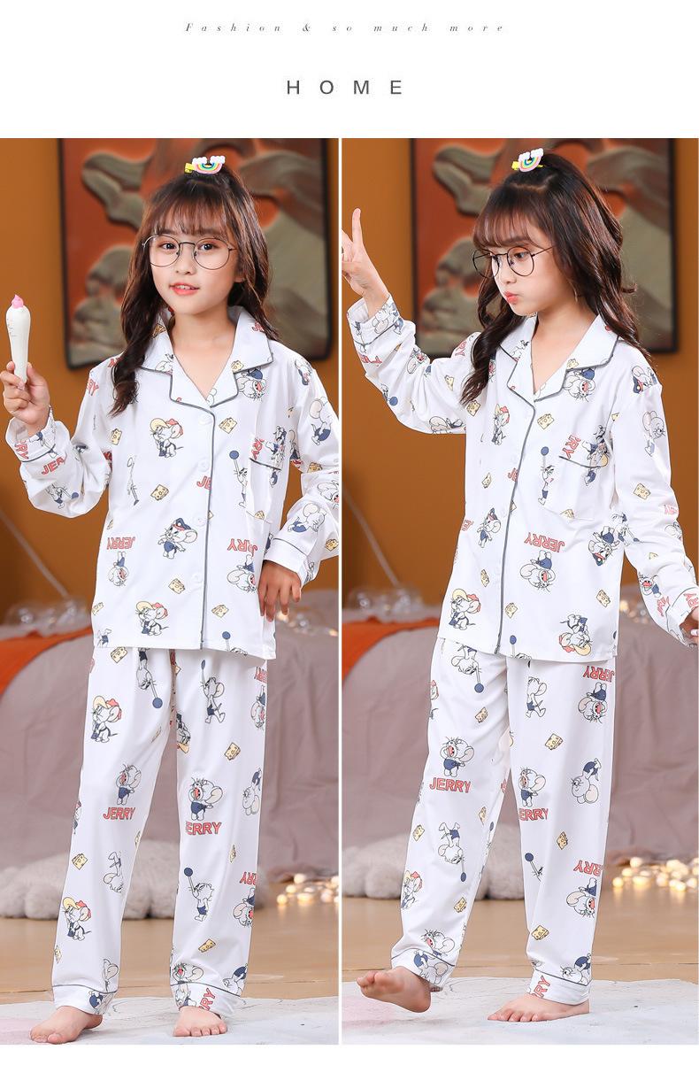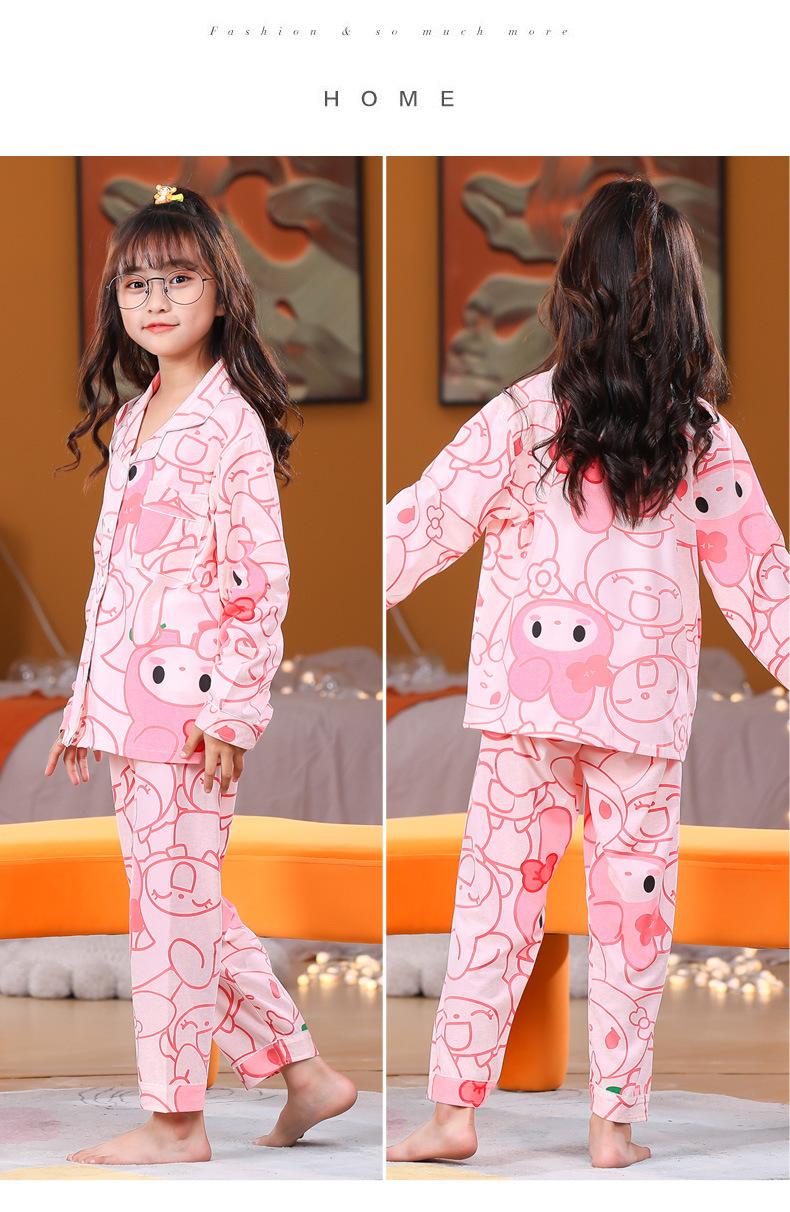 Pijamas de primavera y otoño para niños de comercio exterior transfronterizo, lindas caricaturas para niñas, cárdigan fino con solapa, ropa de casa para madre e hija, ropa de dormir para padres e hijos