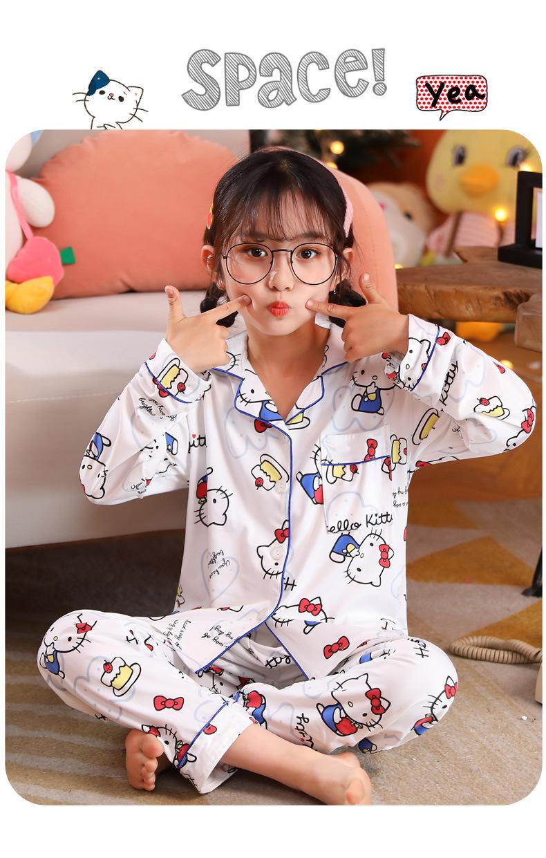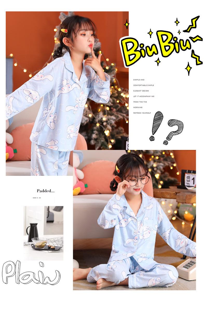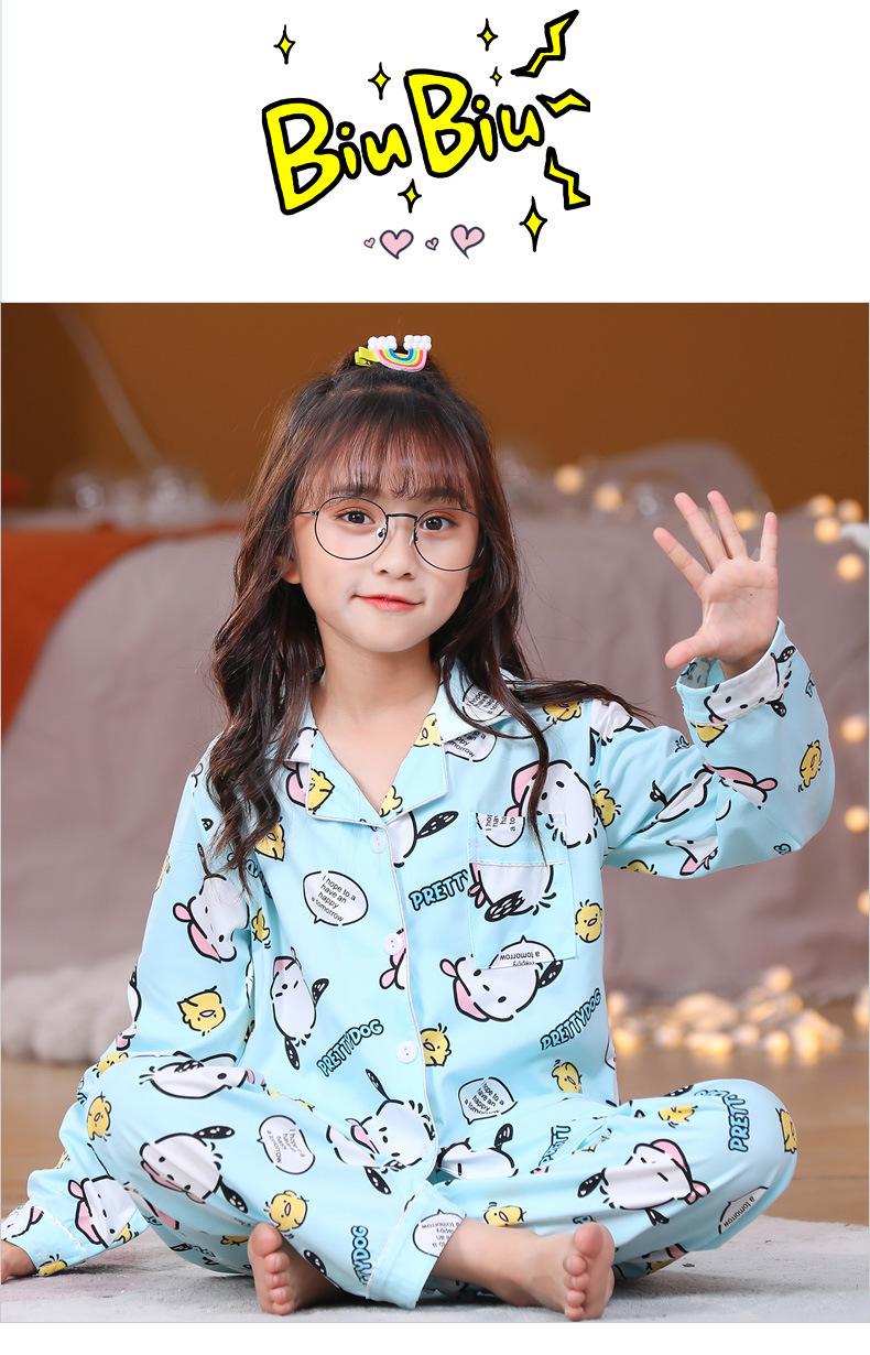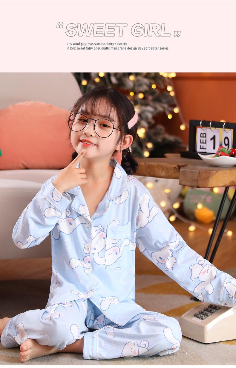 Pijamas de primavera y otoño para niños de comercio exterior transfronterizo, lindas caricaturas para niñas, cárdigan fino con solapa, ropa de casa para madre e hija, ropa de dormir para padres e hijos