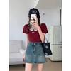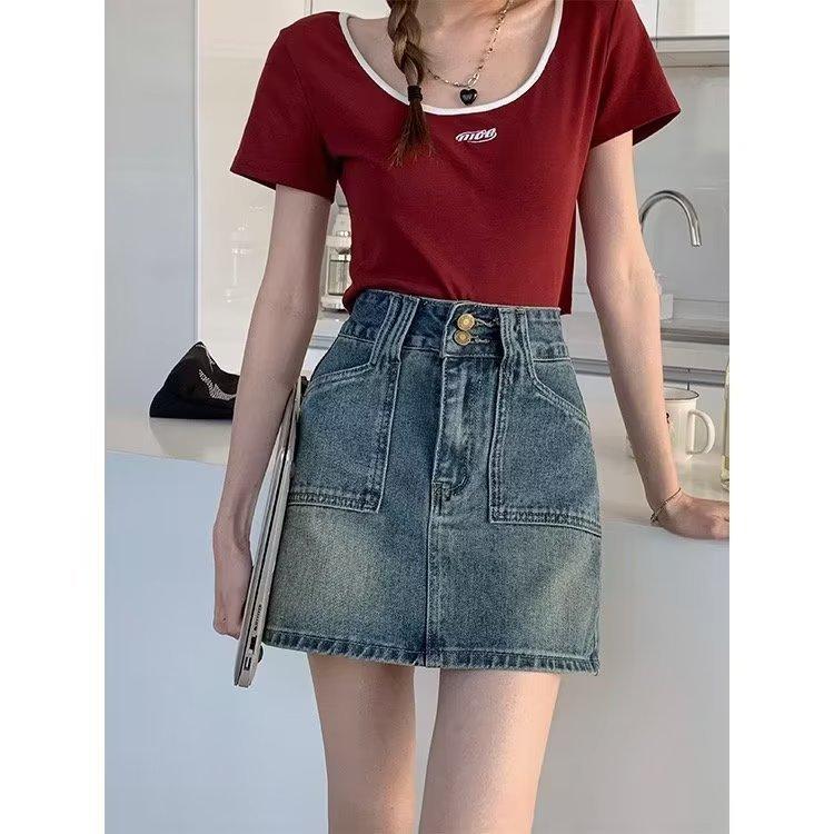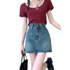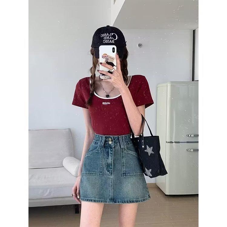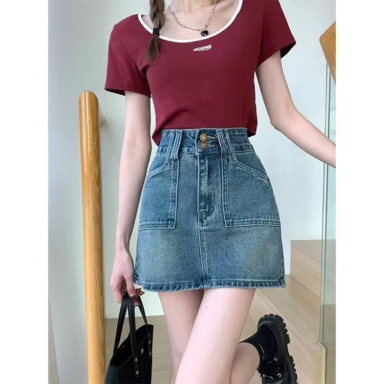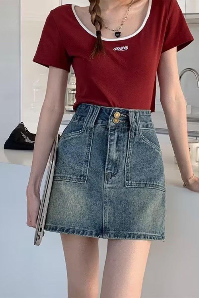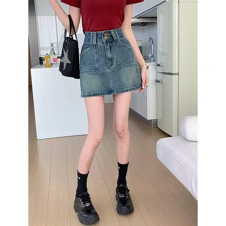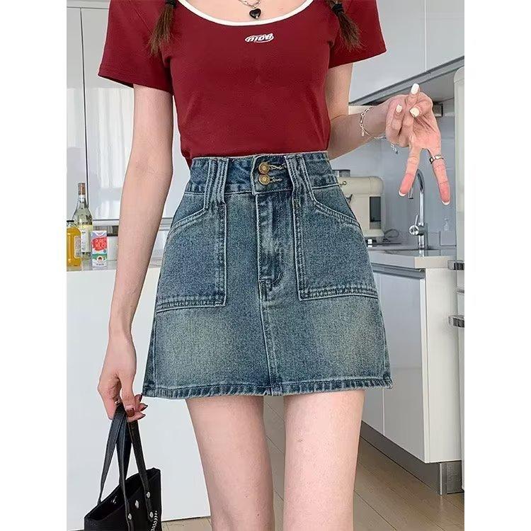 Falda corta de estilo Spice Girl para mujer, falda acampanada de mezclilla vintage, de cintura alta y corte A, combina con todo, estilo verano