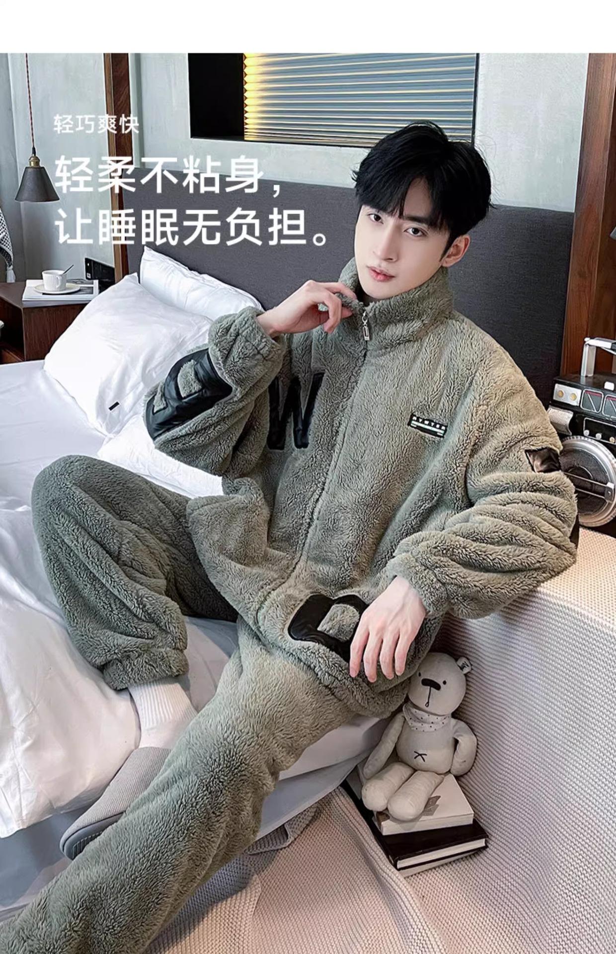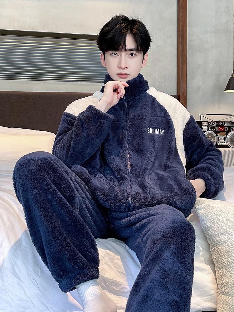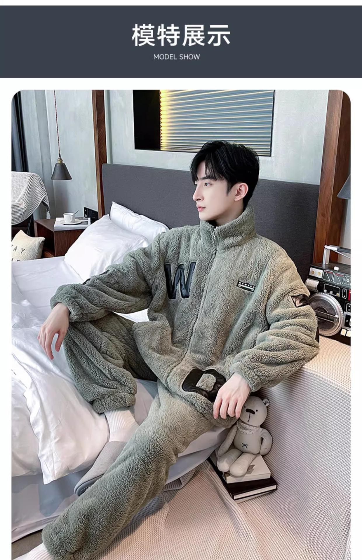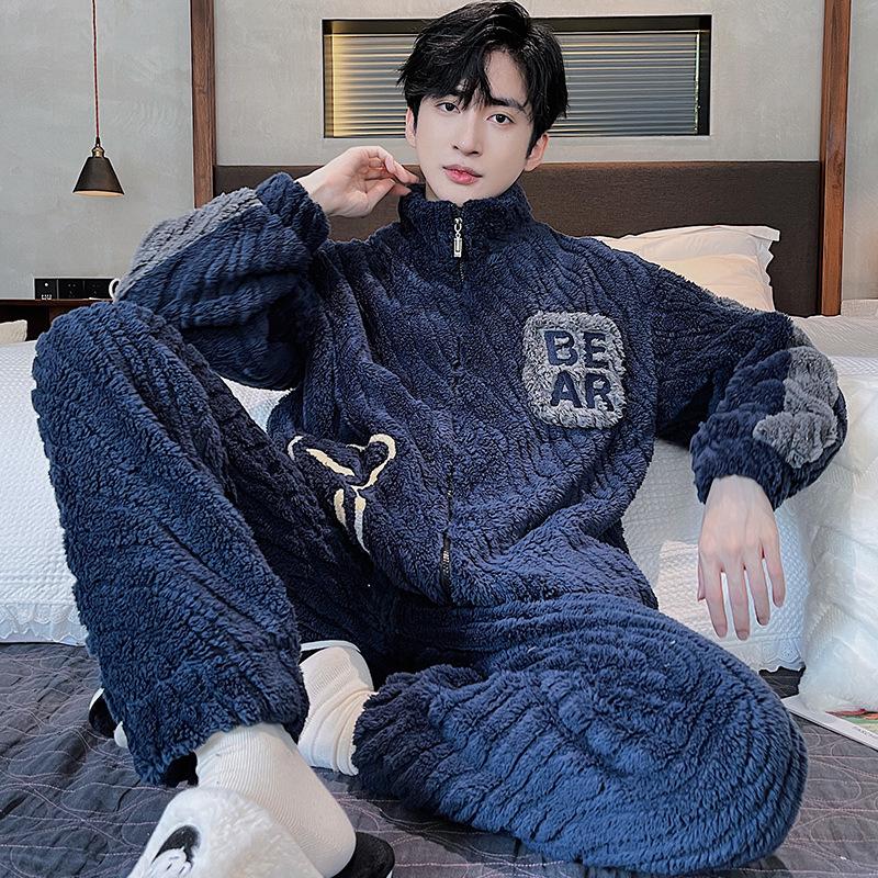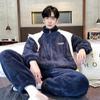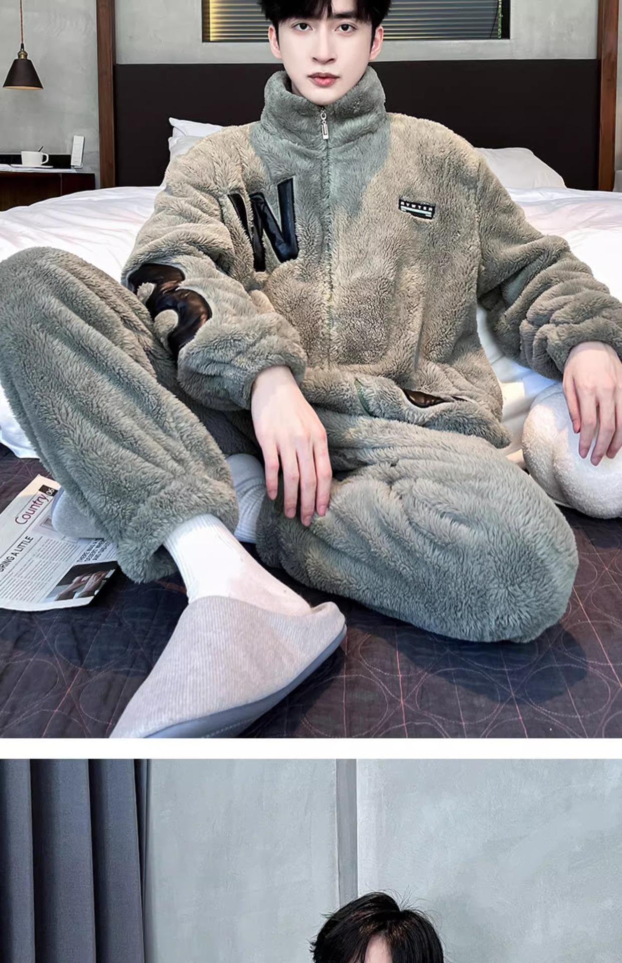 Pijama nuevo para hombre, de invierno, de franela polar coral con cremallera, forro polar grueso, ropa de casa, traje de talla grande