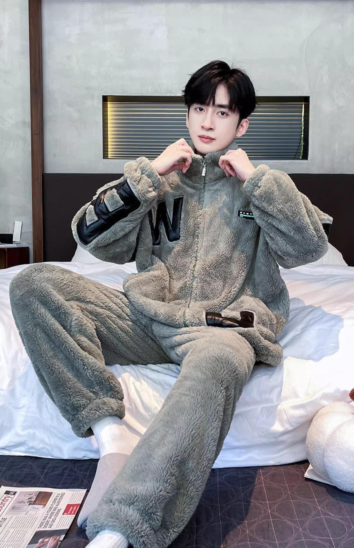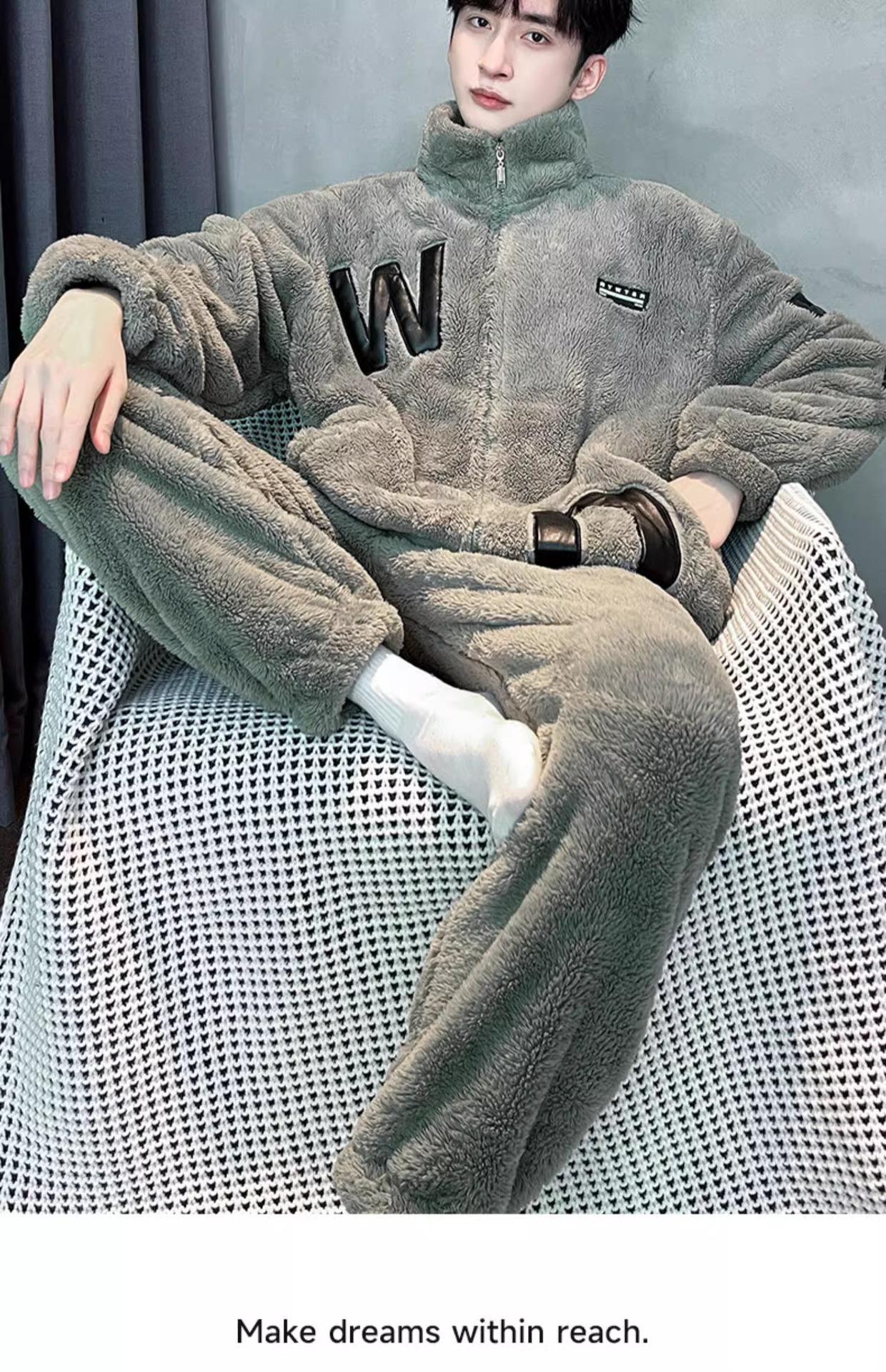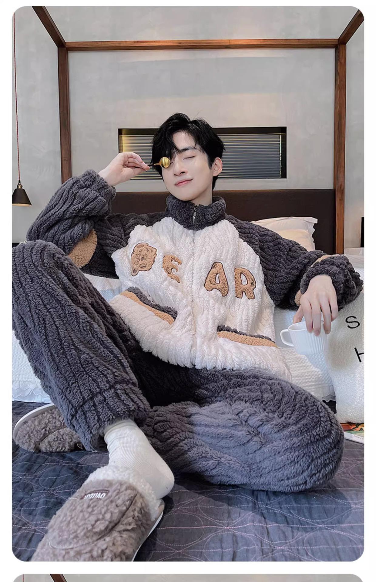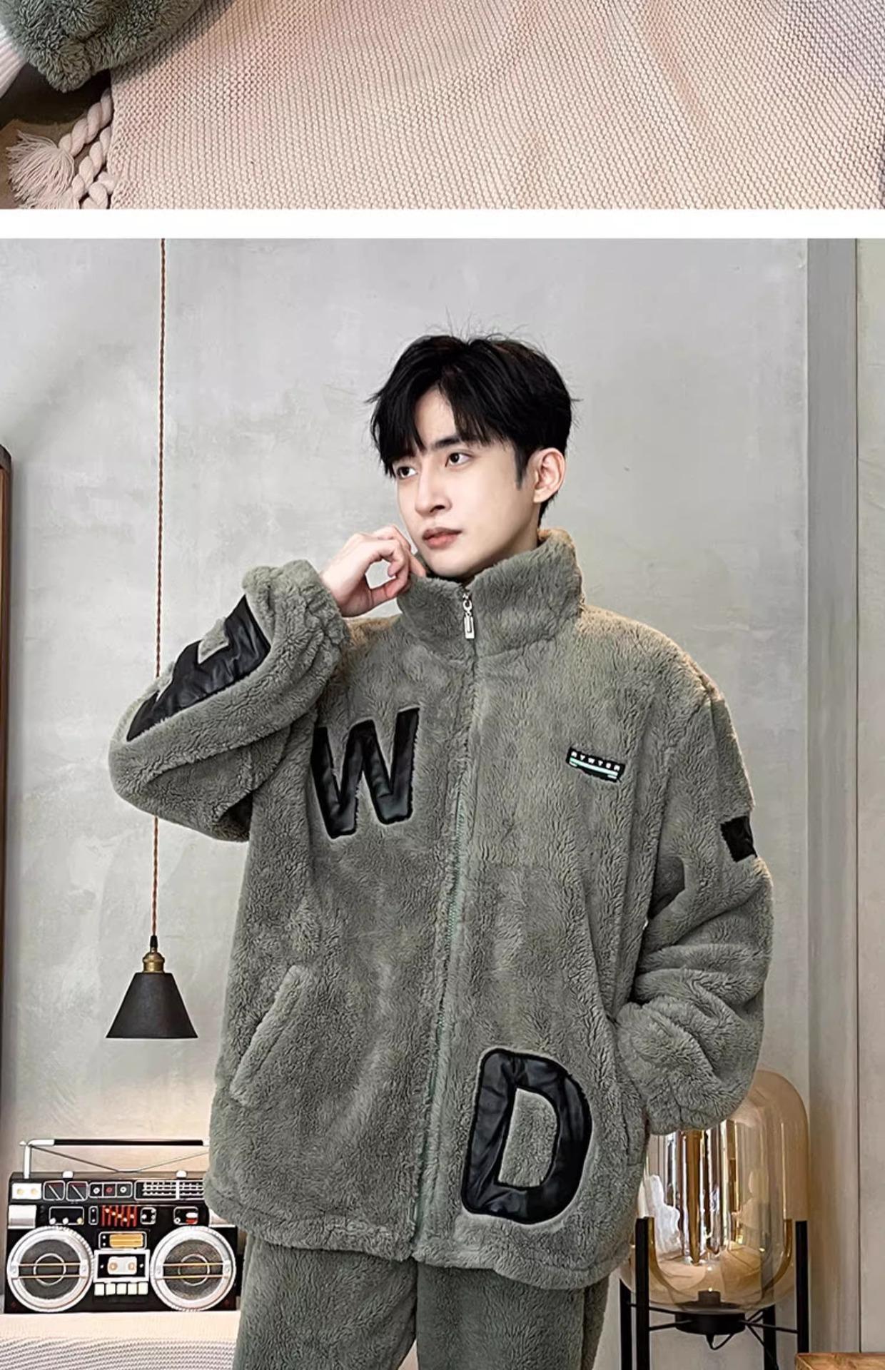 Pijama nuevo para hombre, de invierno, de franela polar coral con cremallera, forro polar grueso, ropa de casa, traje de talla grande