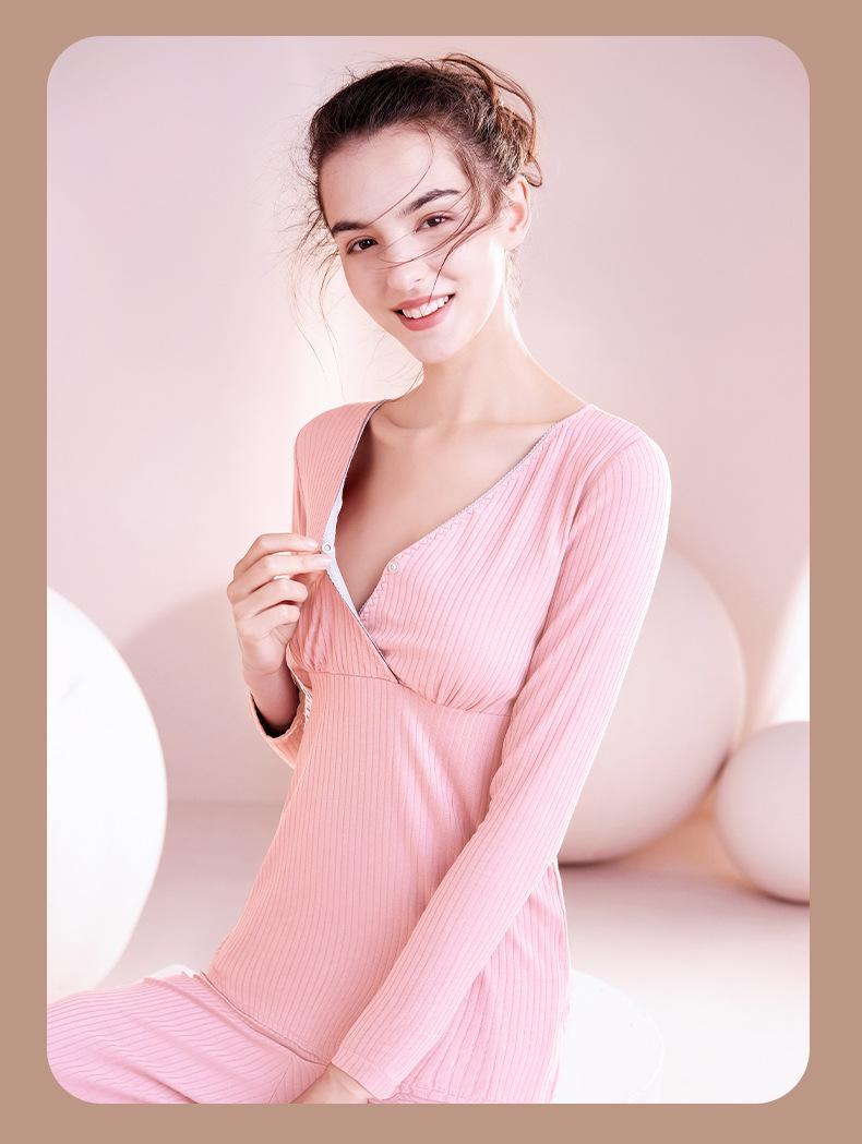 Traje de ropa de confinamiento de talla grande, pijama de maternidad para lactancia, verano fino, absorbente de sudor, posparto, lactancia, primavera y otoño, ropa de casa para mujer