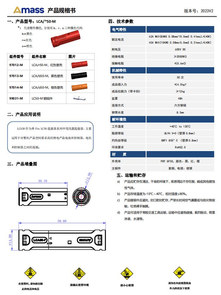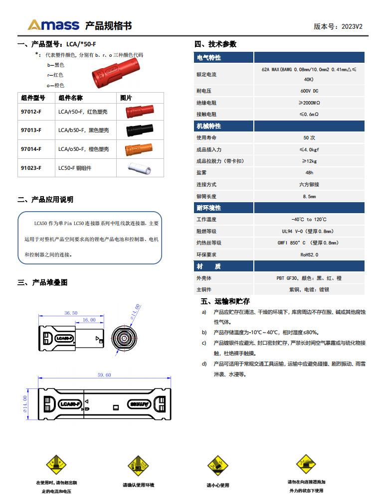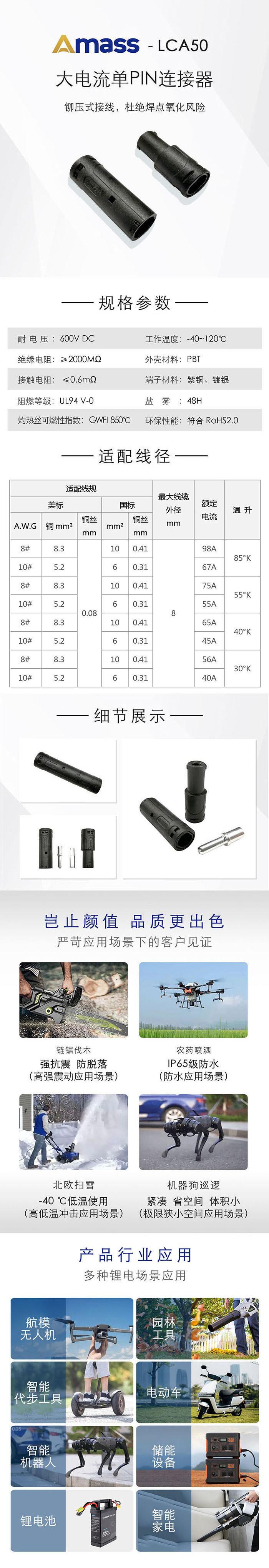 Nuevo conector de CC Amass Ames LCA50D-M/F con remaches de un solo PIN para alta corriente