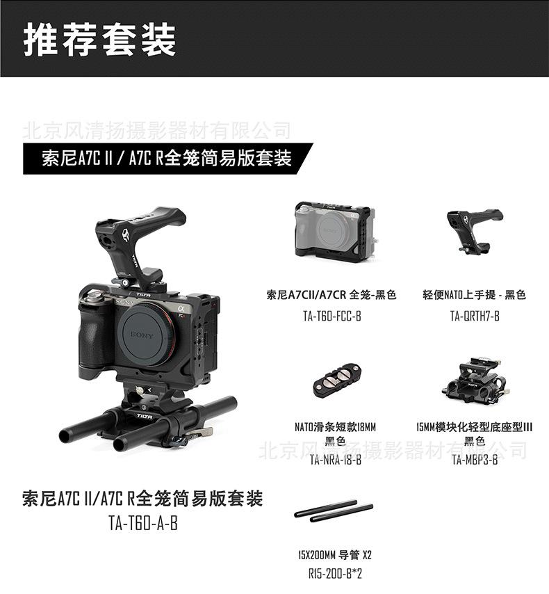 Cabezal de hierro TILTA TA-T60 compatible con el marco de expansión de la cámara de jaula para conejos A7C II/A7CR, jaula completa A7C2