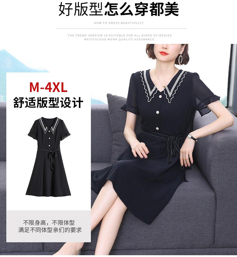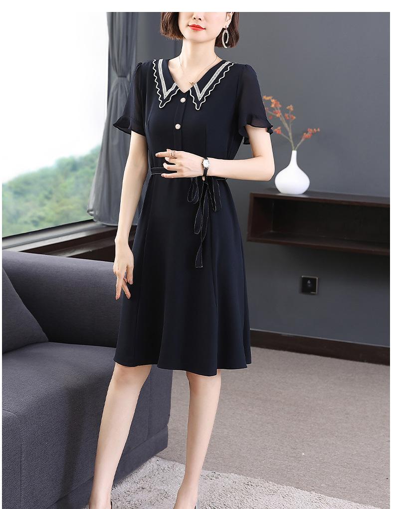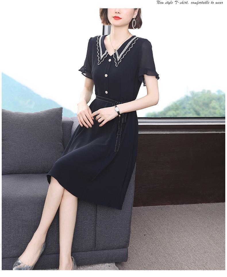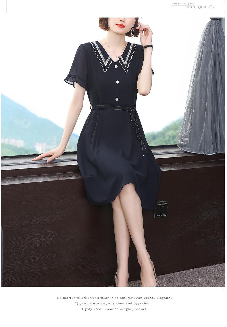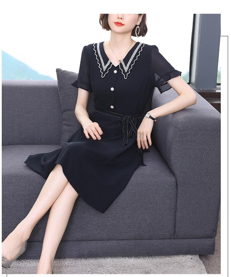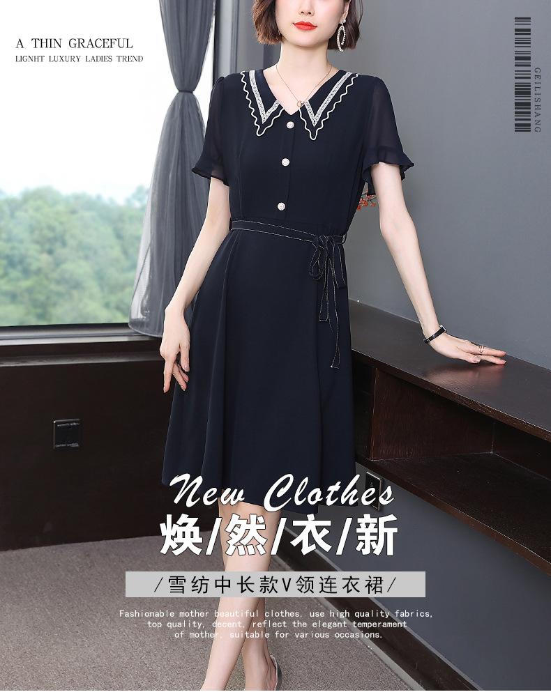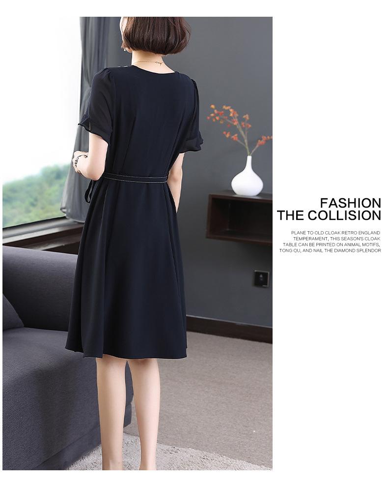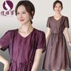 Vestido de gasa para mujer, verano 2023, nuevo, adelgazante, que cubre el vientre, elegante, de manga corta, para mujeres de mediana edad.