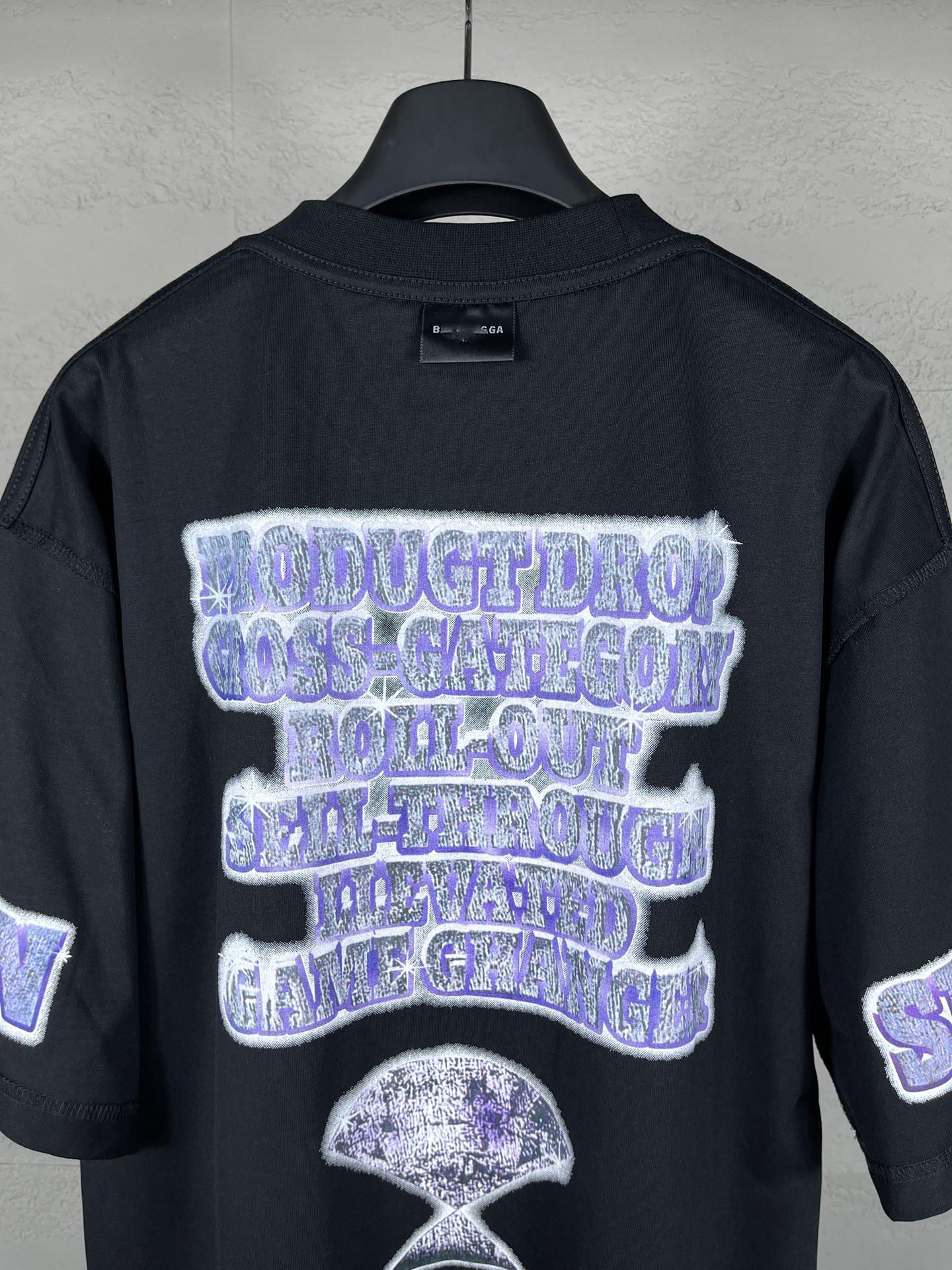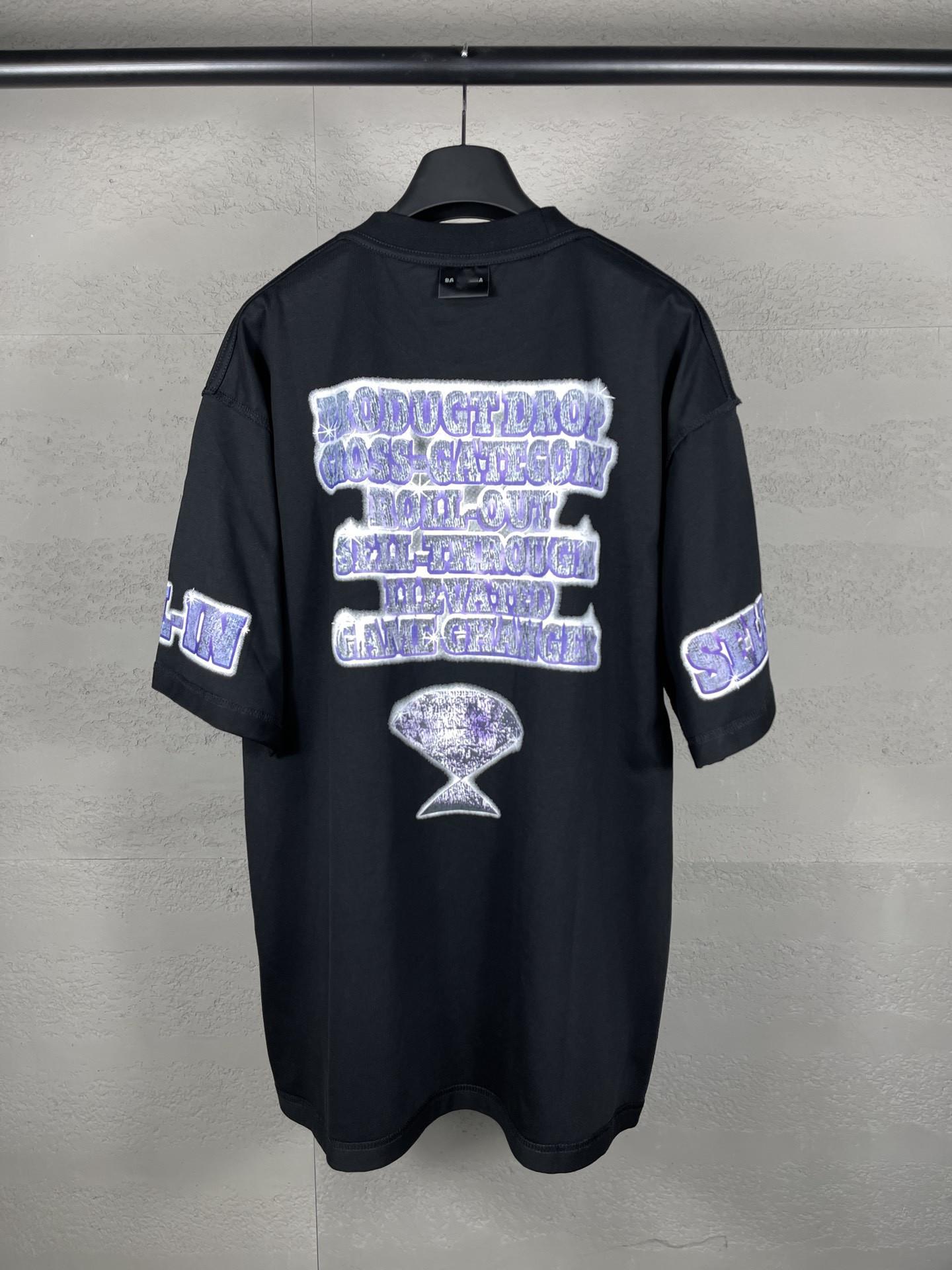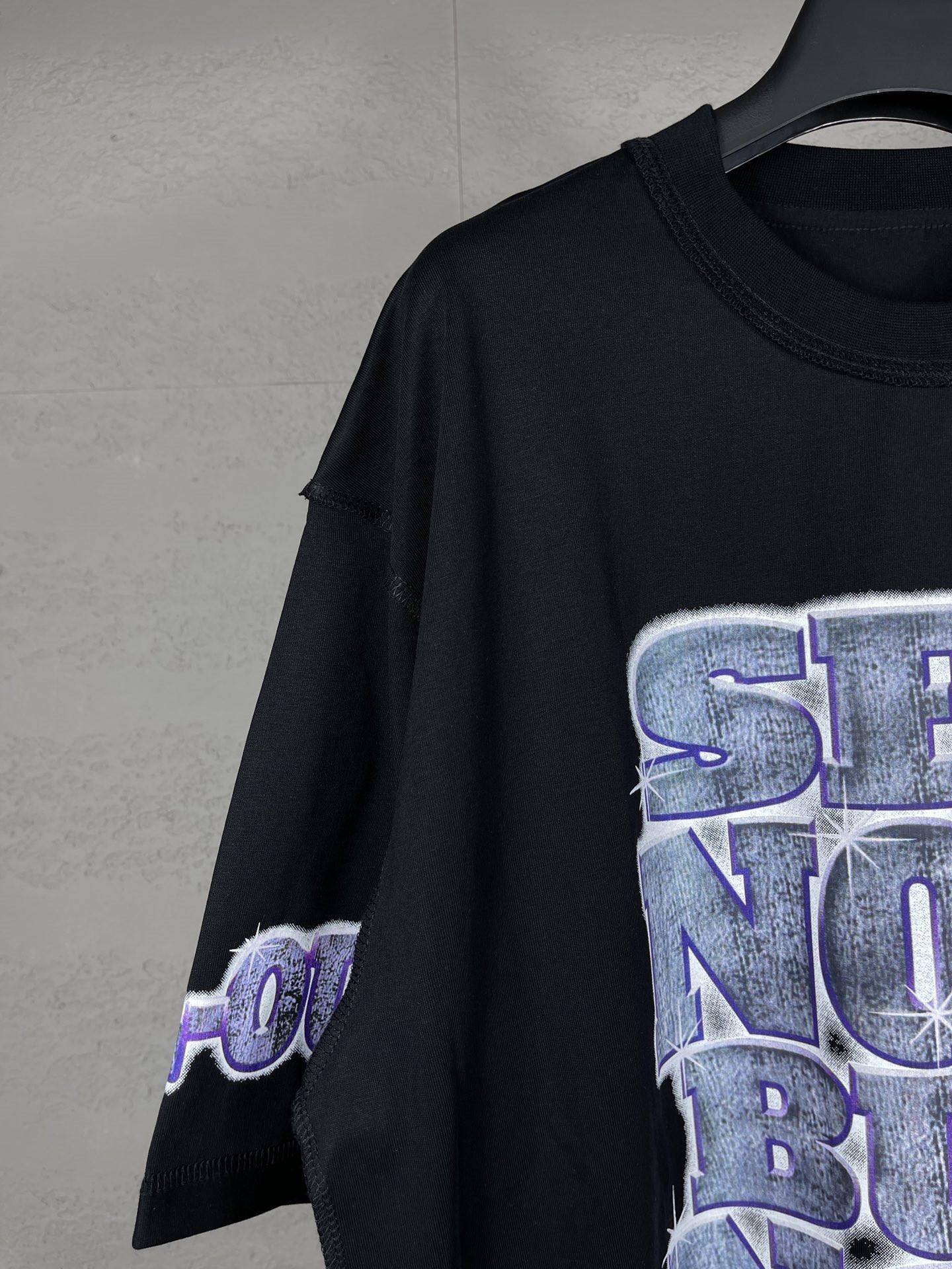 Dujia Versión 2023 Nuevo Modelo Primavera Temprana Familia B Logo Grande Estampado de Letras por Rociado Directo Camisetas de Manga Corta Lavadas para Hombre y Mujer