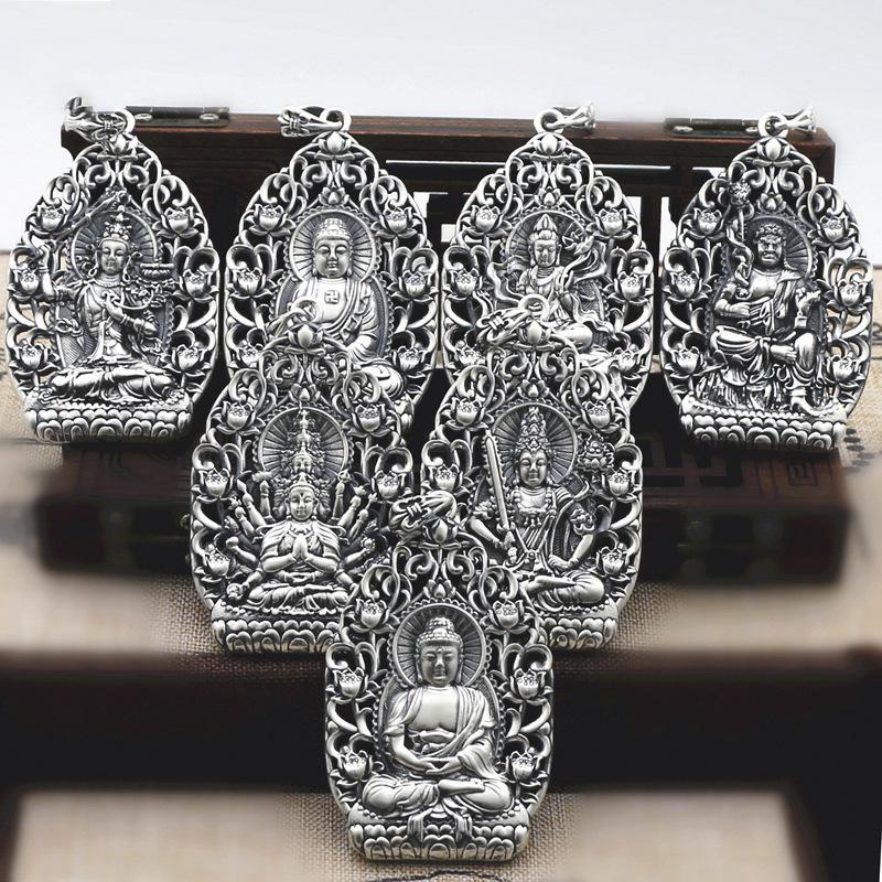 Colgante de Buda del zodíaco en plata de ley. Collar guardián del zodíaco para hombre y mujer. Colgante amuleto del año del zodíaco.