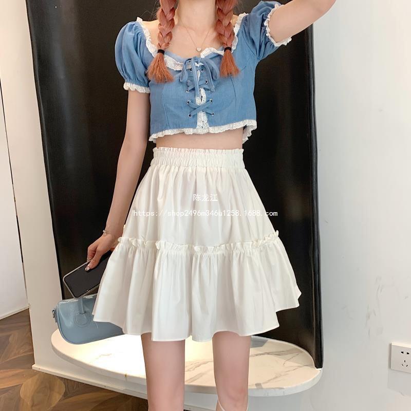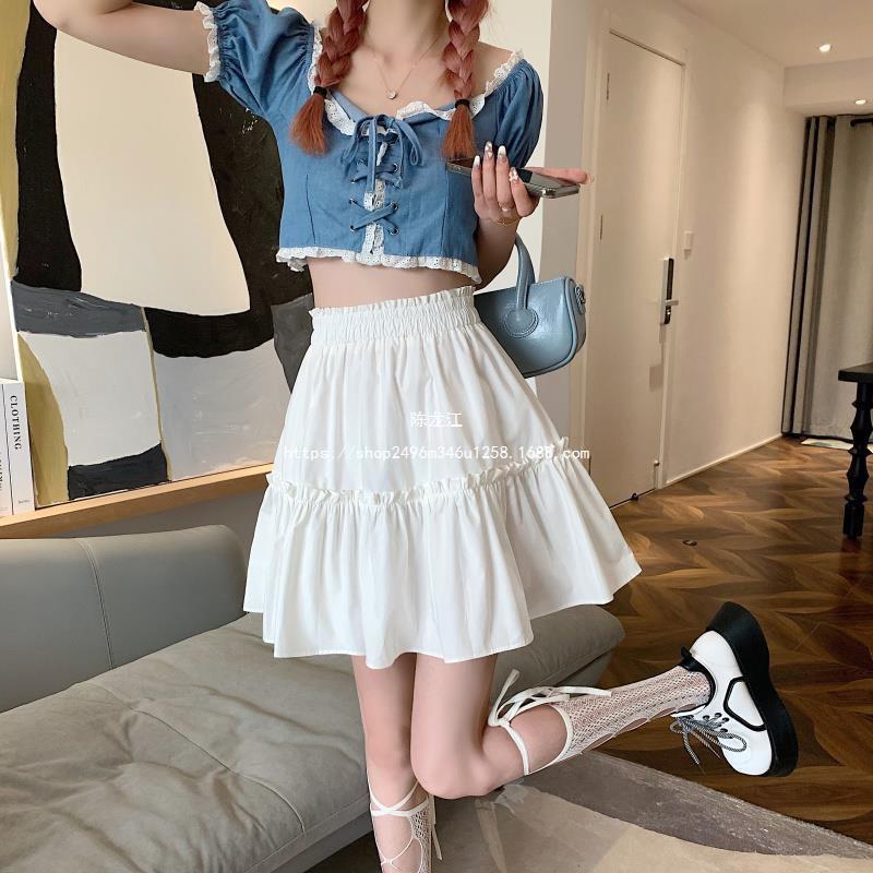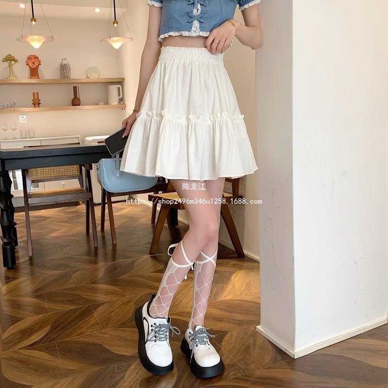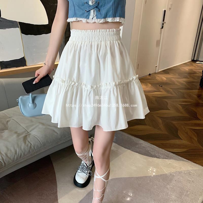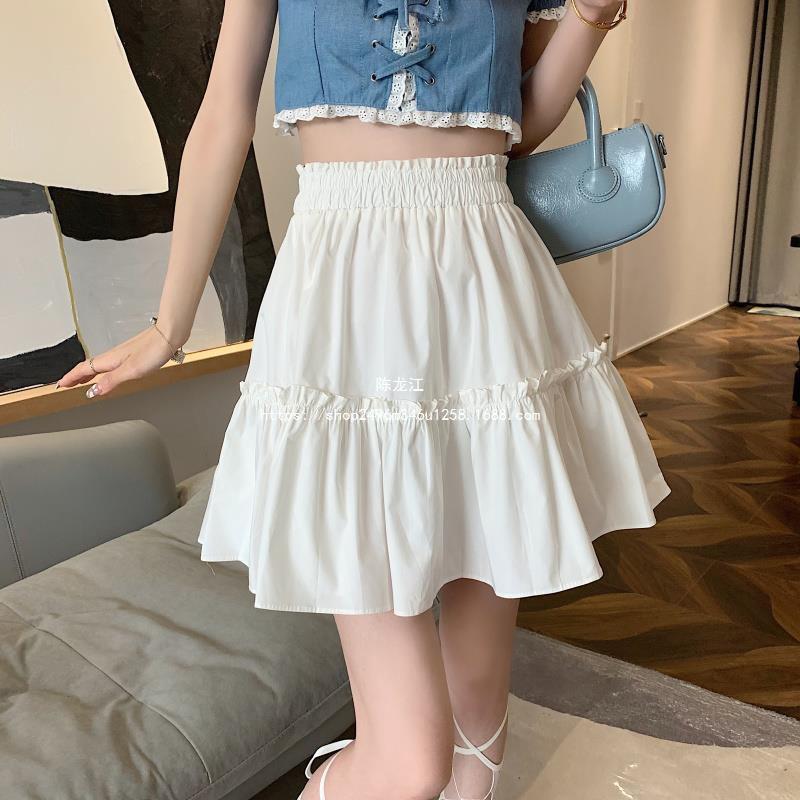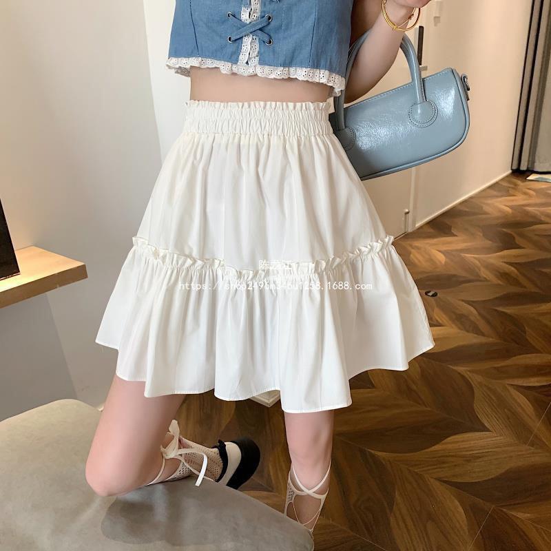Falda de Verano Casual para Mujer Cintura Alta Antideslizante Falda A-line Falda Pastel Ajustada a la Cintura Temporada Falda Abullonada Blanca
