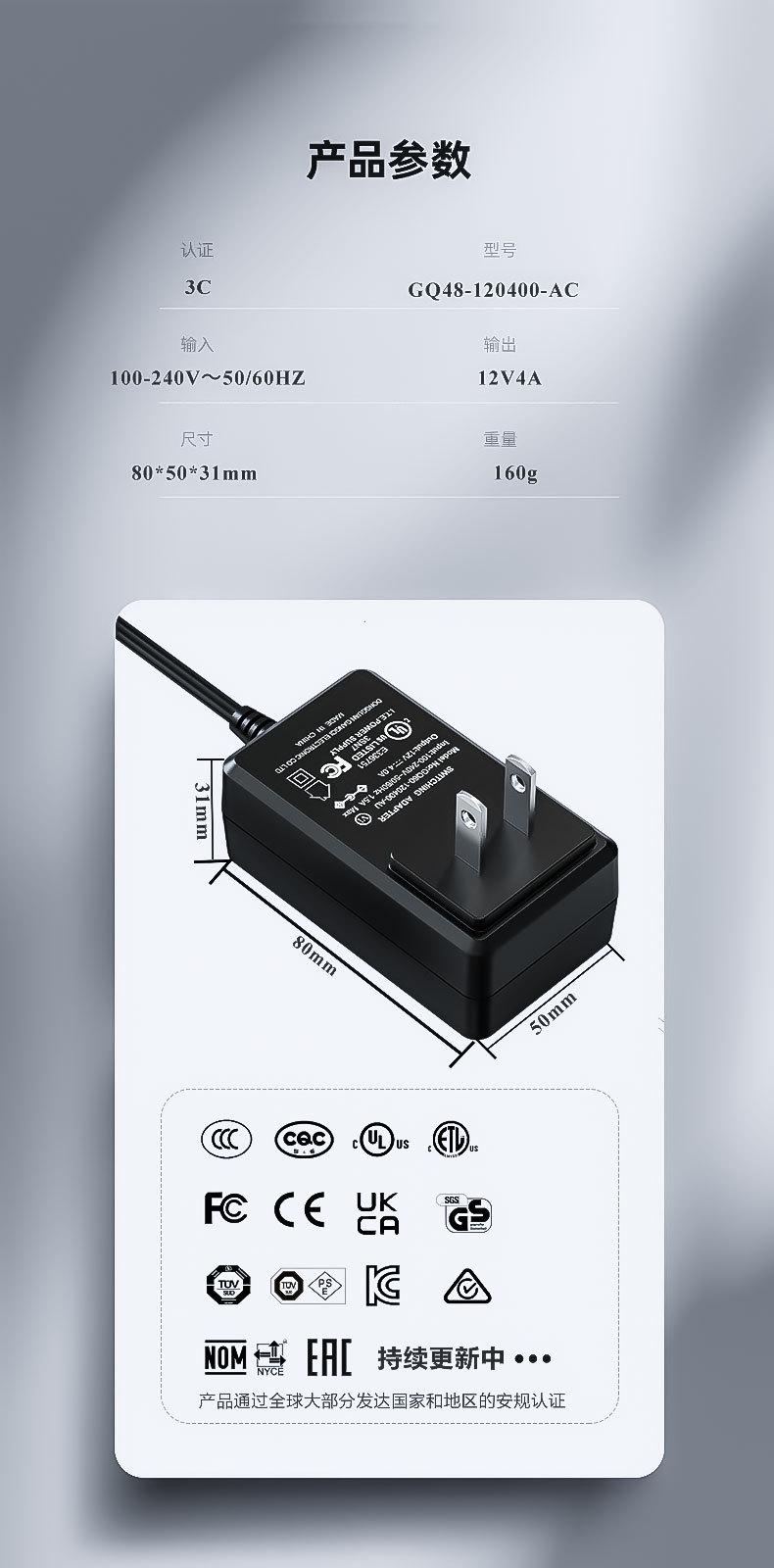 Adaptador de Corriente 12V Estándar Americano con Certificación UL 12V4A Masajeador para Cartelera 48W Fuente de Alimentación de Alta Potencia