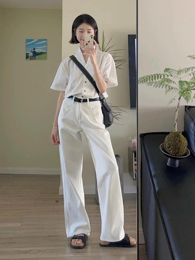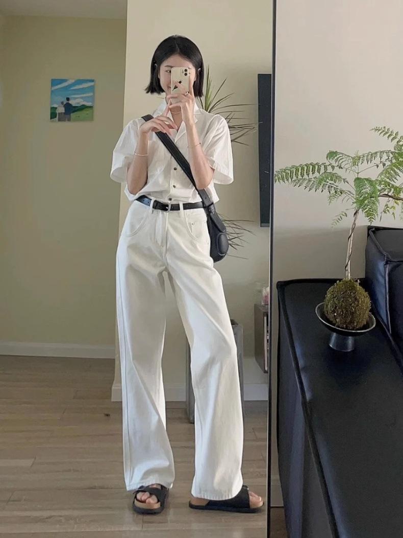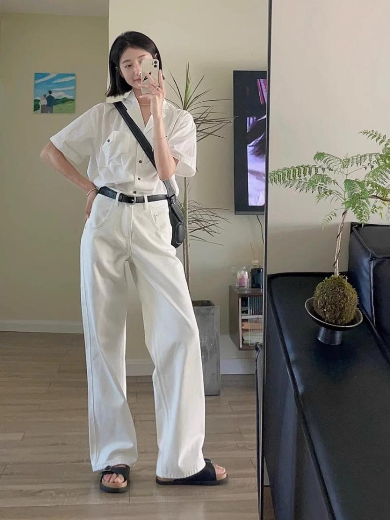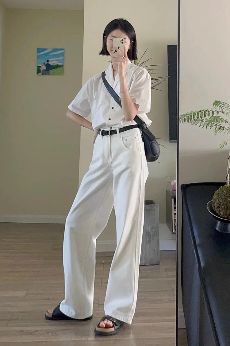 Jeans rectos blancos para mujer otoño e invierno 2023 nuevos pantalones largos de pierna ancha y cintura alta adelgazantes de talla grande