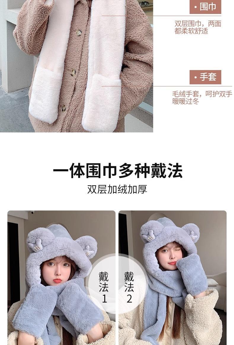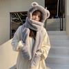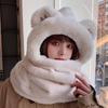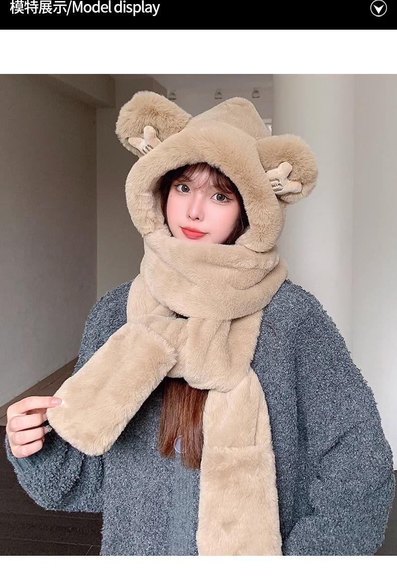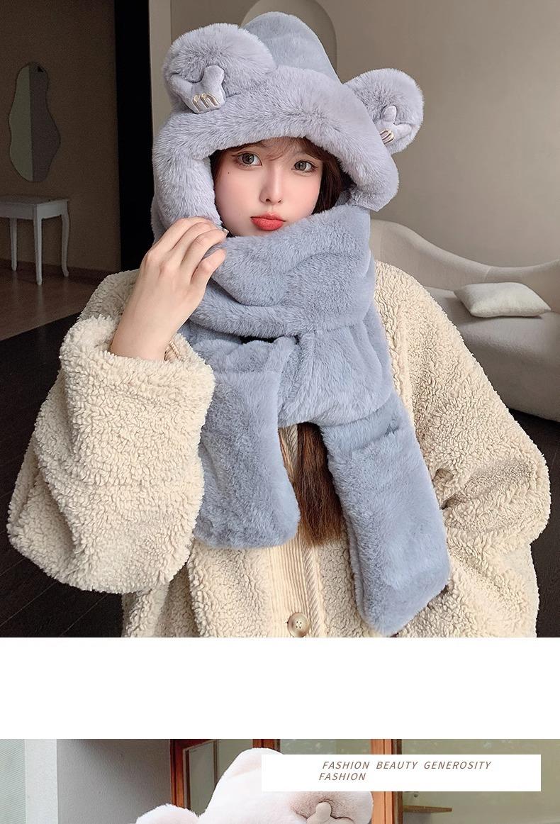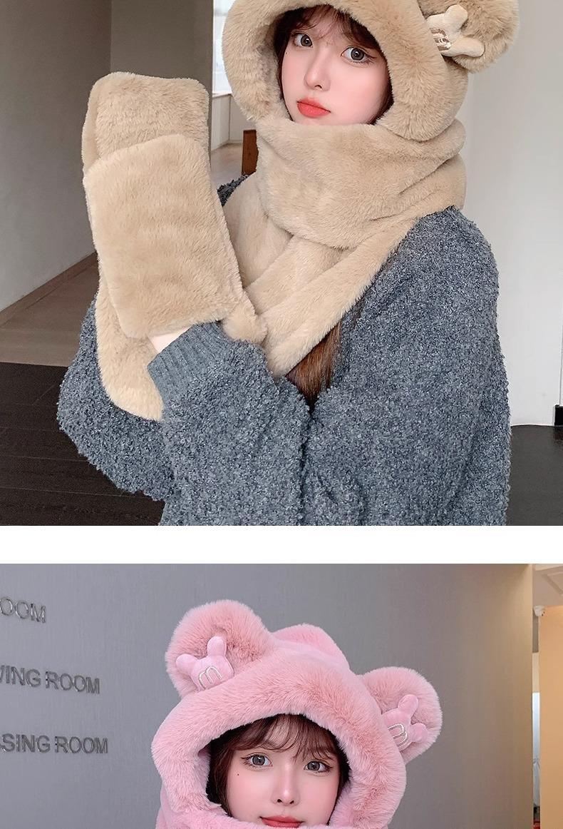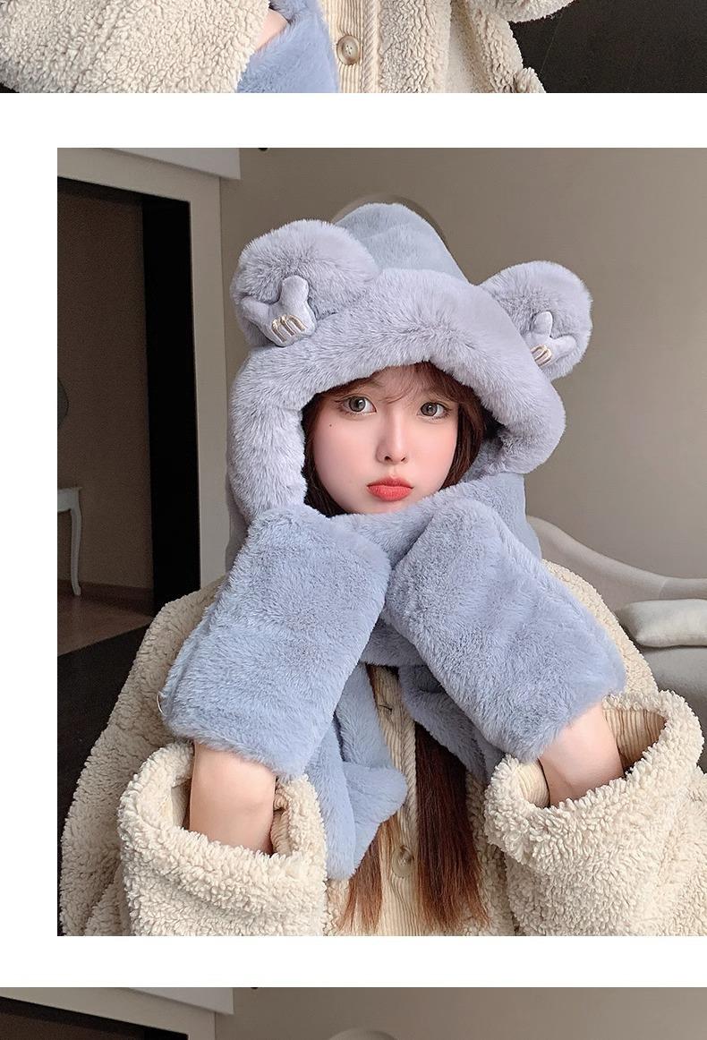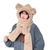 Sombrero de Oso Set de Tres Piezas para Mujer Invierno Otoño Bufanda con Capucha Integrada Guantes Cálidos Protección para las Orejas Calentador de Cuello Invierno Bordado de Letras