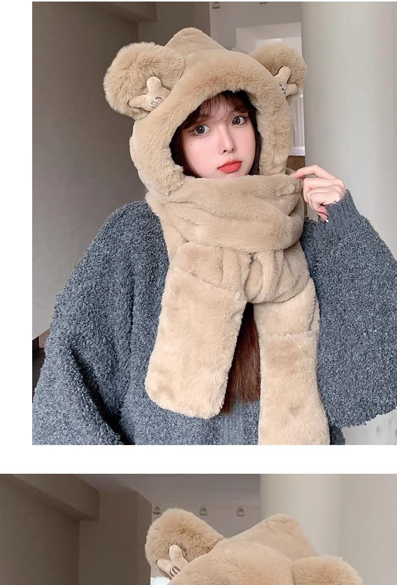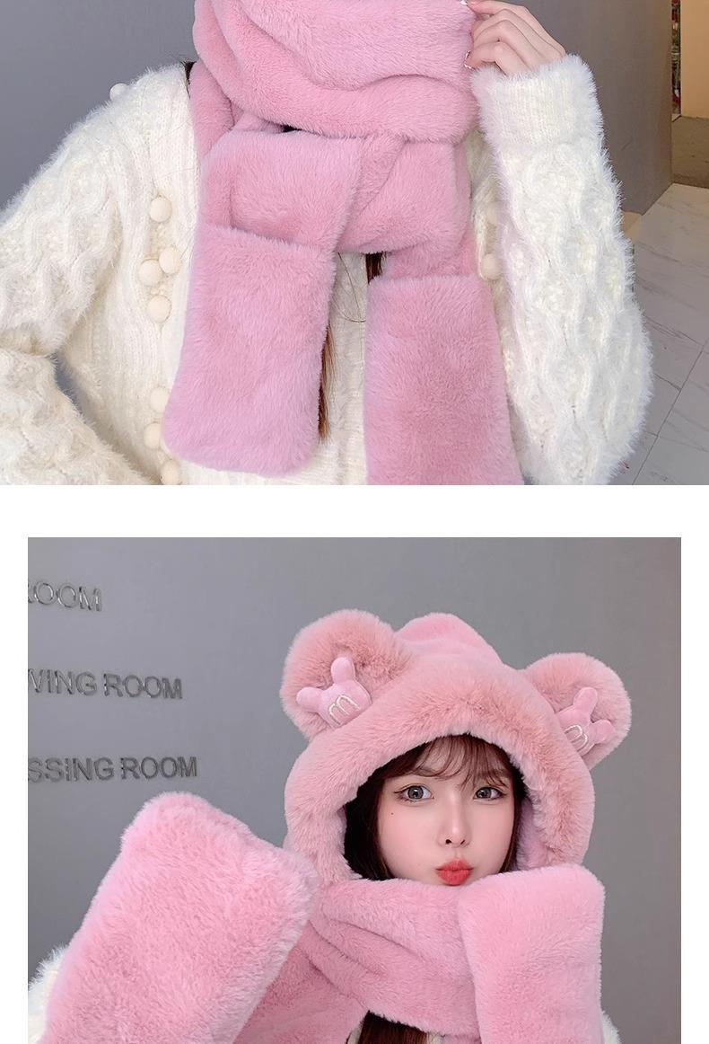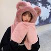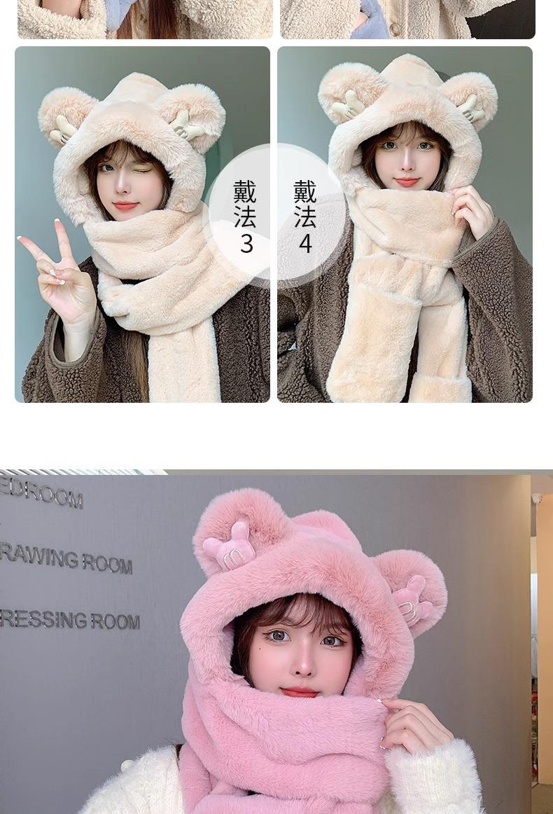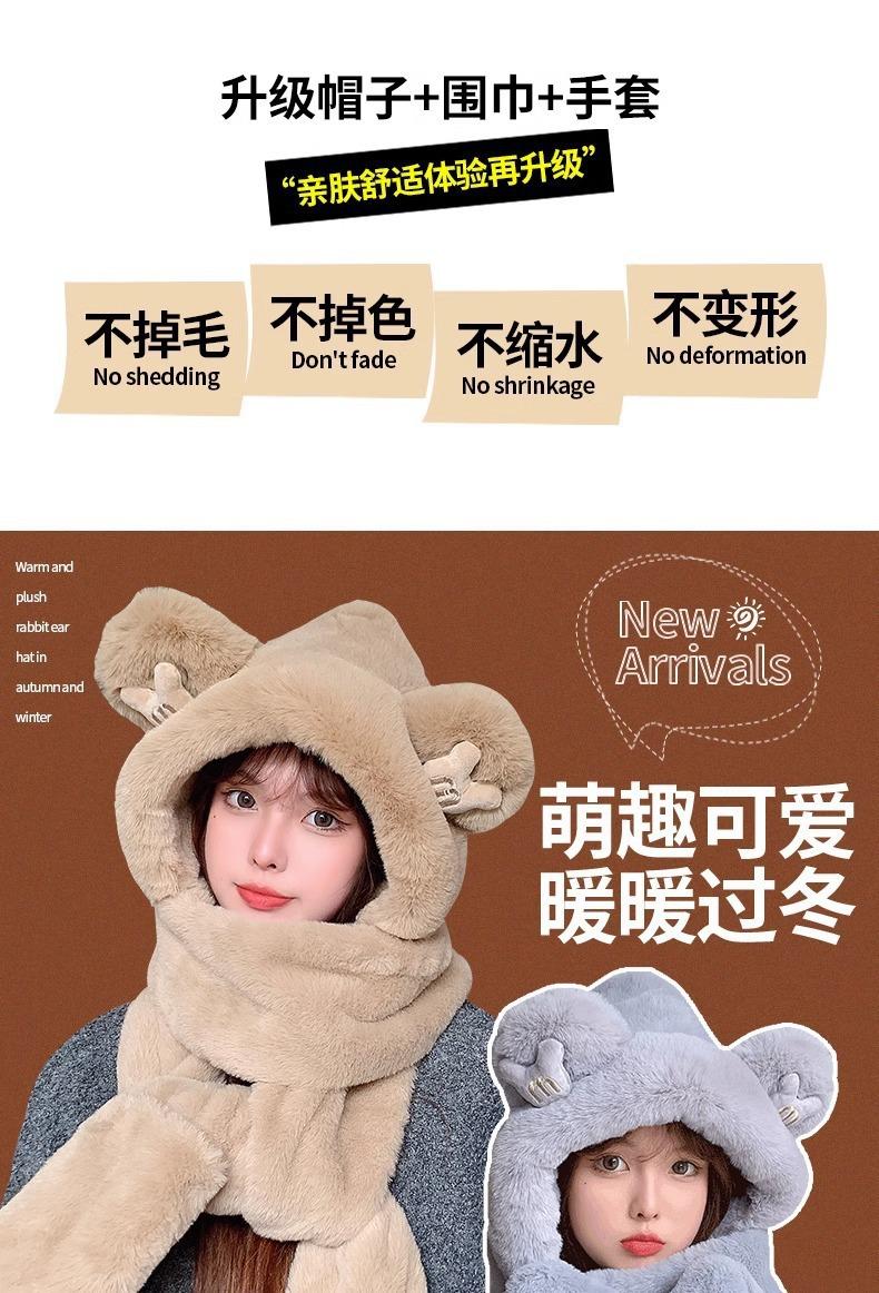 Sombrero de Oso Set de Tres Piezas para Mujer Invierno Otoño Bufanda con Capucha Integrada Guantes Cálidos Protección para las Orejas Calentador de Cuello Invierno Bordado de Letras