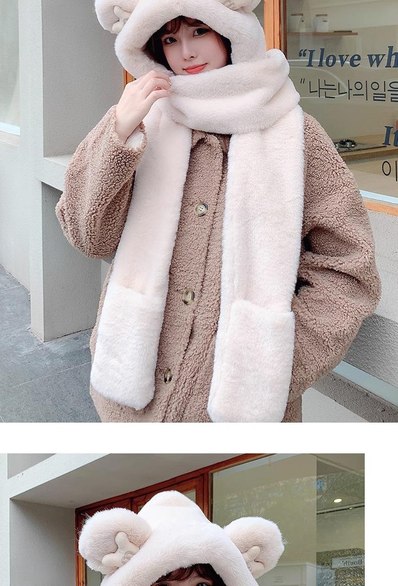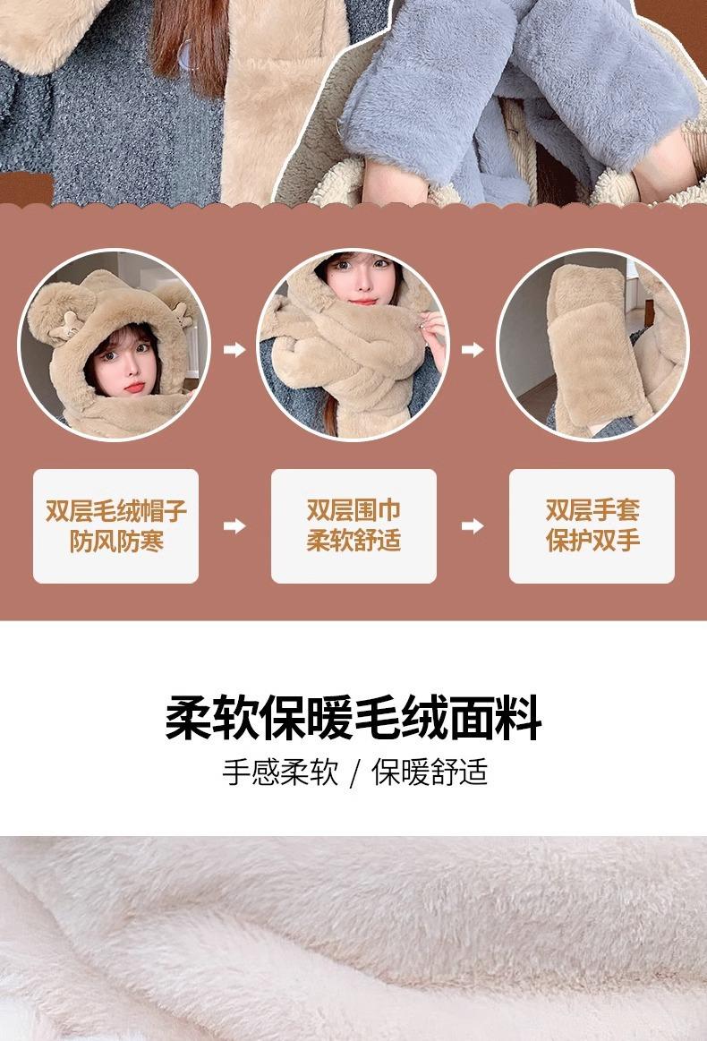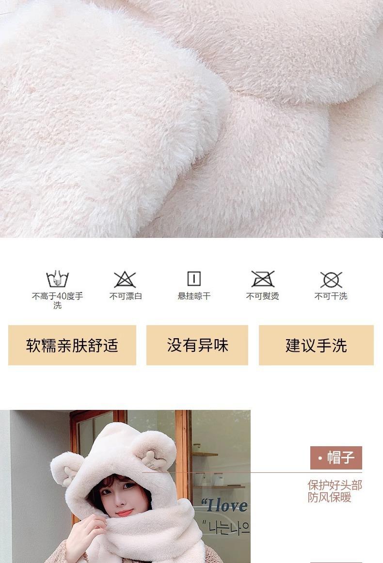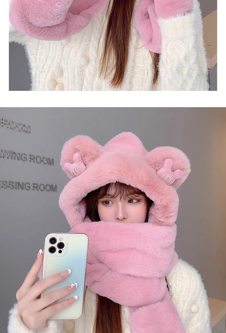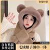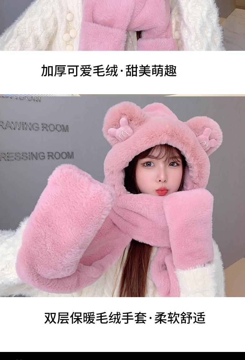 Sombrero de Oso Set de Tres Piezas para Mujer Invierno Otoño Bufanda con Capucha Integrada Guantes Cálidos Protección para las Orejas Calentador de Cuello Invierno Bordado de Letras