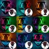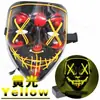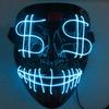 Máscara luminosa de Halloween en stock, máscara LED de terror con palabra V negra, mueca EL, accesorios de atmósfera fluorescente, venta al por mayor
