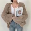 Cárdigan Suéter Chaqueta Tejida de Manga Linterna de Color Puro Casual Suelto Versátil Cuello en V Estilo Perezoso Envío Directo Lazada para Mujer