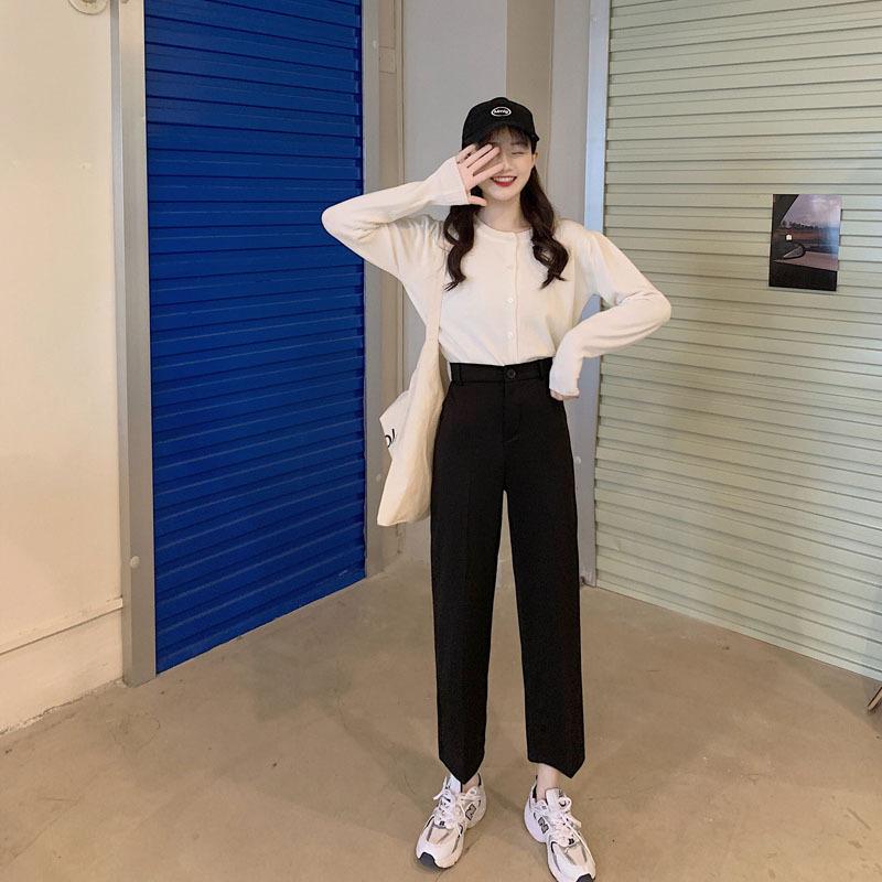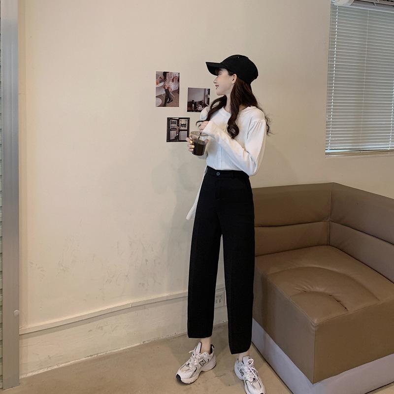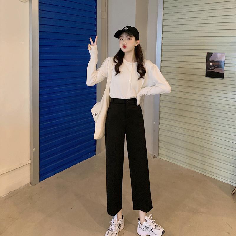 Pantalones anchos para mujer, primavera y otoño 2023, holgados, a la moda, combinables, informales, rectos, de cintura alta, para estudiantes.