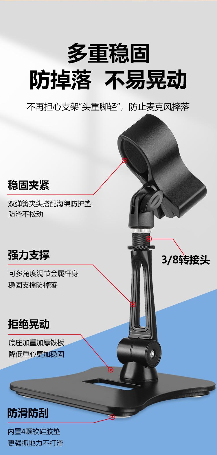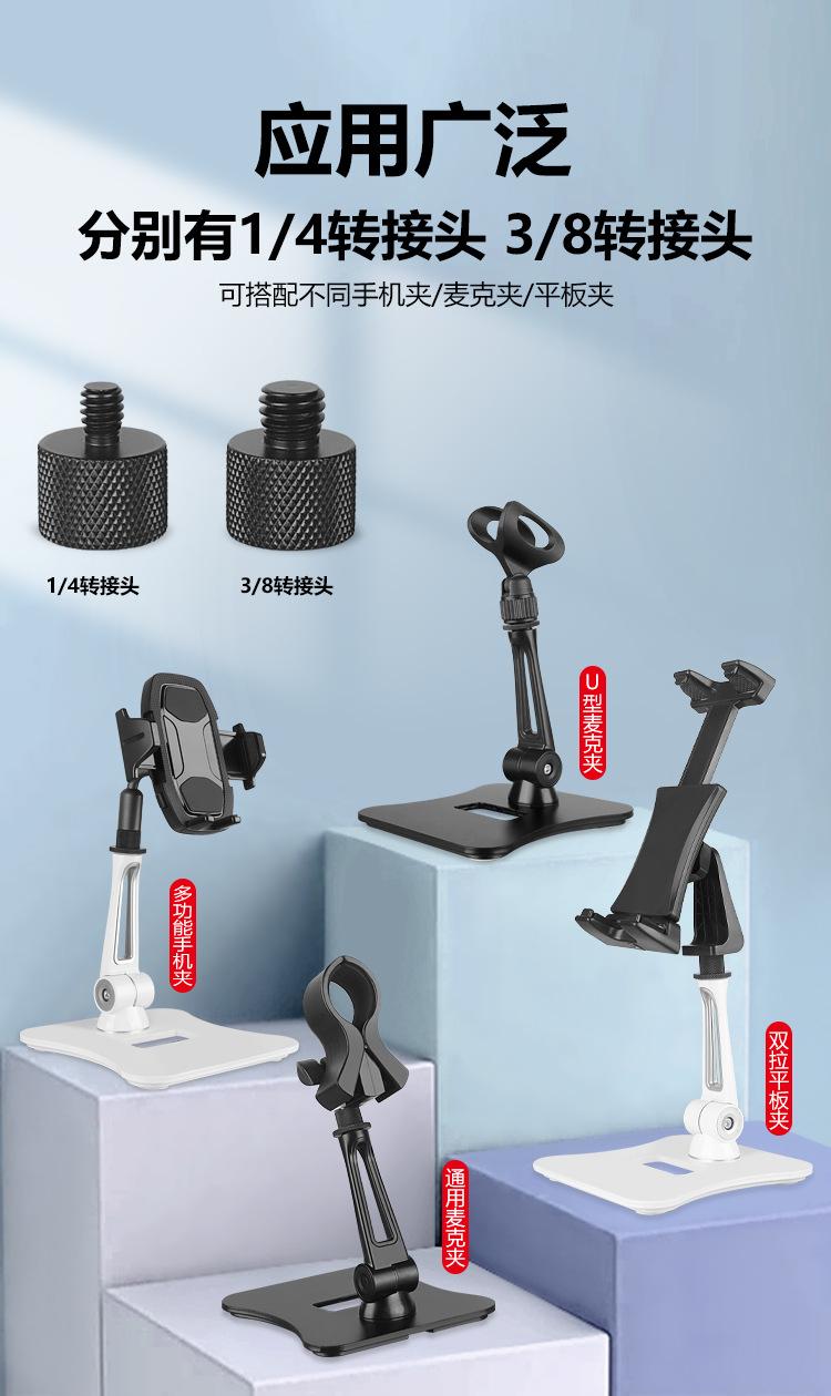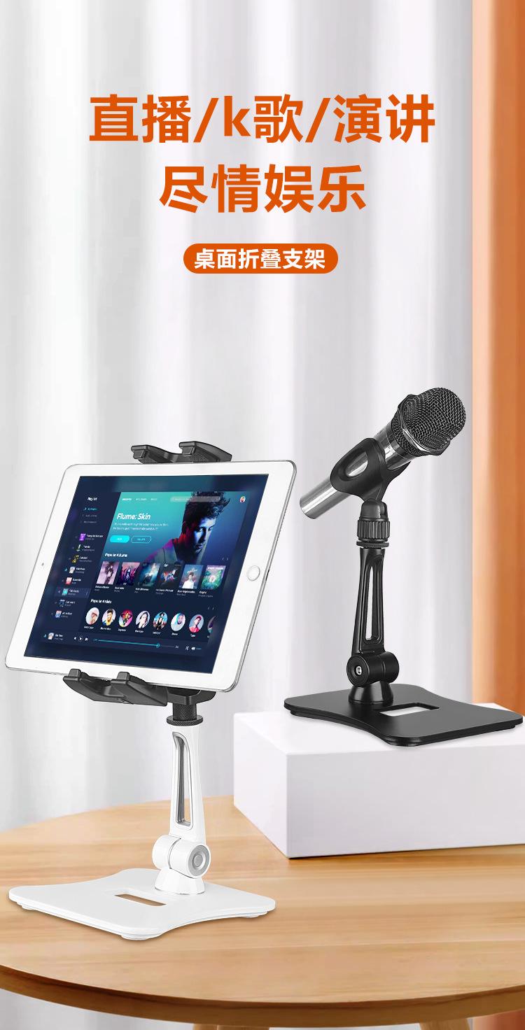 Micrófono micrófono teléfono móvil en vivo de escritorio soporte universal plegable ajuste escritorio tableta computadora clip soporte base