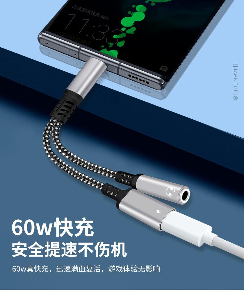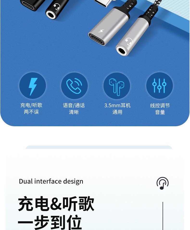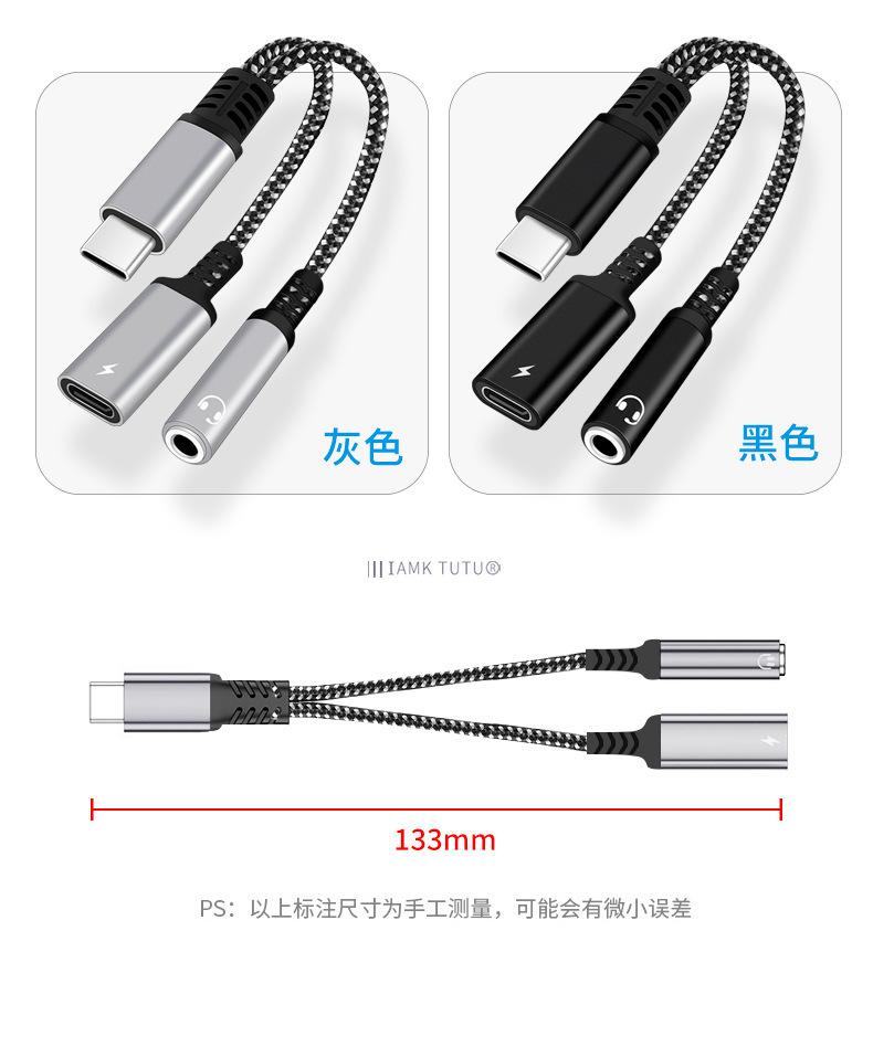 TYPE-C to TYPE-C female + DC3.5mm gray