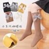 Calcetines para niños primavera y verano 2024 calcetines hasta la pantorrilla de color caramelo de color sólido para niñas calcetines de media pantorrilla de rizo de malla con lazo al por mayor