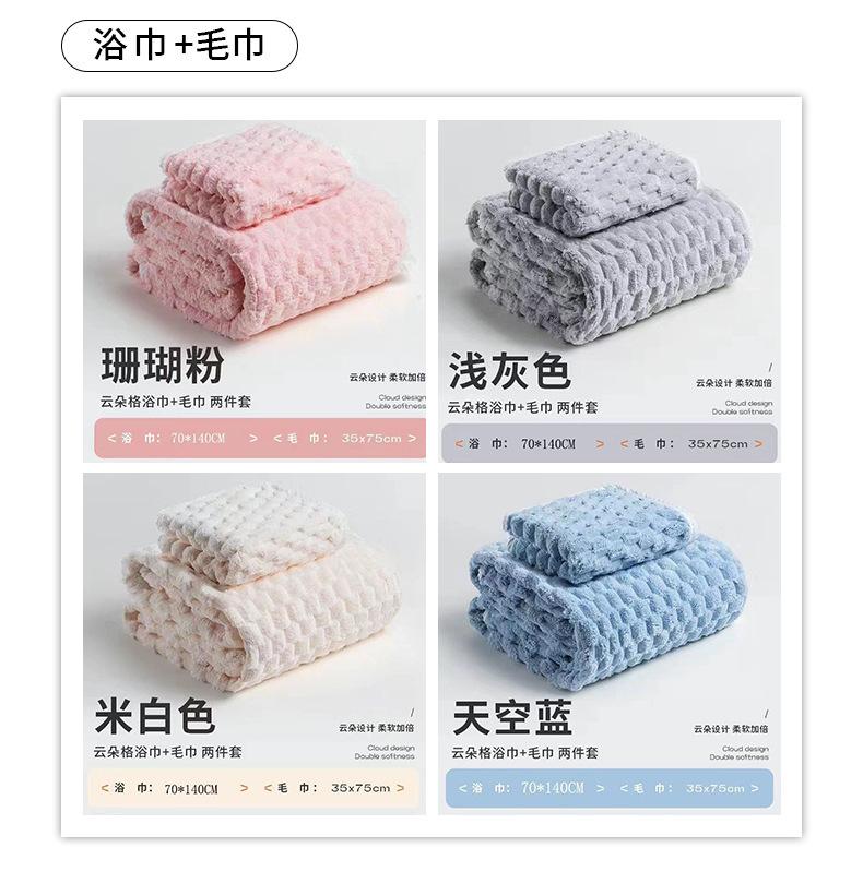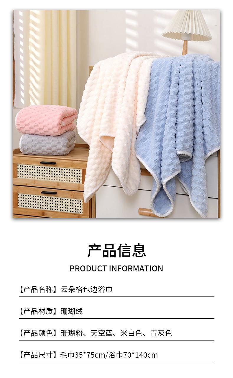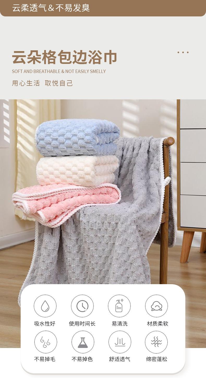 Toalla de baño de celosía de nube nueva vellón coral adulto toalla facial absorbente no fácil de soltar pelo baño suave gruesa toalla facial