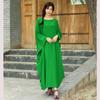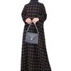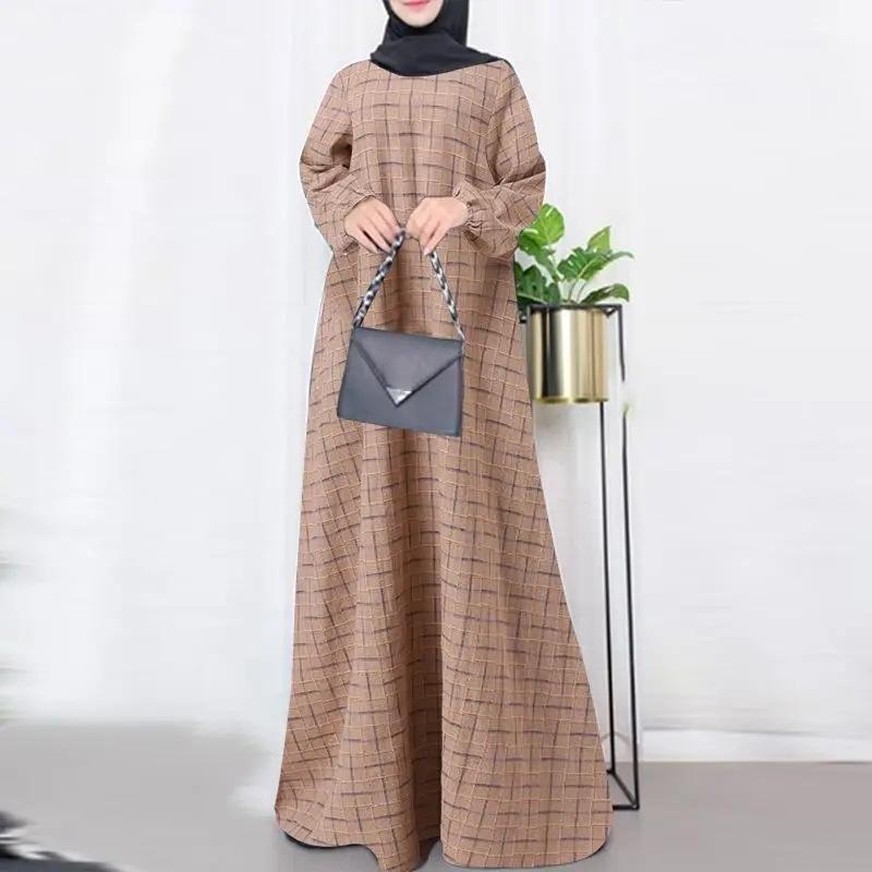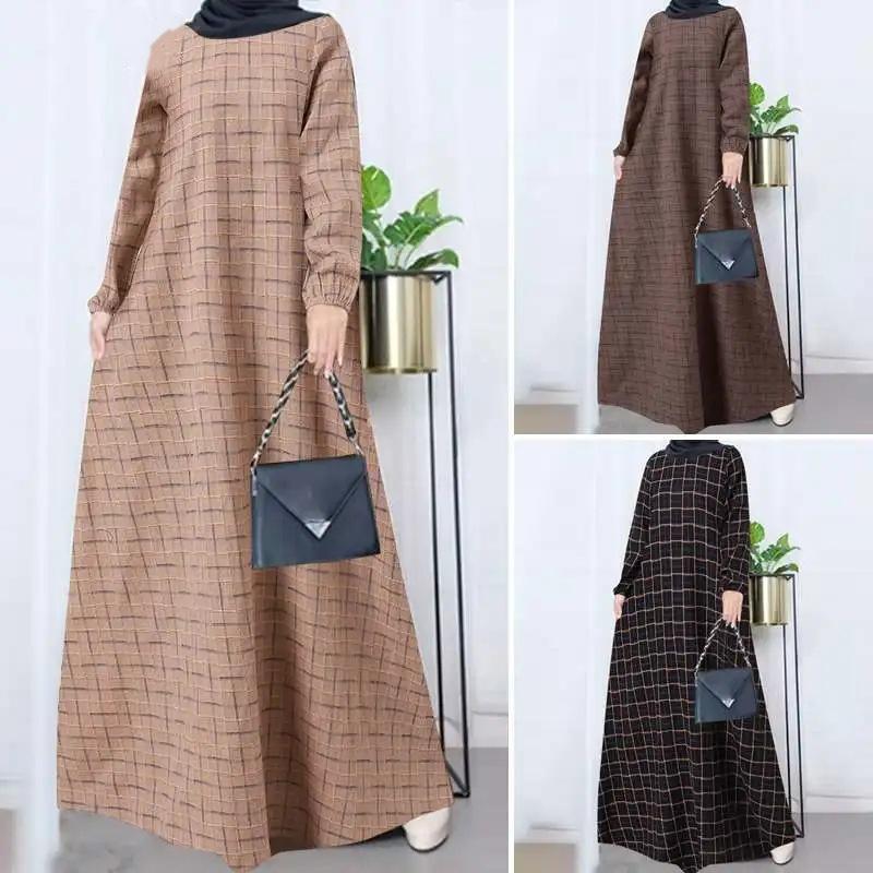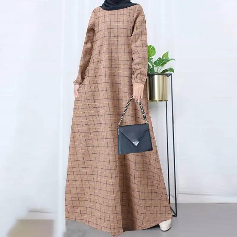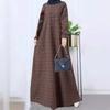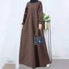 Vestido Largo de Algodón y Lino Vintage de Manga Larga a Cuadros con Cuello Redondo para Mujer Musulmana, Bata Suelta de Estilo Étnico para Primavera y Otoño