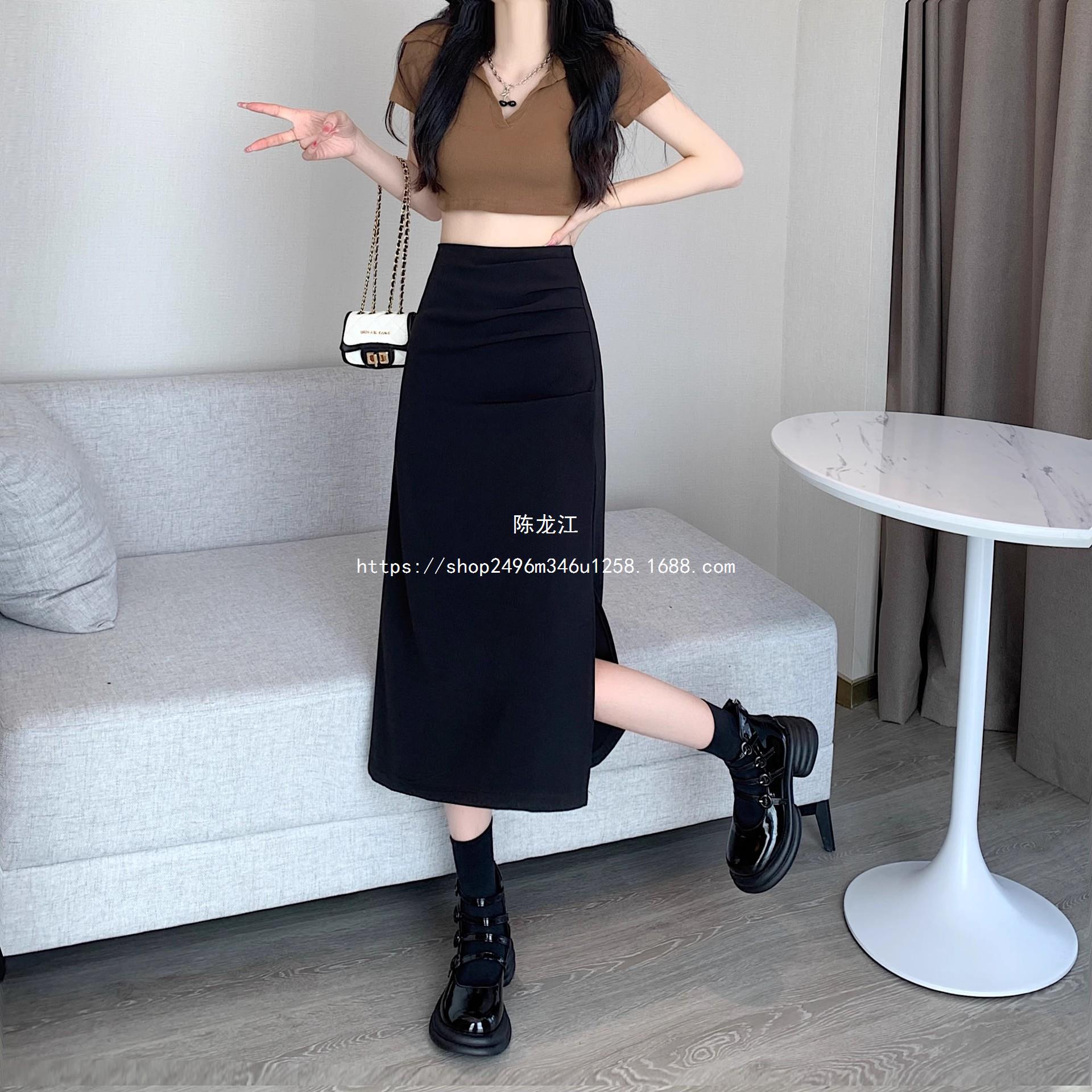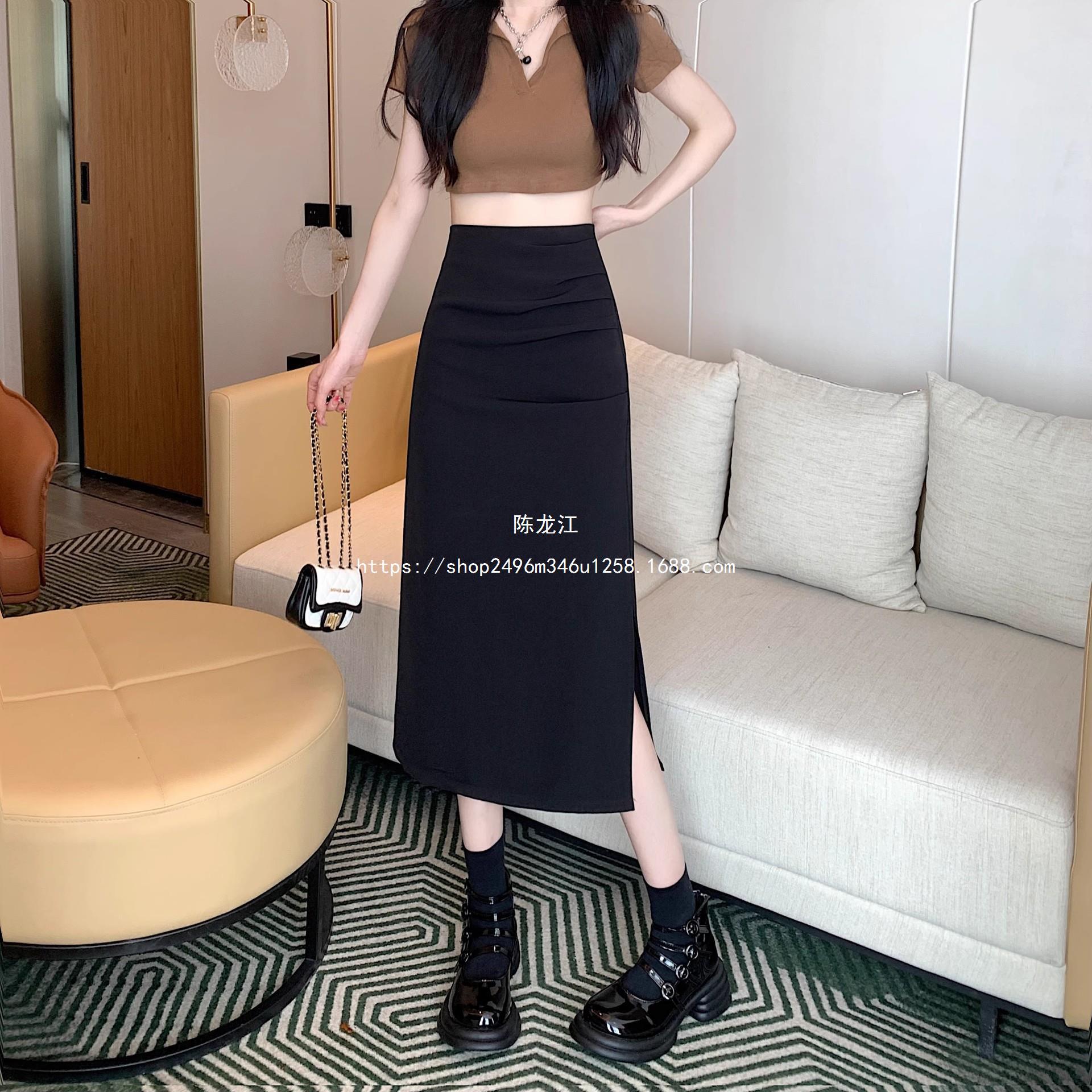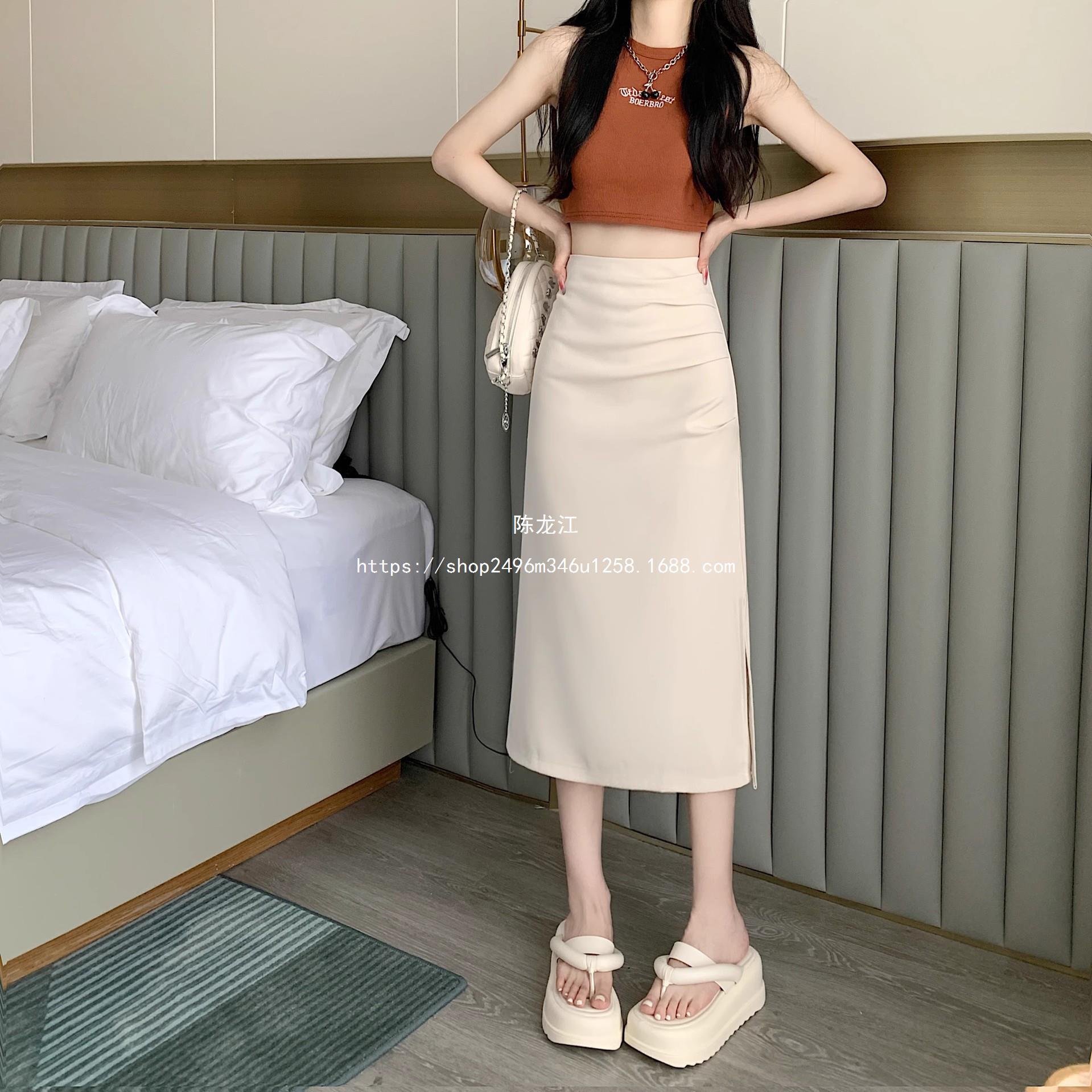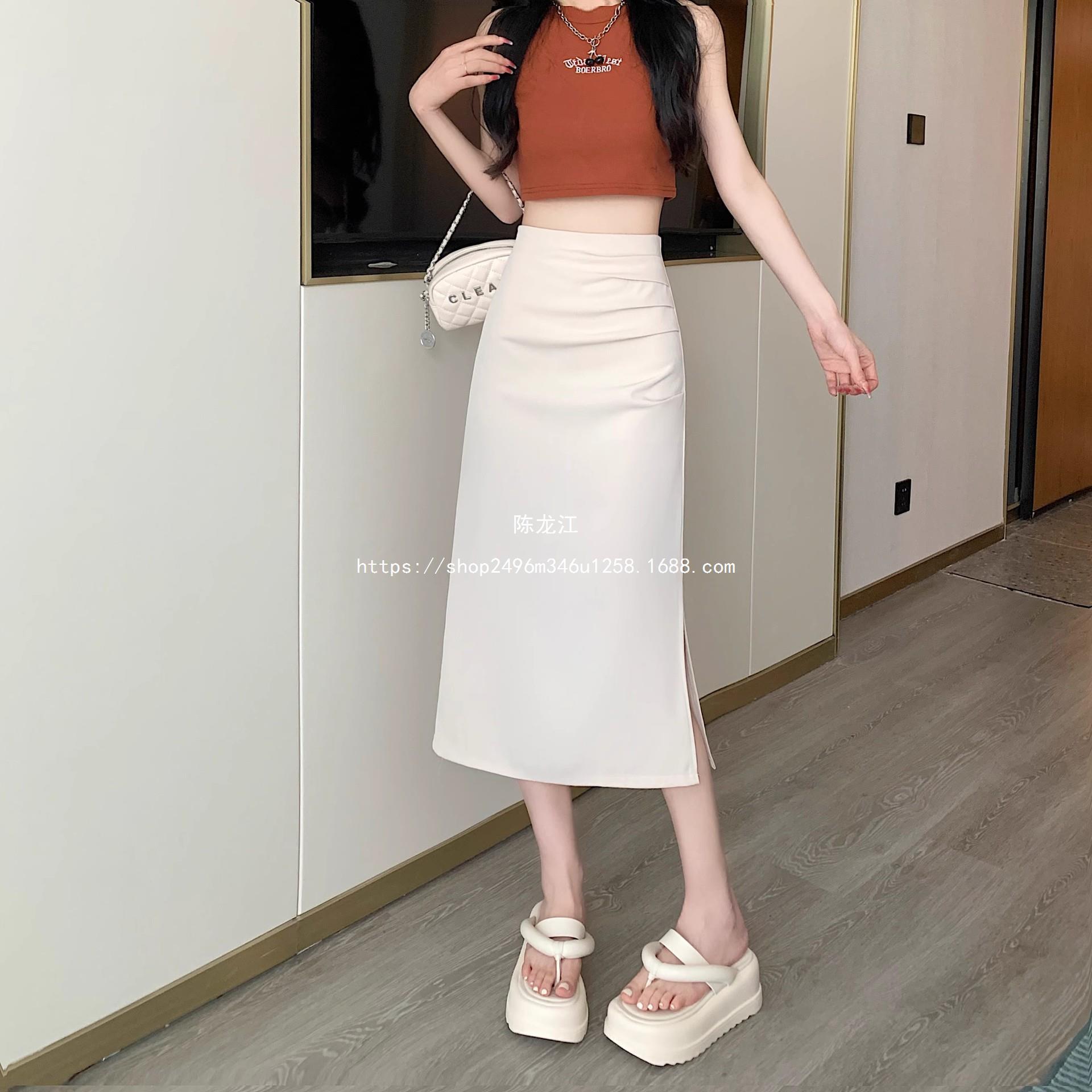 Falda acampanada de talle alto con abertura Semestre 2024 Falda plisada a la cadera Falda recta Nuevo estilo Falda de verano para mujer de largo medio