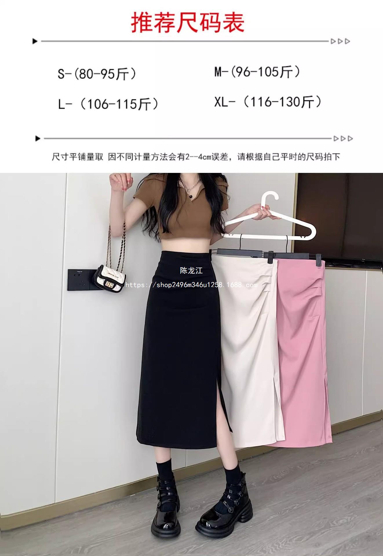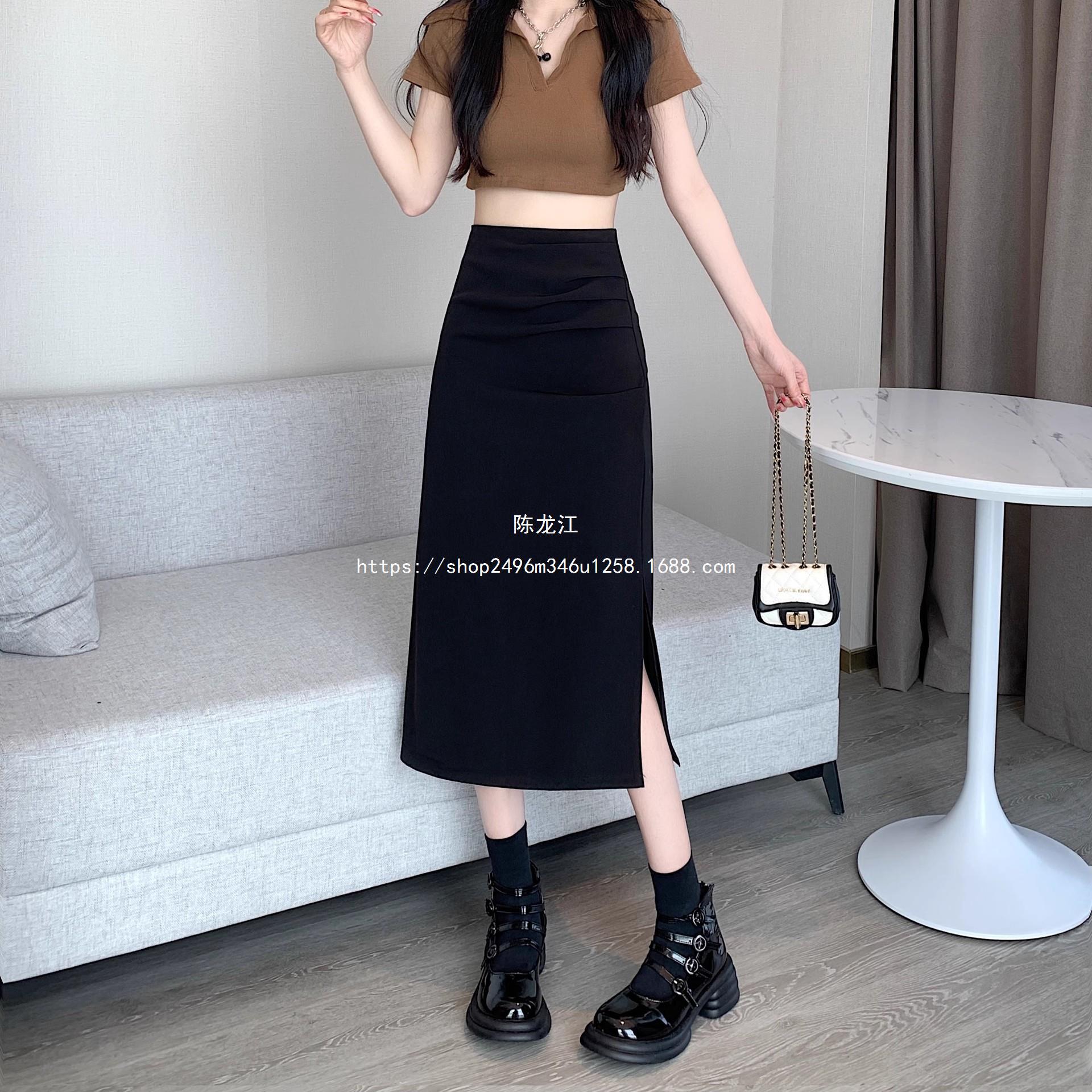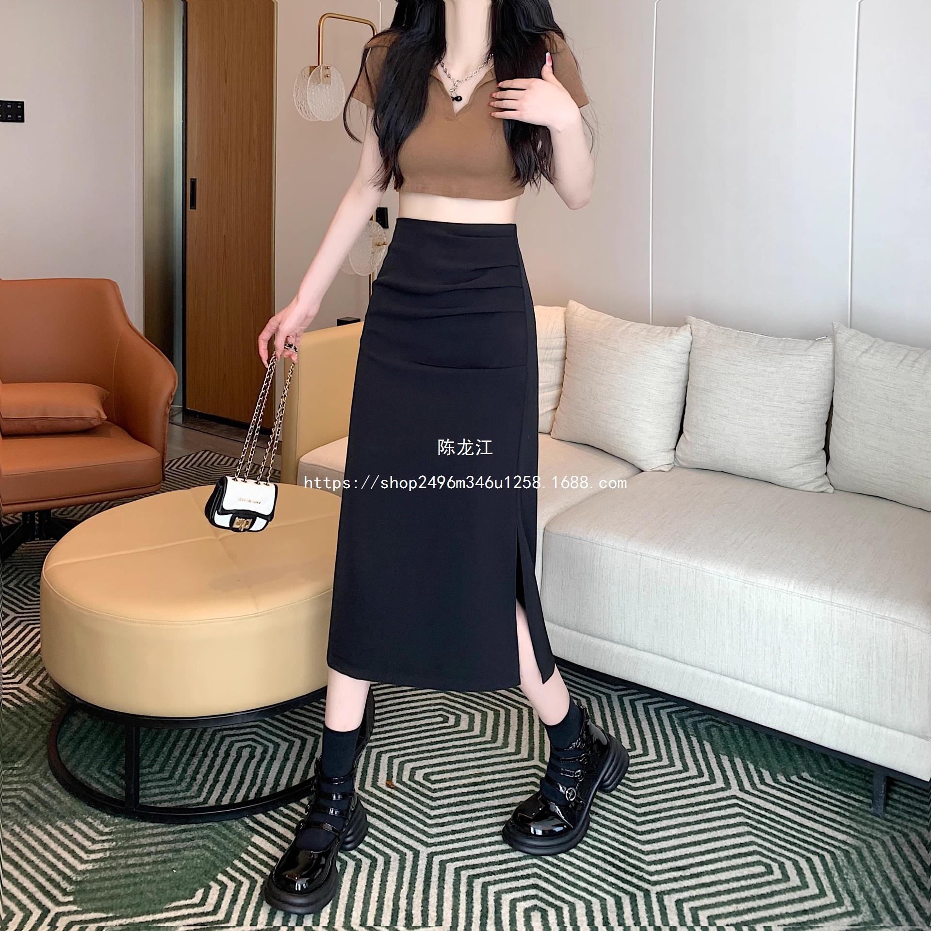 Falda acampanada de talle alto con abertura Semestre 2024 Falda plisada a la cadera Falda recta Nuevo estilo Falda de verano para mujer de largo medio