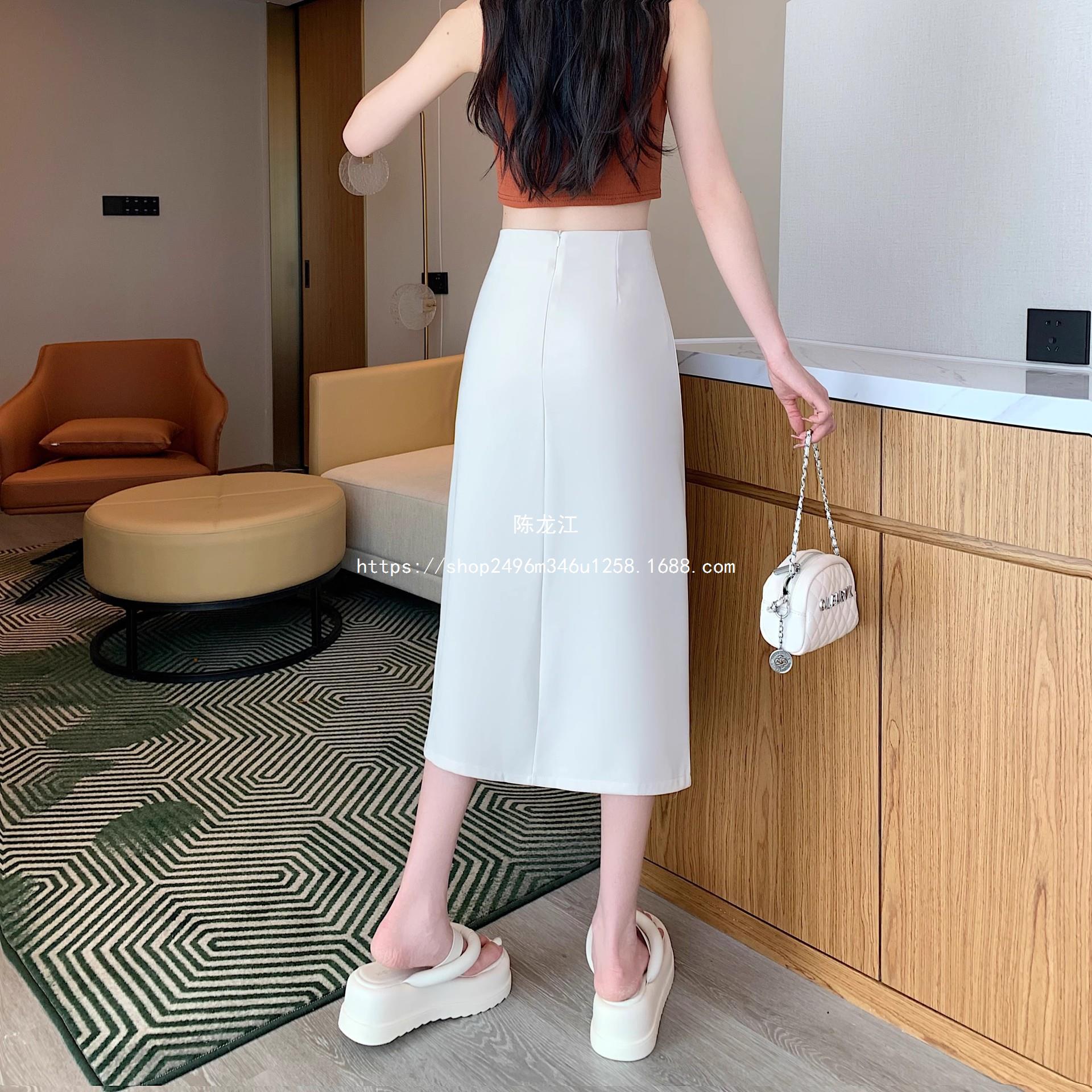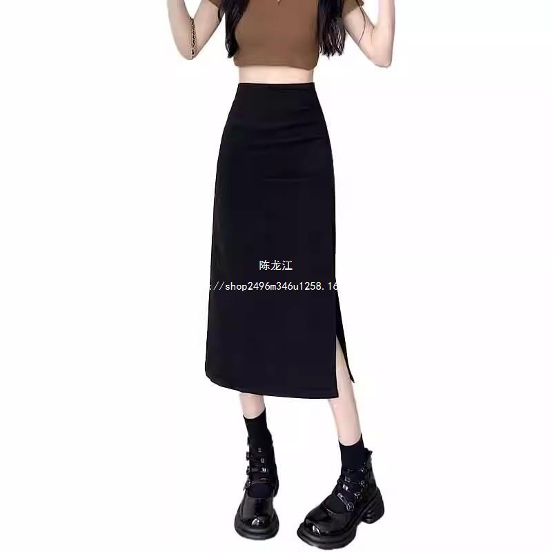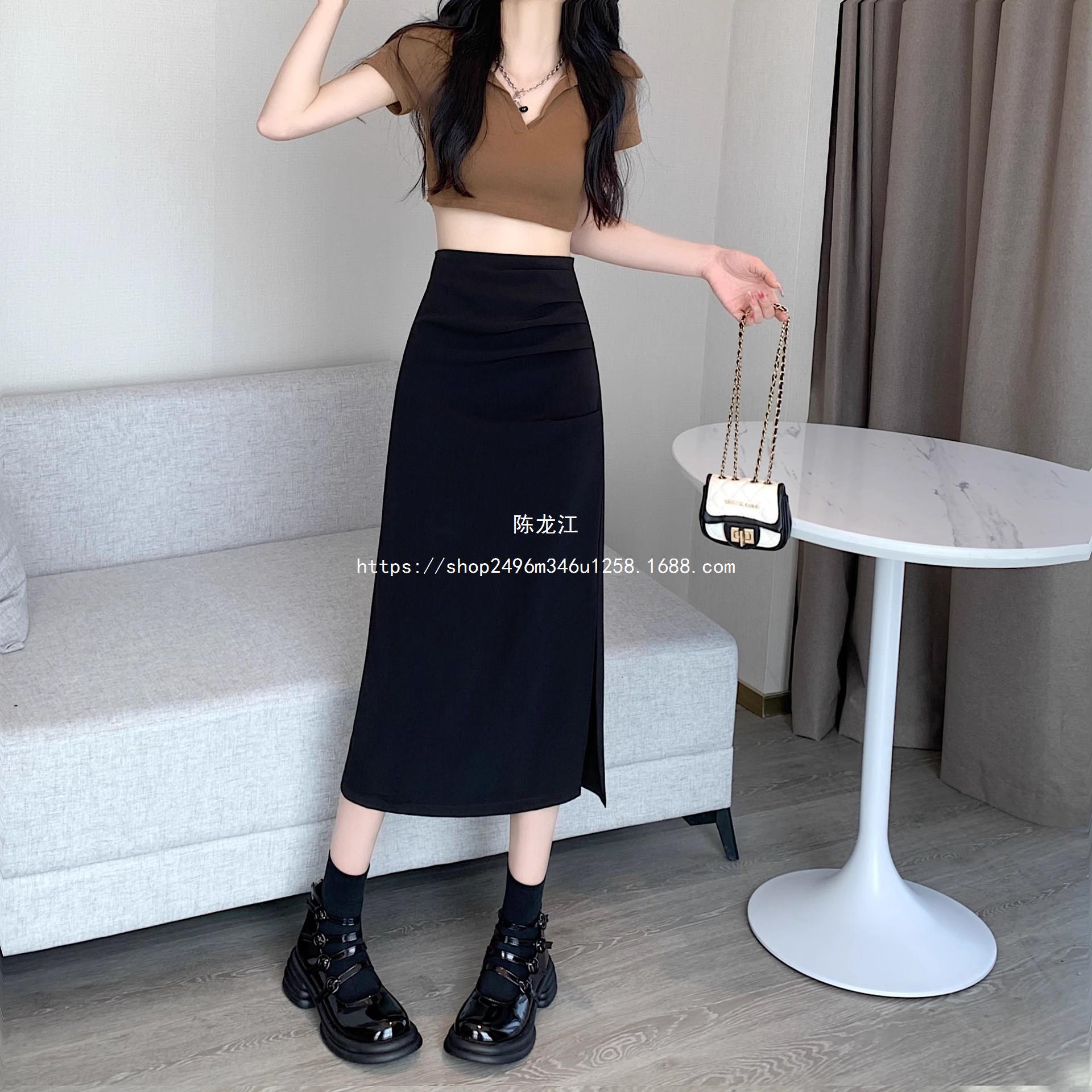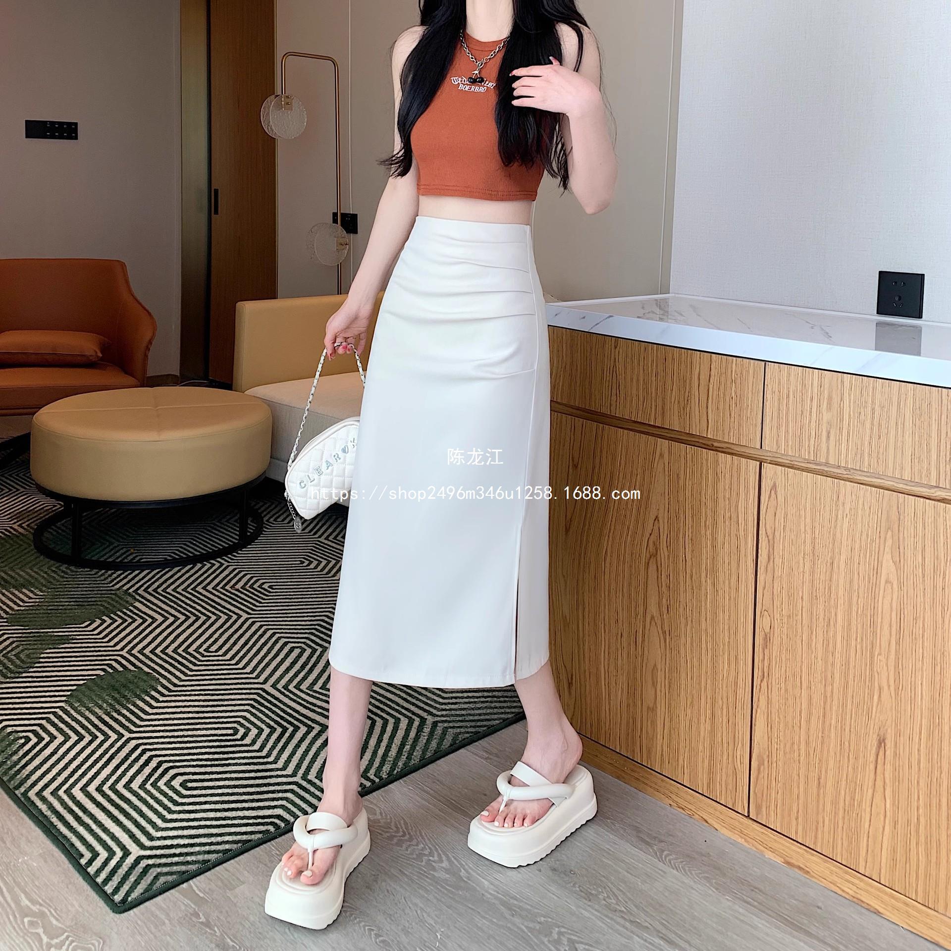 Falda acampanada de talle alto con abertura Semestre 2024 Falda plisada a la cadera Falda recta Nuevo estilo Falda de verano para mujer de largo medio